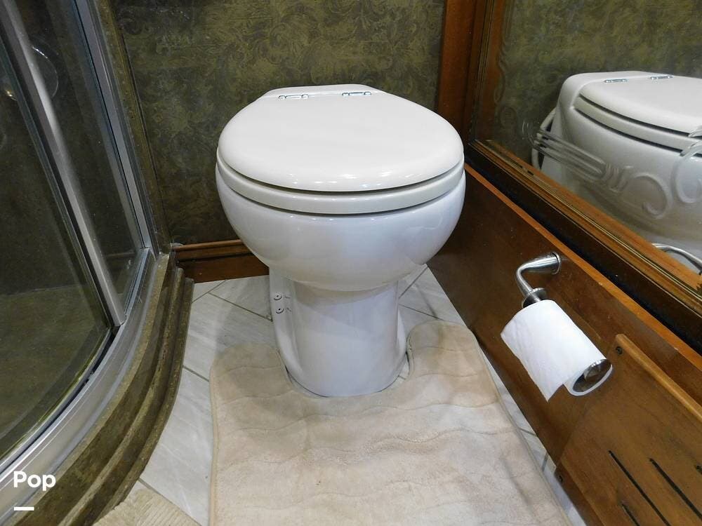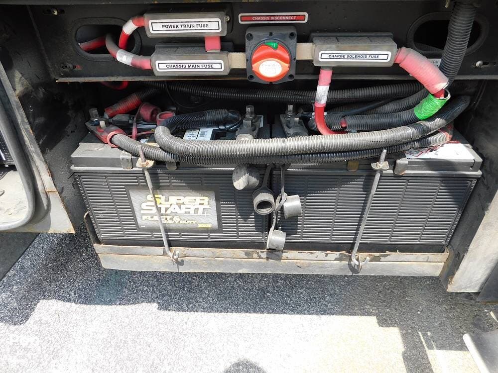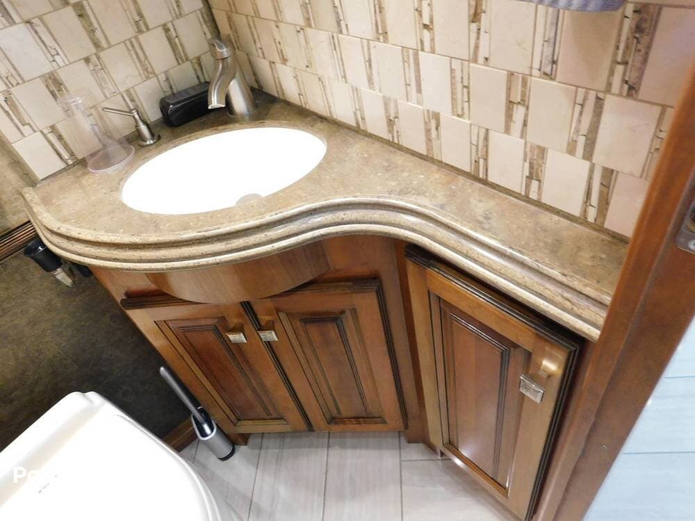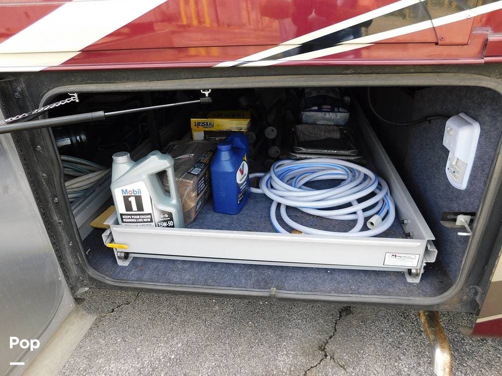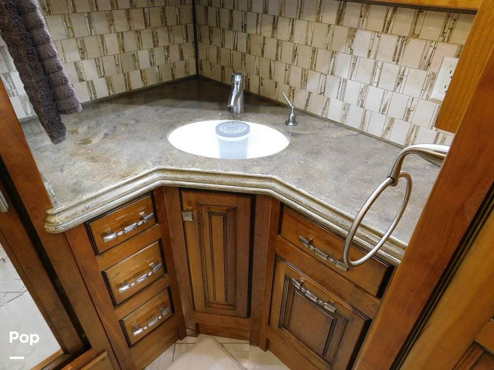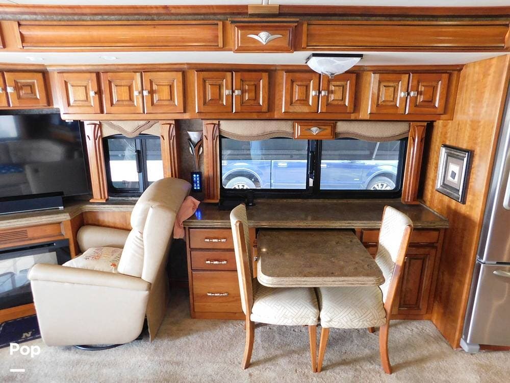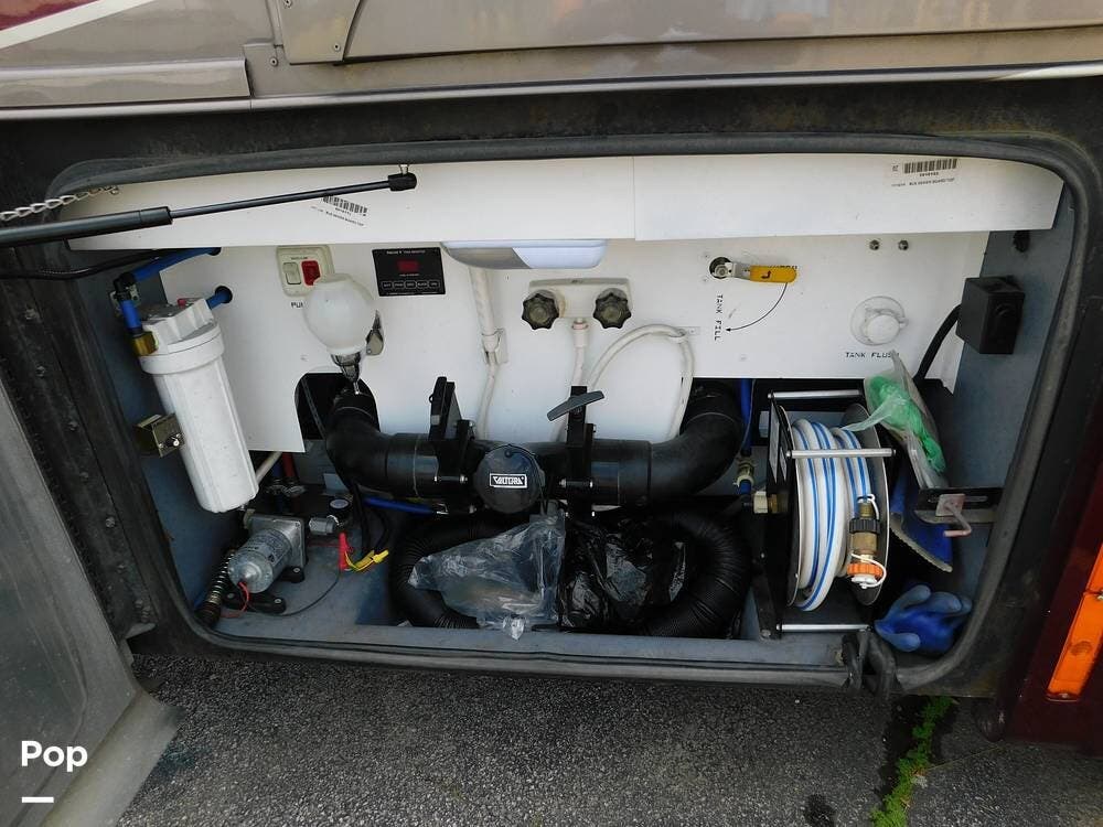 On the road, offering a quiet ride sitting on the custom-built Powerglide chassis. Powered by a 450HP ISL9 Cummins motor with an Allison 3000 MH 6-speed tranny able to tow up to an astonishing 15,000 pounds!