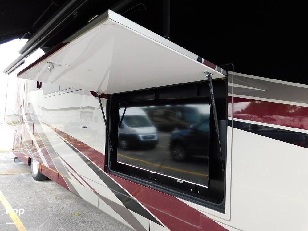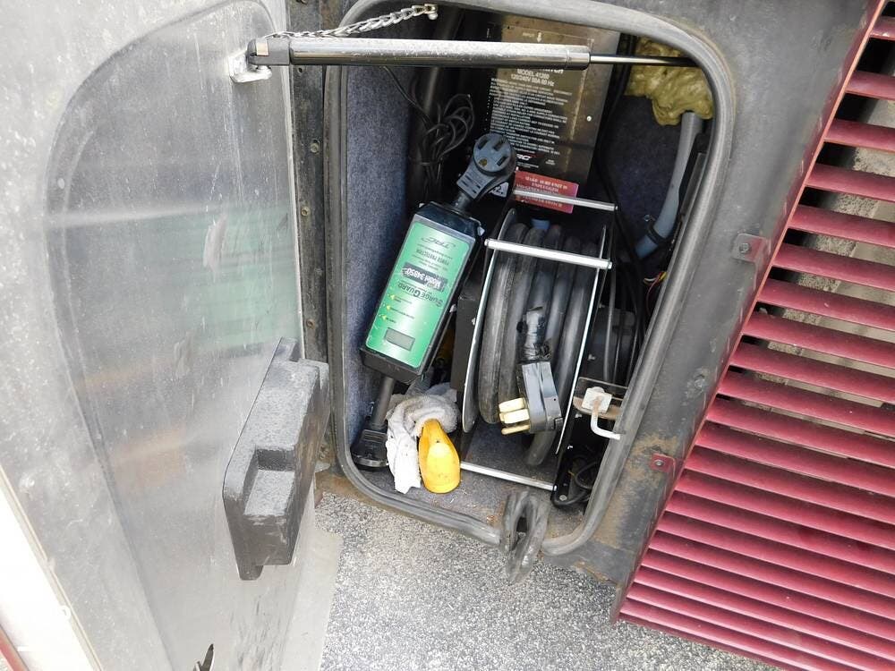 Some of the exterior features include an exterior TV, dual fuel fills, an Air Leveling System with Hydraulic leveling jacks, and a power cord reel.