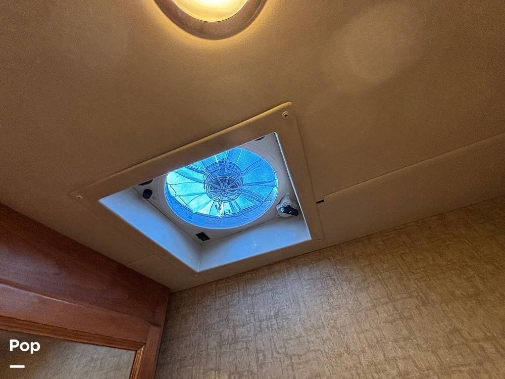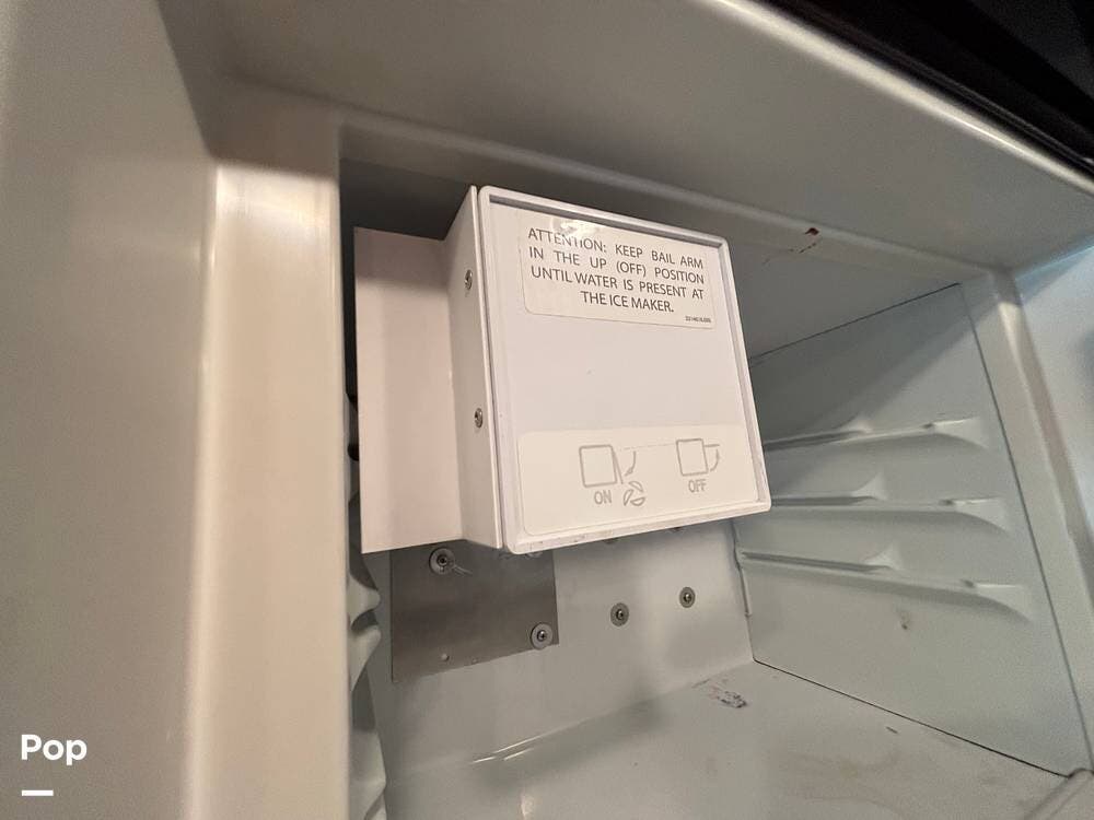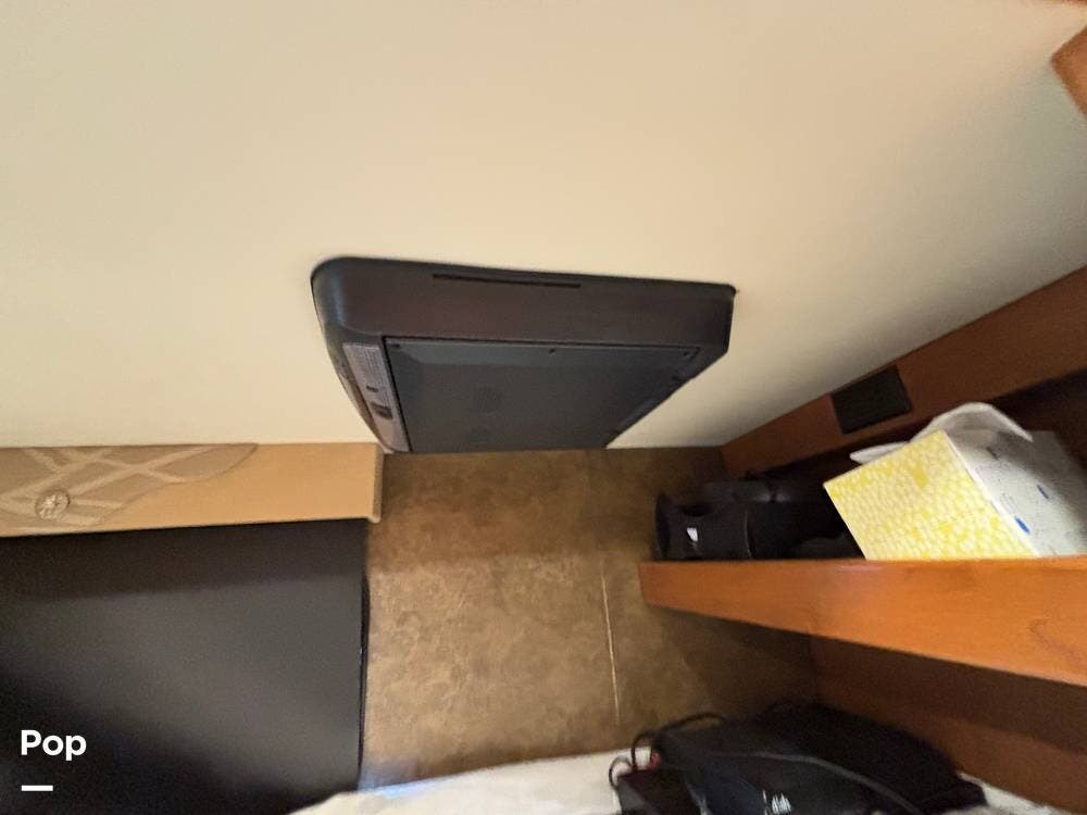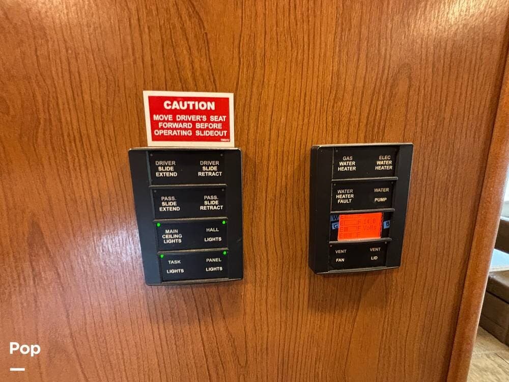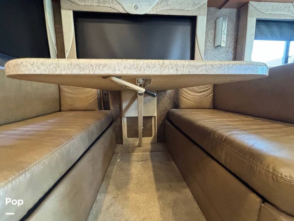 Walk inside the living area with its opposing slides, which house the sofa bed/booth, dinette, and entertainment center.