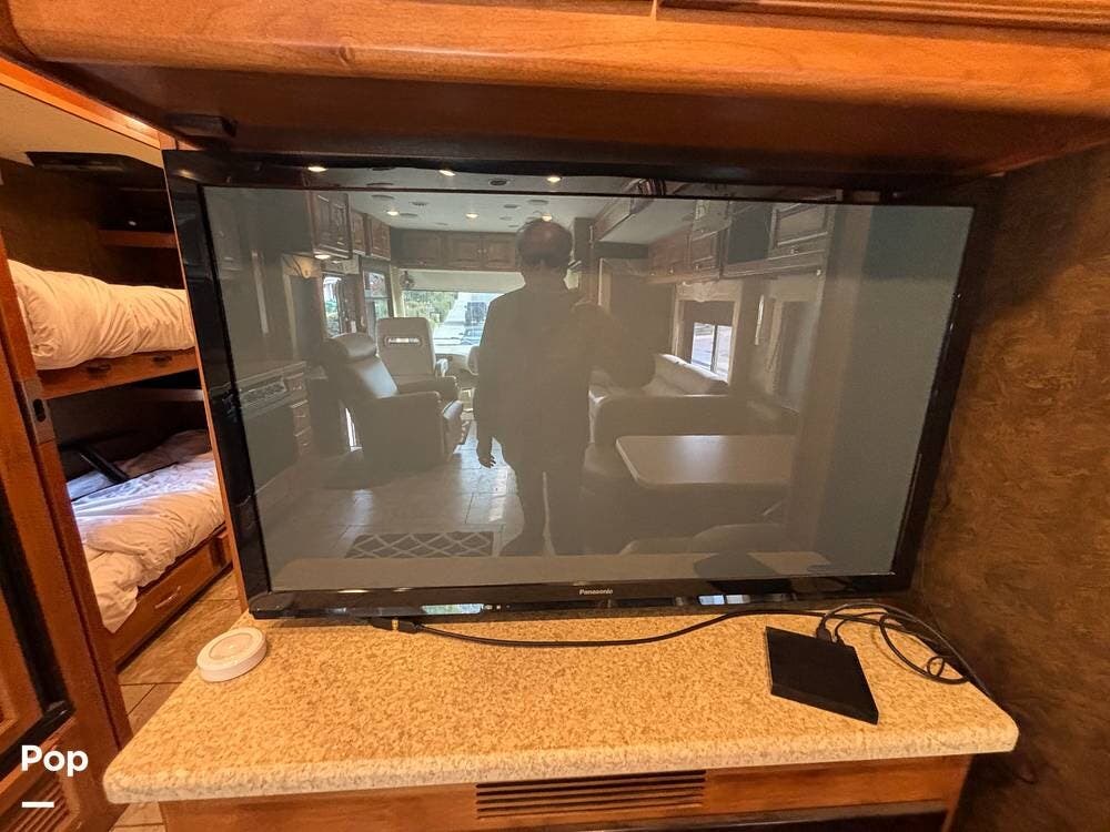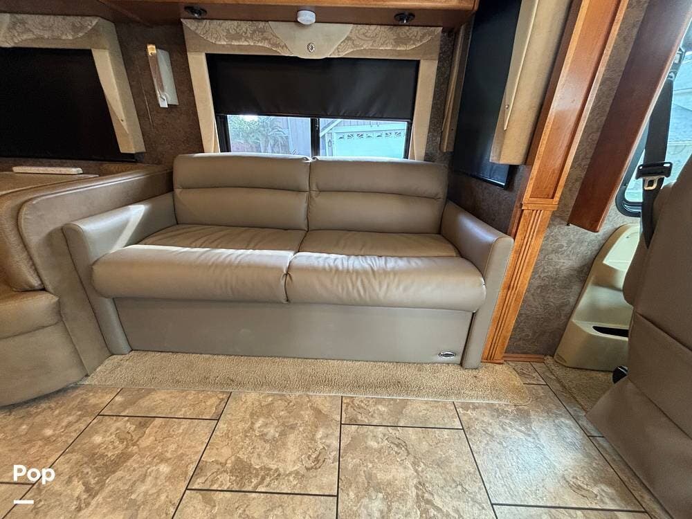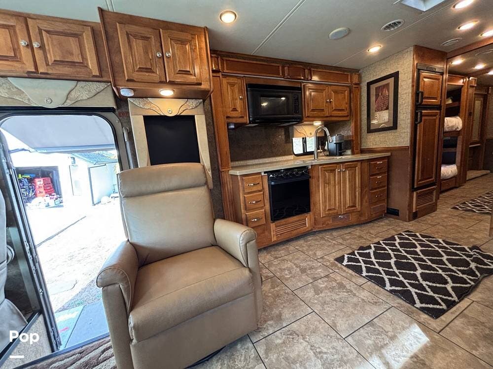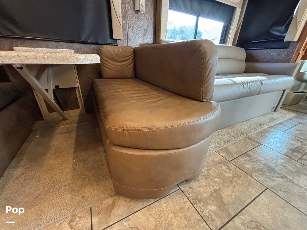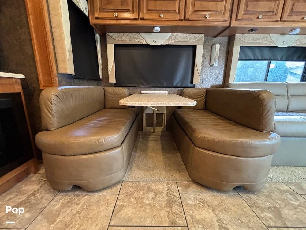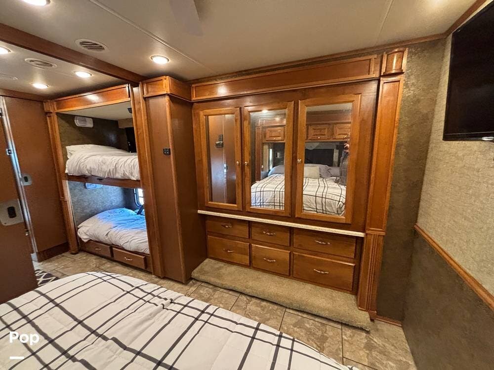 It sleeps up to eight with two bunks, a queen bed, a leather sofa sleeper, and a dinette sleeper.