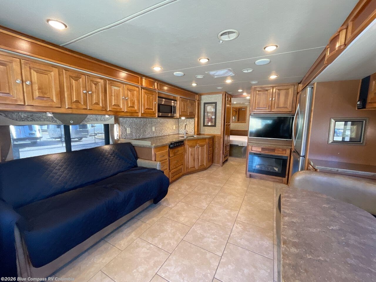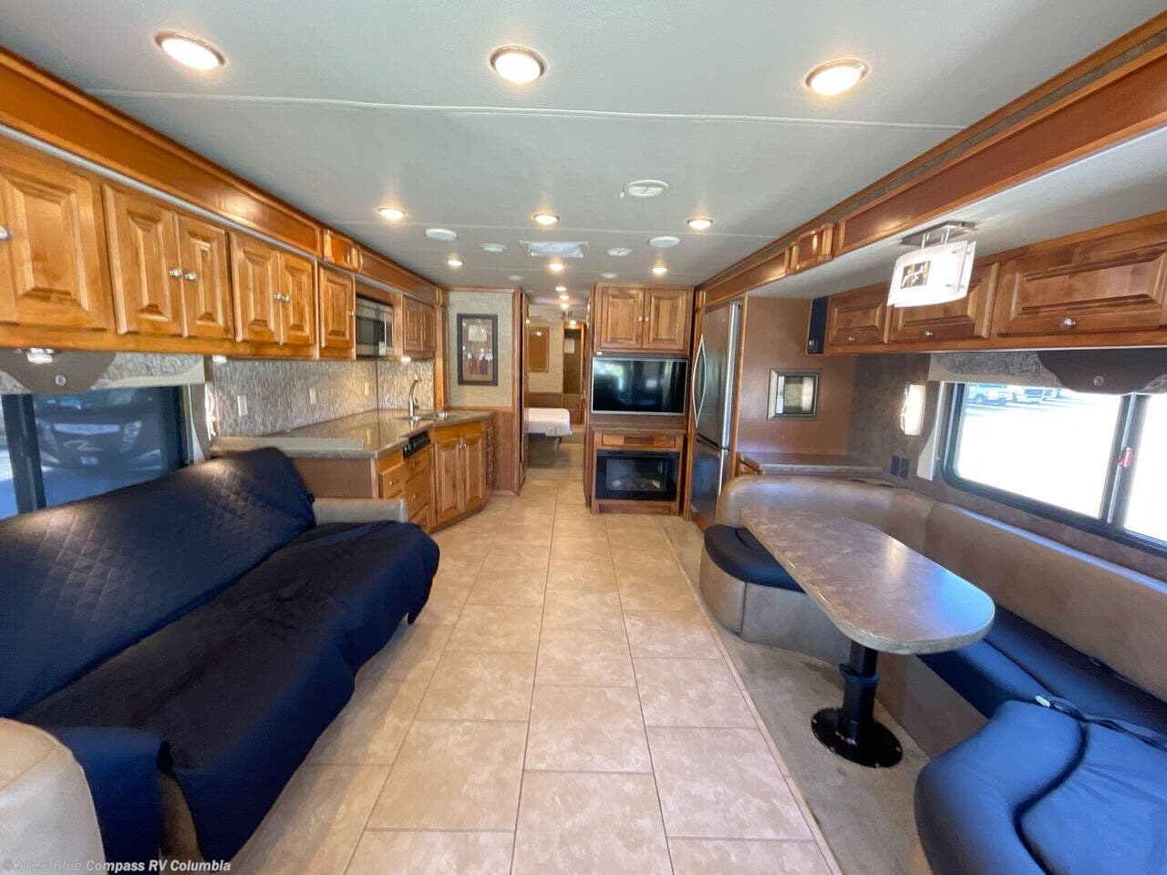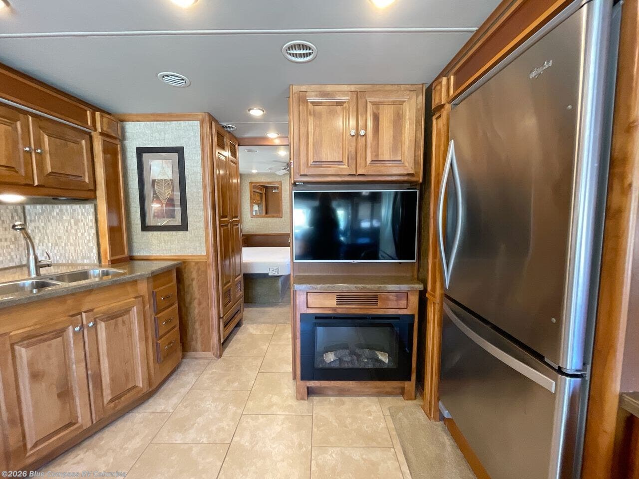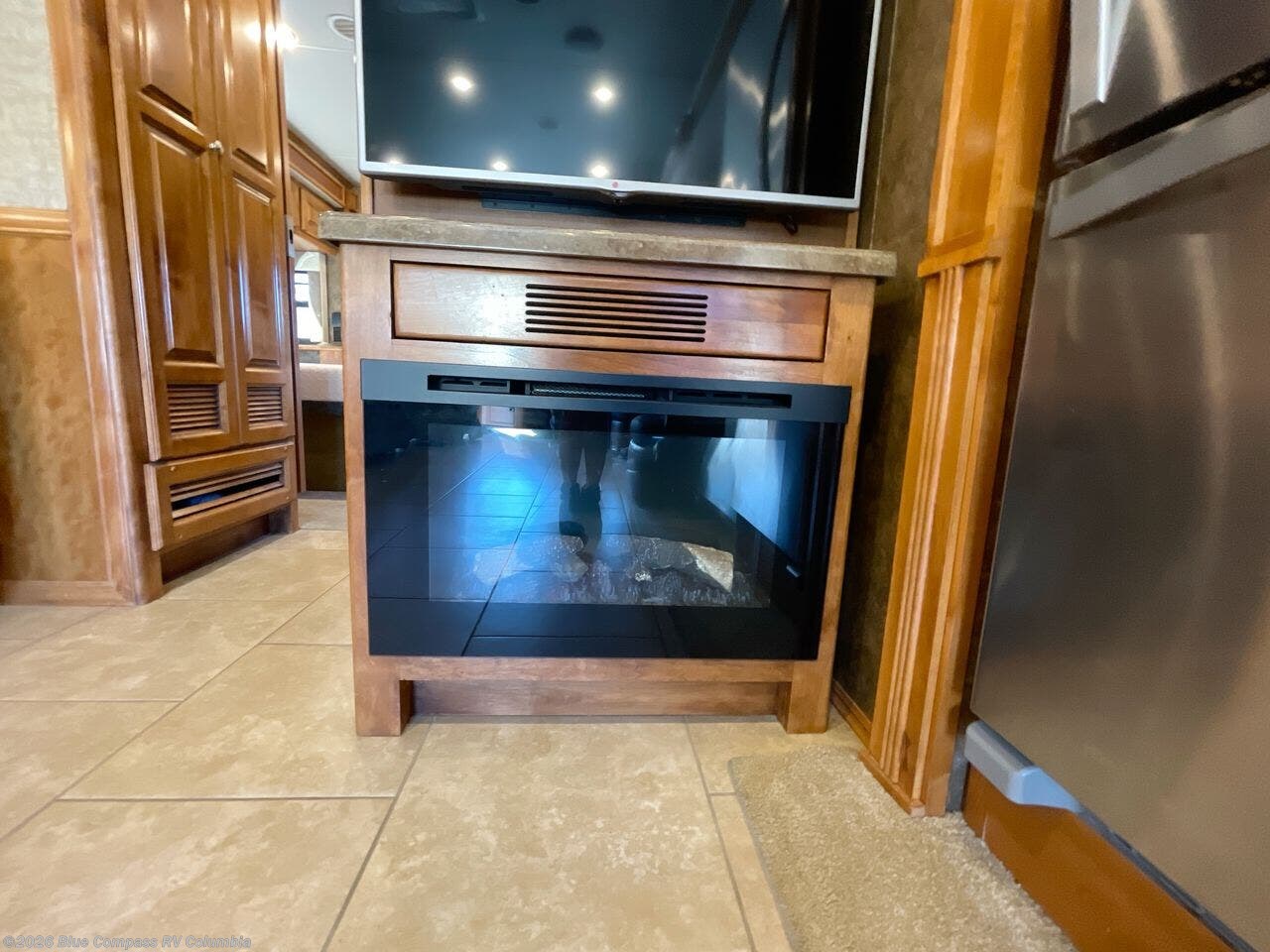 A standard TV faces the front of the coach along the interior living room wall, and you can add an optional fireplace for those cool chilly nights when you want to just stay inside.