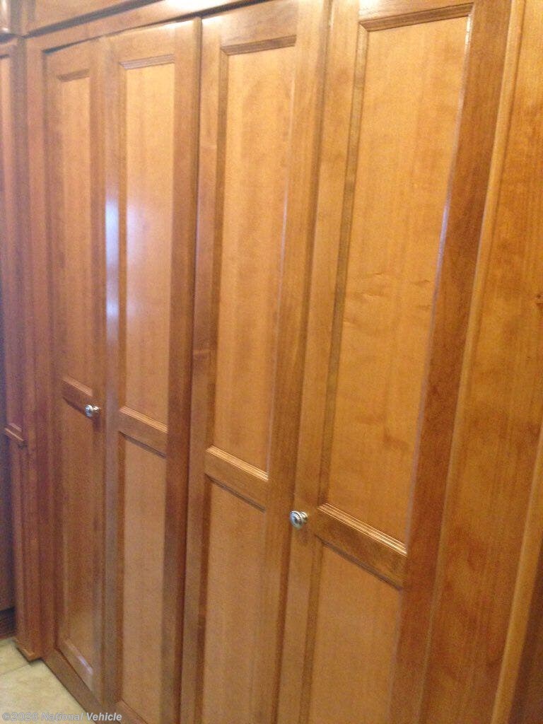 Step inside model 38 QBA and enjoy what you see. There are quadruple slides which make moving around very easy once parked. The entrance is in front of the passenger seat. Both the passenger and driver seats swivel around to create more seating up front for enjoyment. There is overhead storage in the cab area, and a TV.