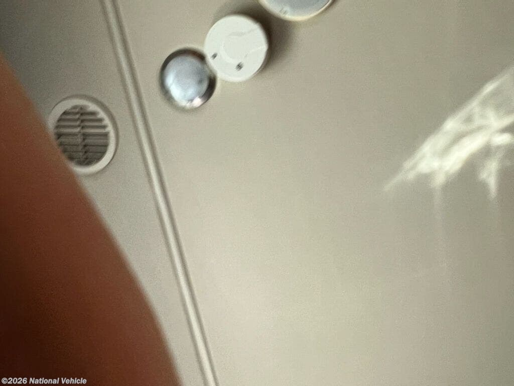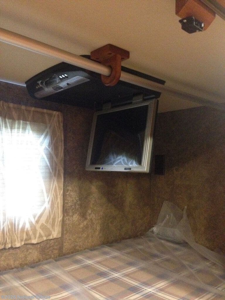 On the driver side find a slide out sofa bed with booth dinette. There is overhead cabinet space above the sofa bed for storage. Just off the dinette area you will find a TV for enjoyment.