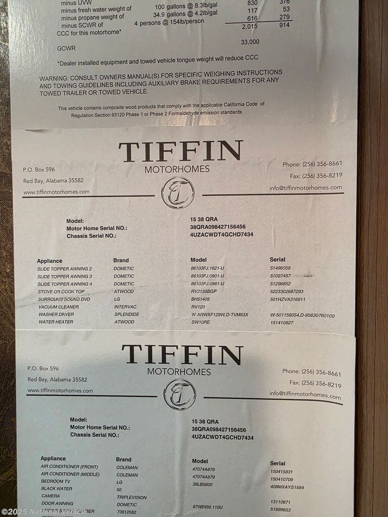 This 2015 Tiffin Motorhomes Allegro Red is located in Fairfield, California. Please call 1-800-320-9557 and mention listing id: 179838.
