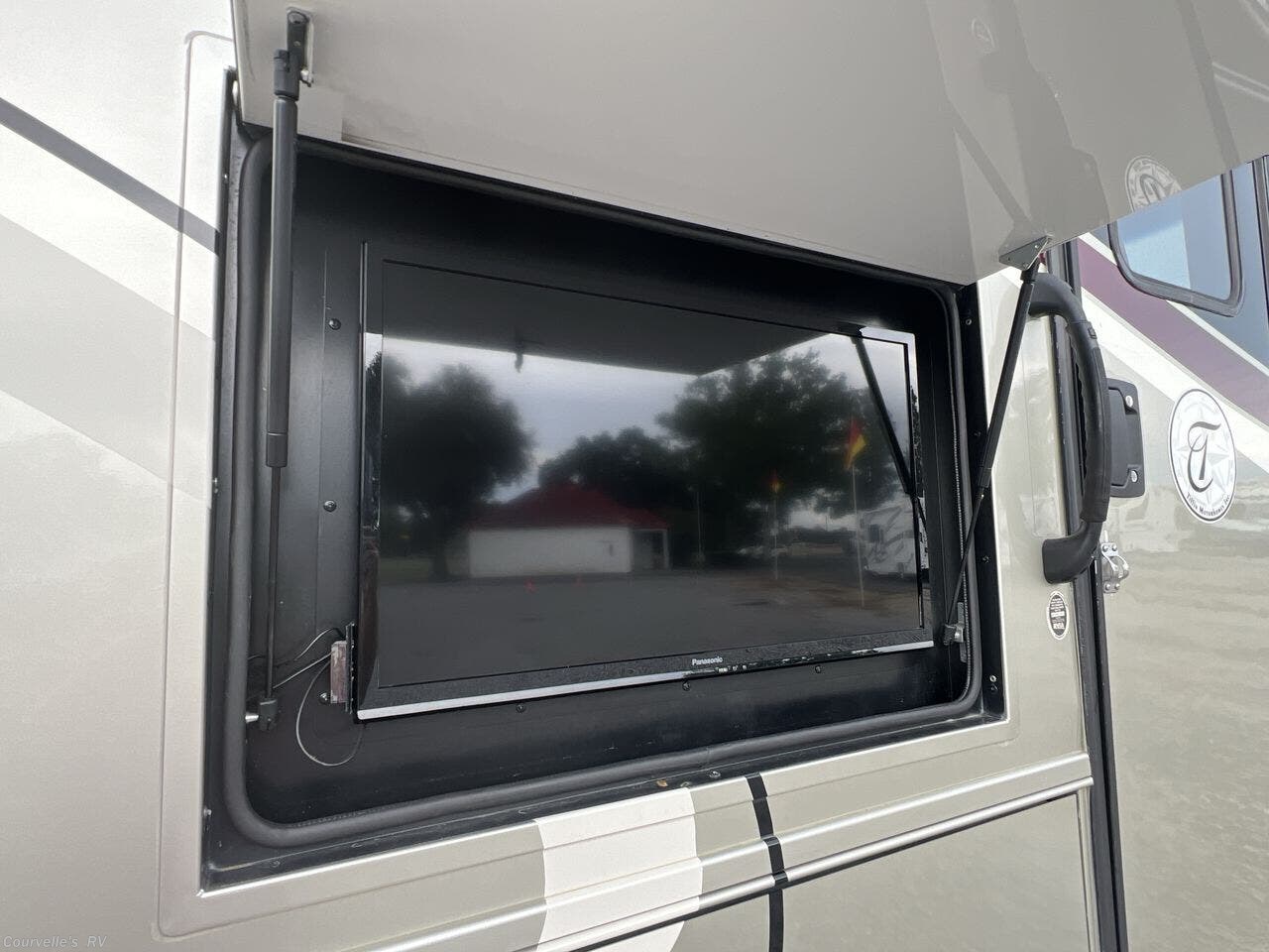 Automatic Leveling Jacks, Backup Monitor, Black Tank Flush, Detachable Power Cord, External Shower, Fiberglass Sidewalls, Full Body Paint, Ladder, Outside Entertainment Center, Pass Thru Storage, Power Awning, Power Entrance Step, Power Roof Vent, Second Roof A/C, Side View Cameras, Skylight, Slam Latch Baggage Doors, Slideout, Slide-out Awning -
