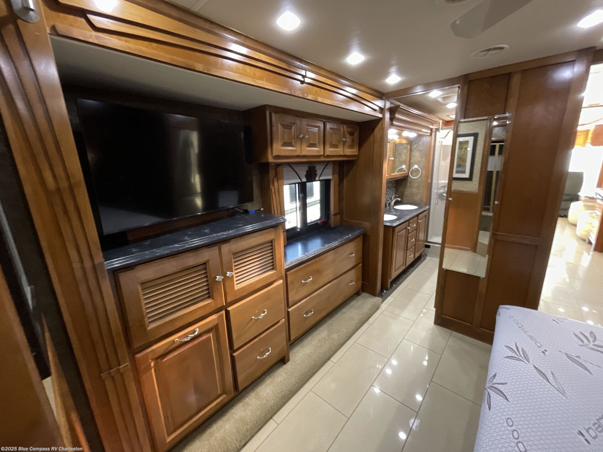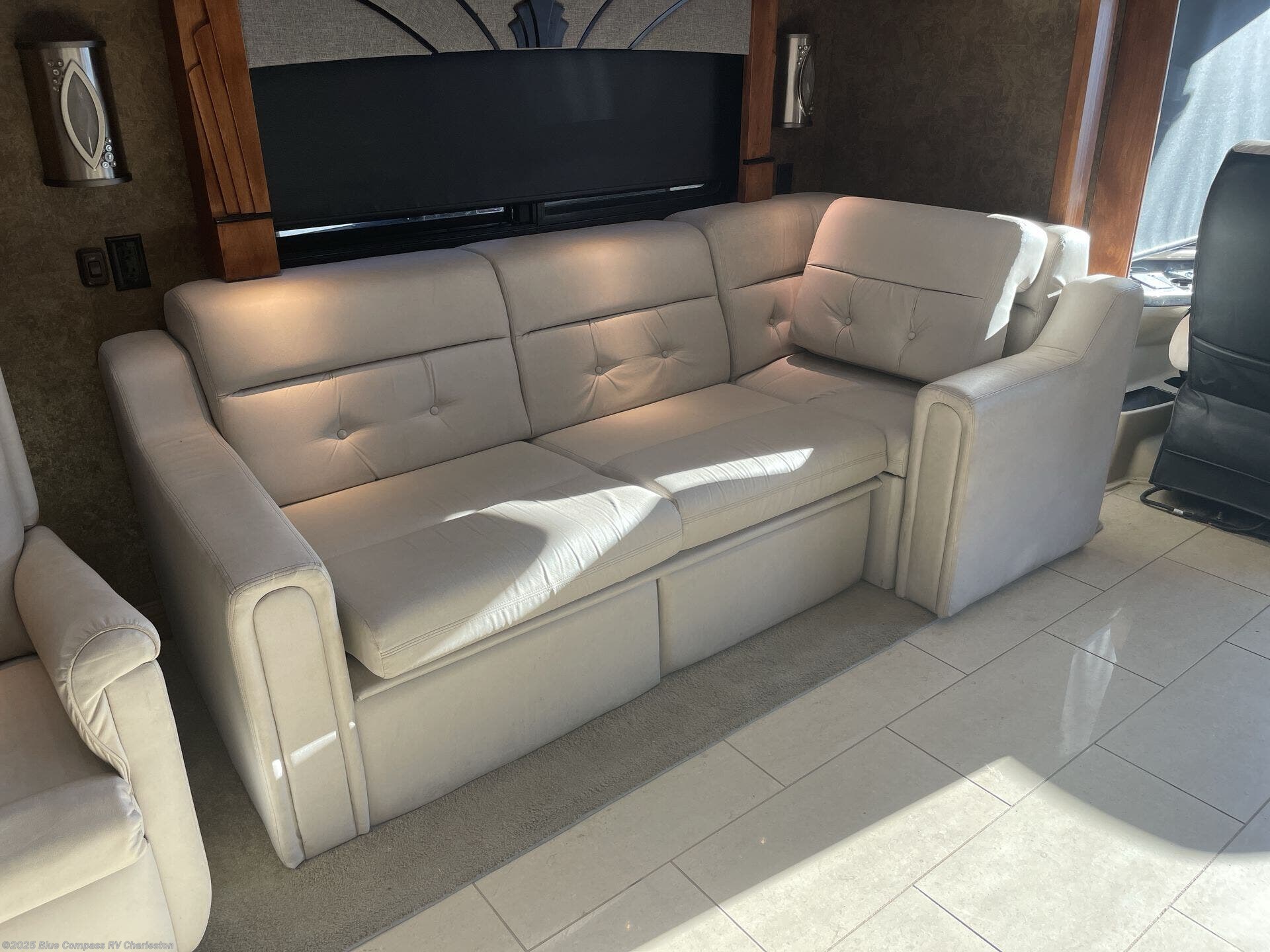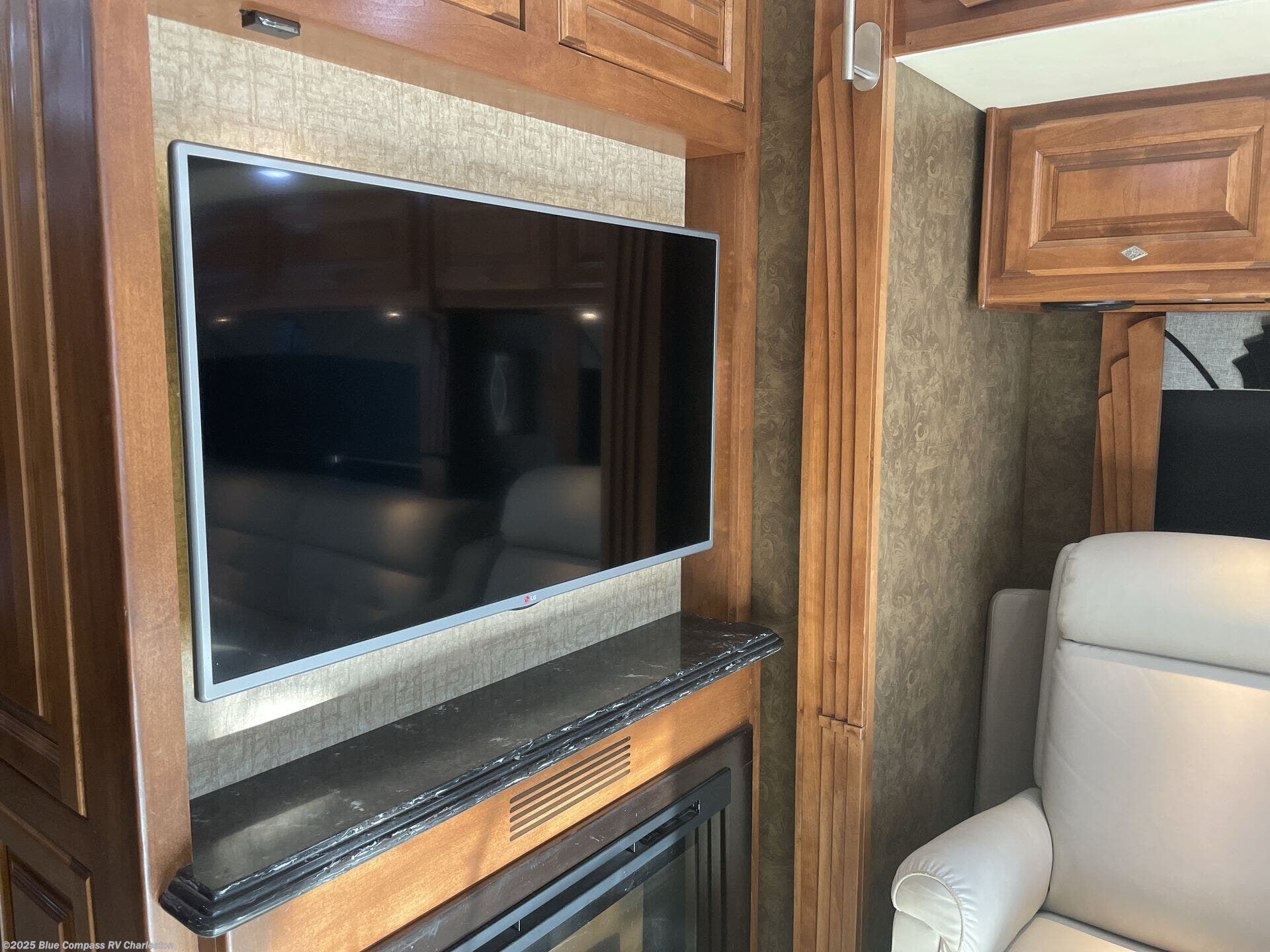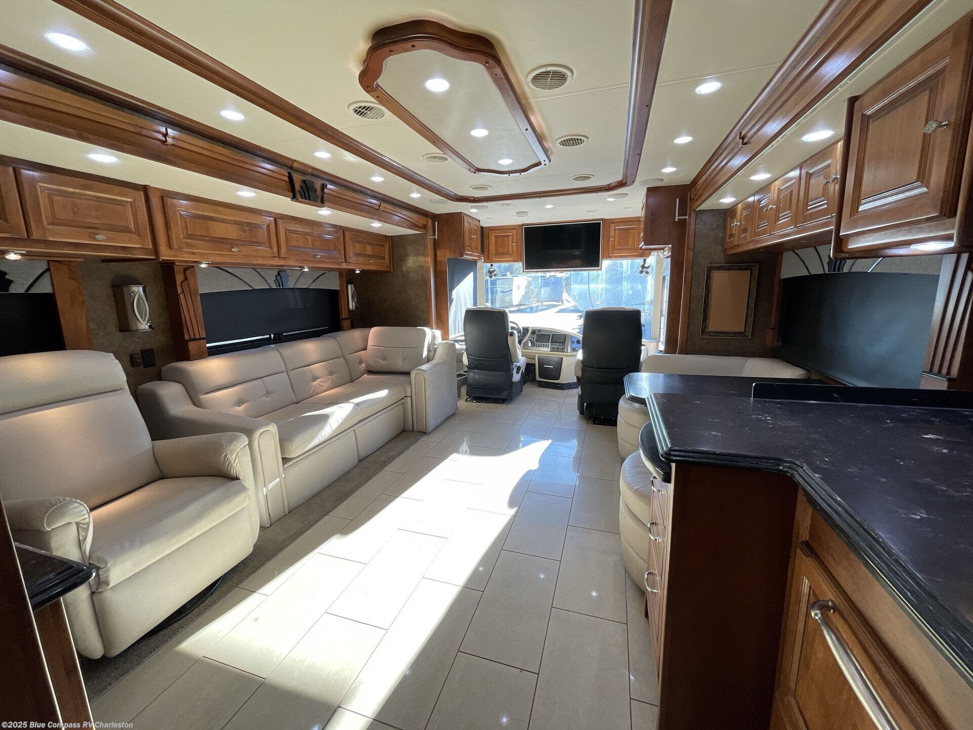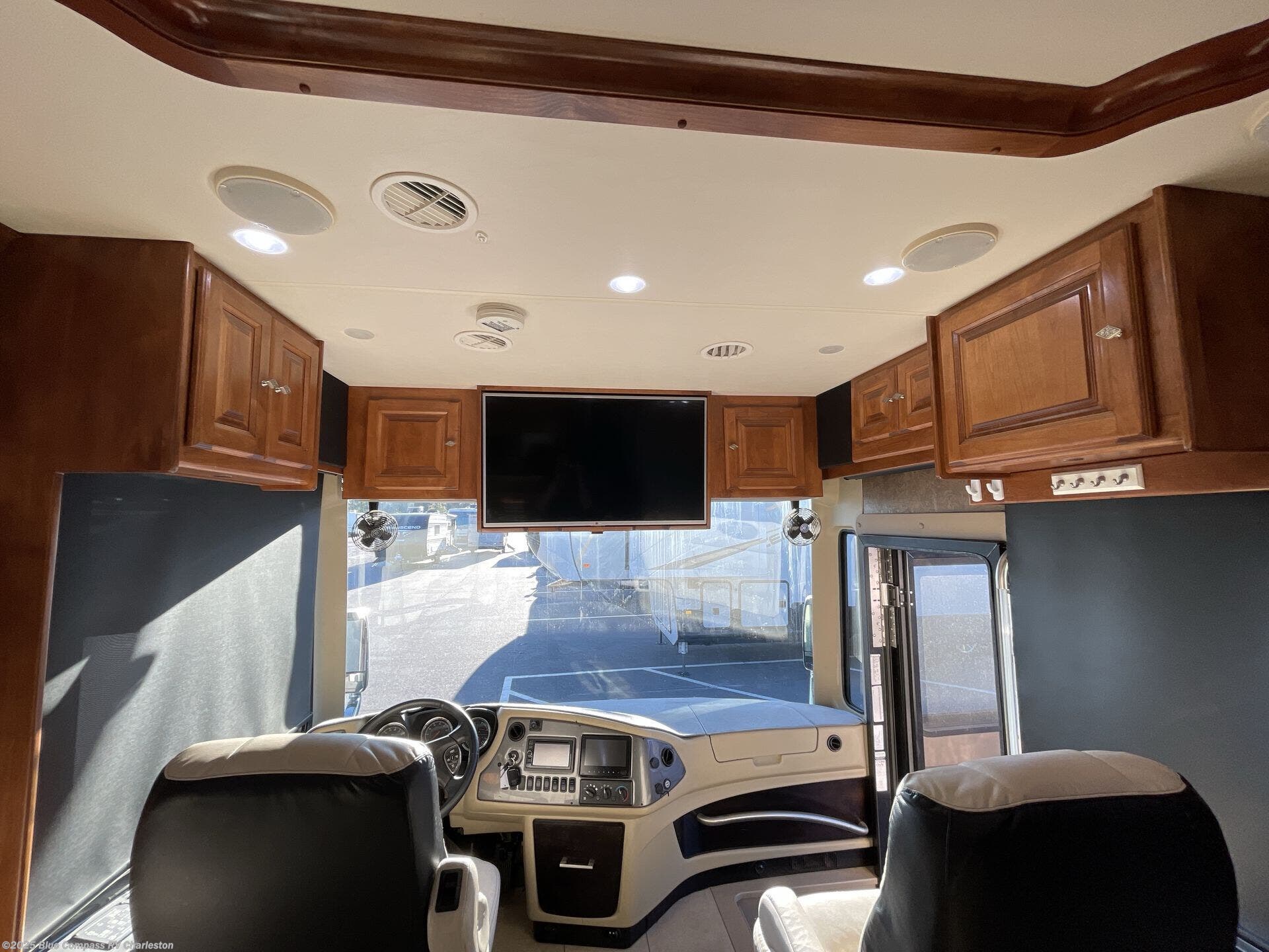 The front cab area has lots of overhead cabinets and room for an optional center mount TV.