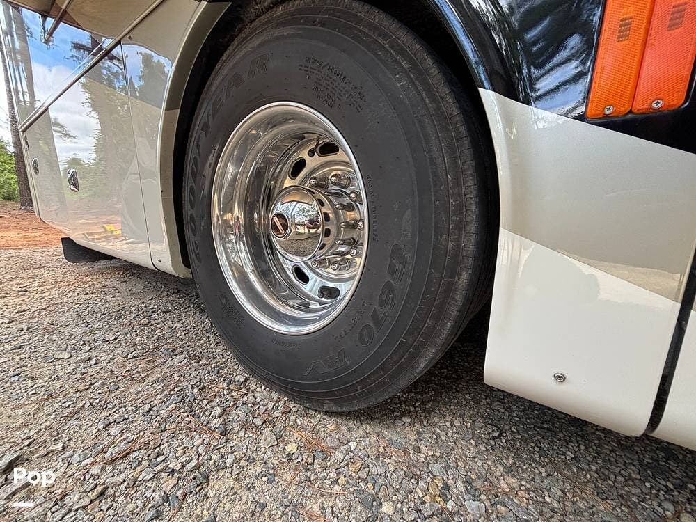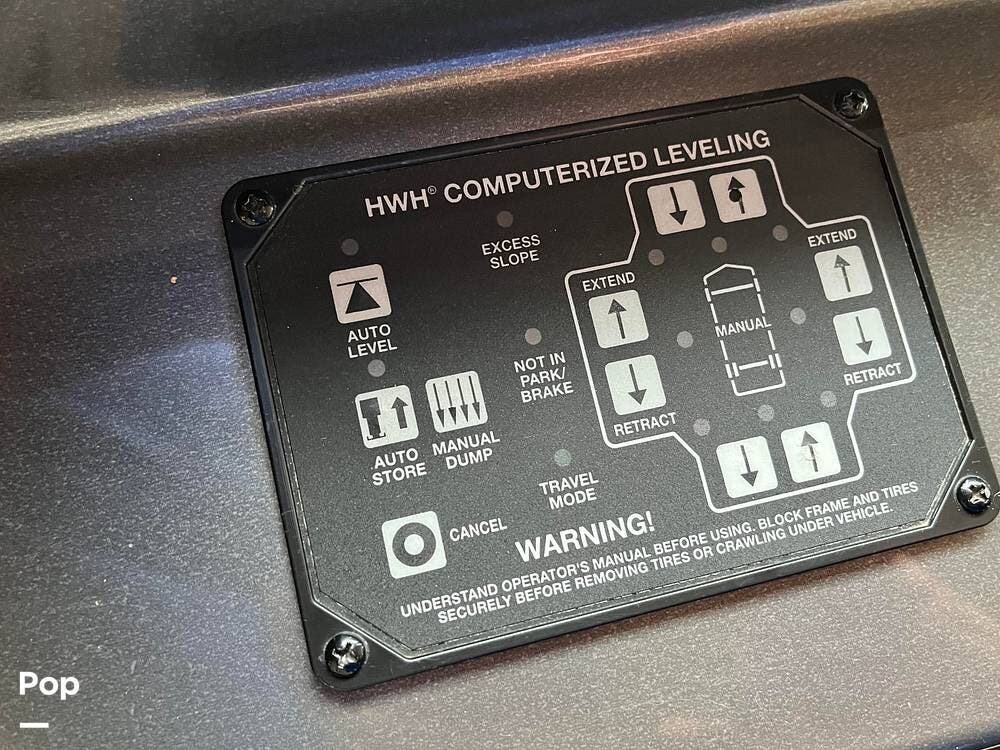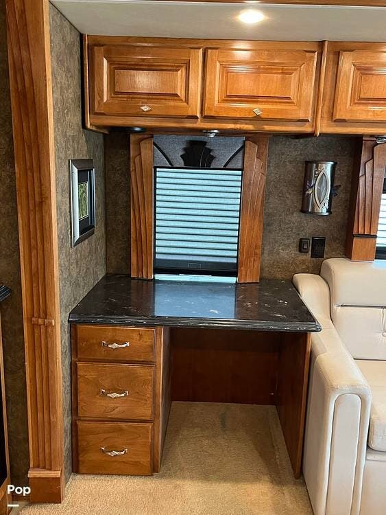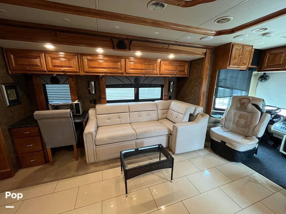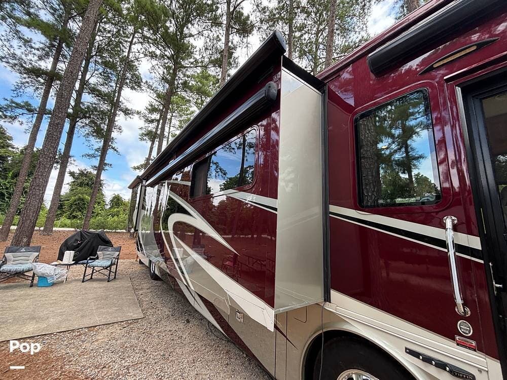 Its full-body paint and high-gloss finish provide a sharp look on the road, while the power awnings and ample basement storage make setting up camp both easy and convenient. This coach is also equipped with slide-outs that expand the living space once parked, creating a roomy interior that feels more like home than a traditional motorhome.