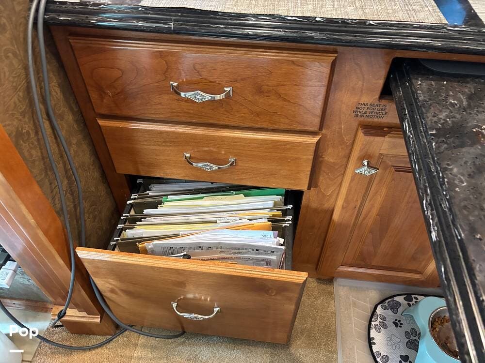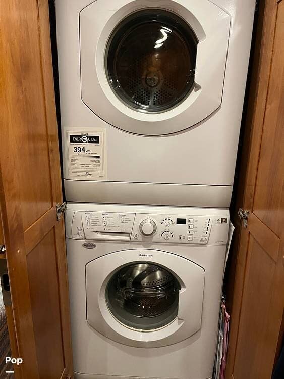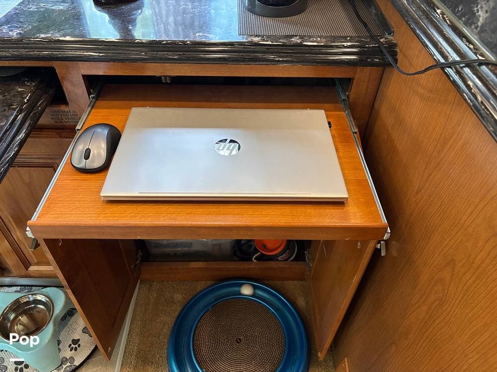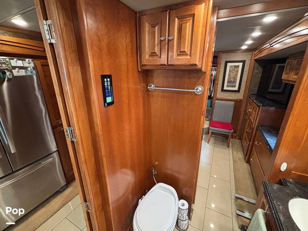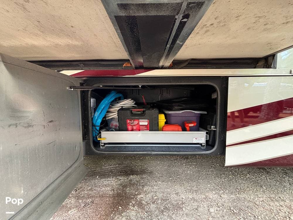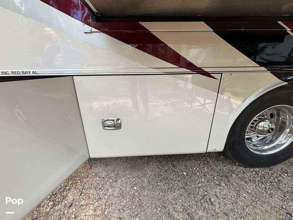 Its full-body paint and high-gloss finish provide a sharp look on the road, while the power awnings and ample basement storage make setting up camp both easy and convenient. This coach is also equipped with slide-outs that expand the living space once parked, creating a roomy interior that feels more like home than a traditional motorhome.