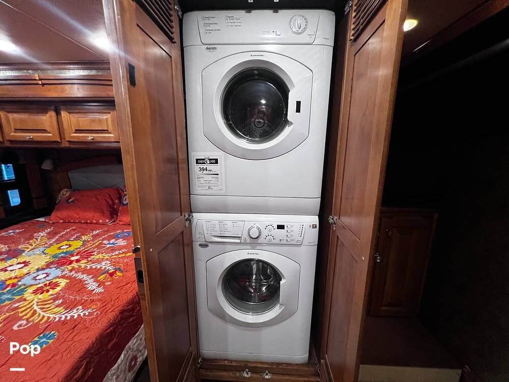 The private king-bed suite spans the width of the RV and includes its own access to the bathroom. The walk-in closet is at the rear of the unit and will rival many at home. The washer and dryer are housed in their own separate closet.