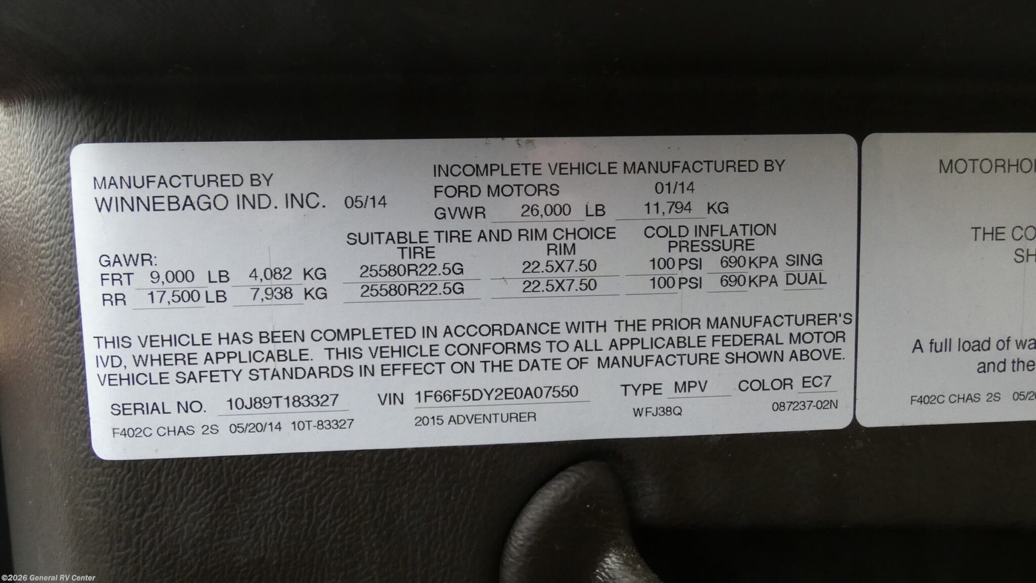 Looking to buy a 2015 Winnebago Adventurer Class A RV?
