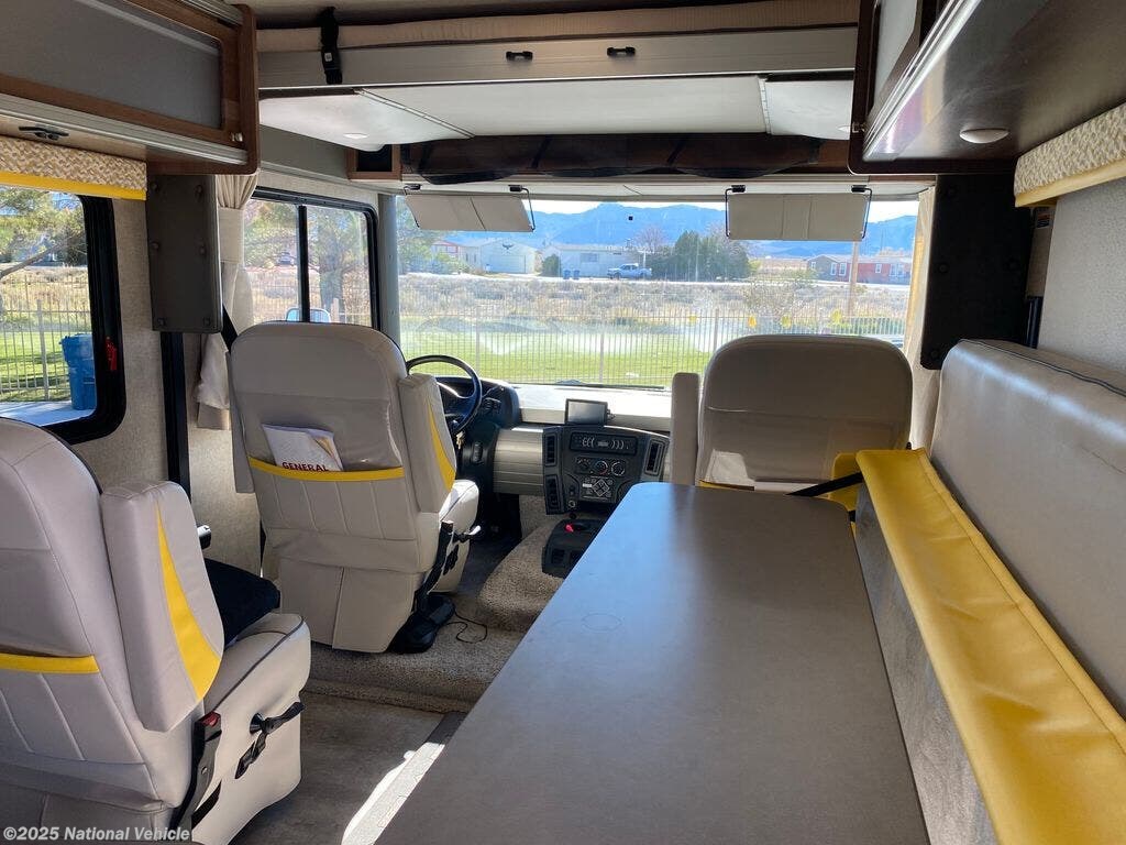 Built on a reliable Ford chassis with a powerful Triton V10 engine, the Brave 26A offers smooth handling and confident performance on highways, mountain passes, and everything in between. The striking exterior styling pays homage to the beloved Winnebago designs of the past, while the interior embraces modern comfort with a warm, inviting layout. The front lounge area features a comfortable sofa and dinette, providing plenty of space for relaxing, dining, or entertaining. Both convert into additional sleeping accommodations when needed, making this compact coach surprisingly versatile.