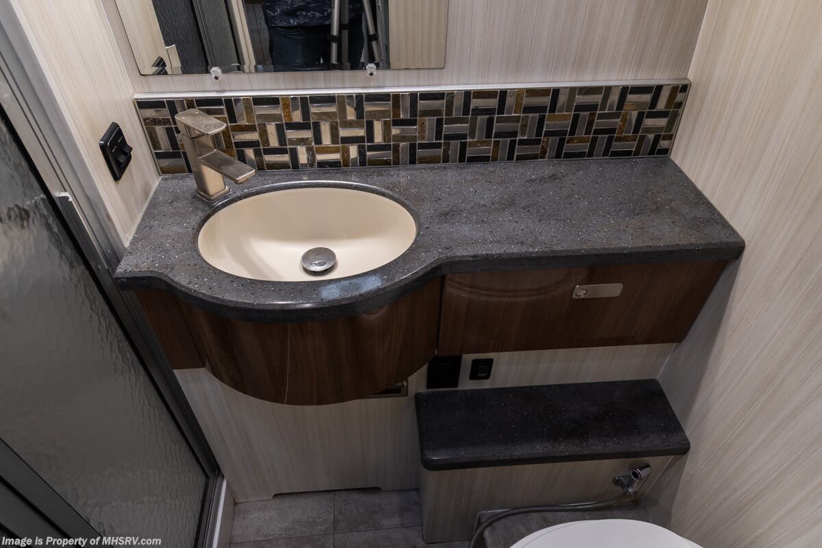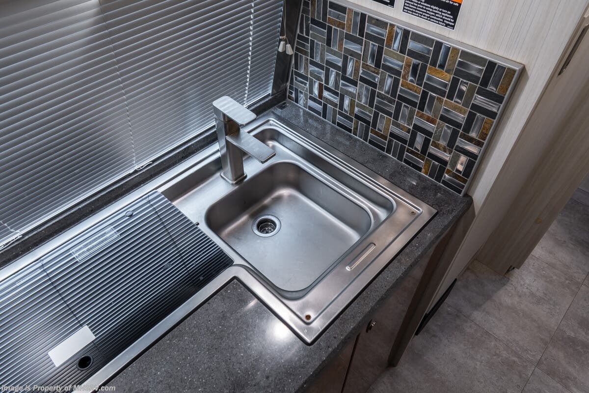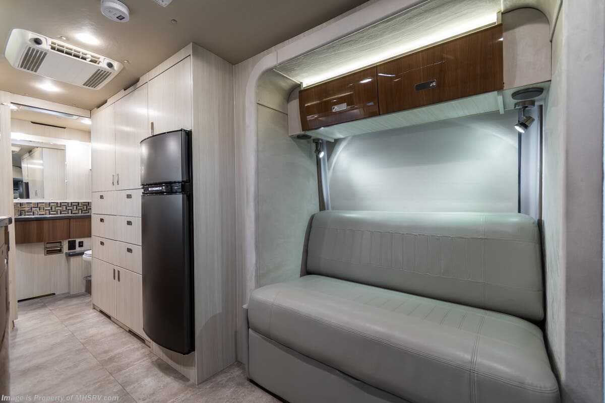 More About This RV This RV features aluminum wheels, full body paint, Mercedes-Benz chassis, Mercedes-Benz diesel engine, GPS, power windows, tilt/telescoping steering wheel, power windows, water manifold, patio awning, black tank flush, exterior shower, lithium batteries, leather seating, dual pane windows and much more