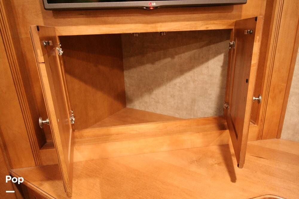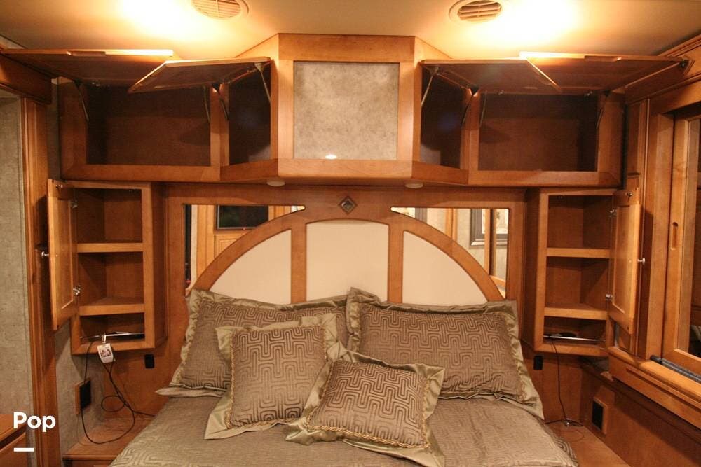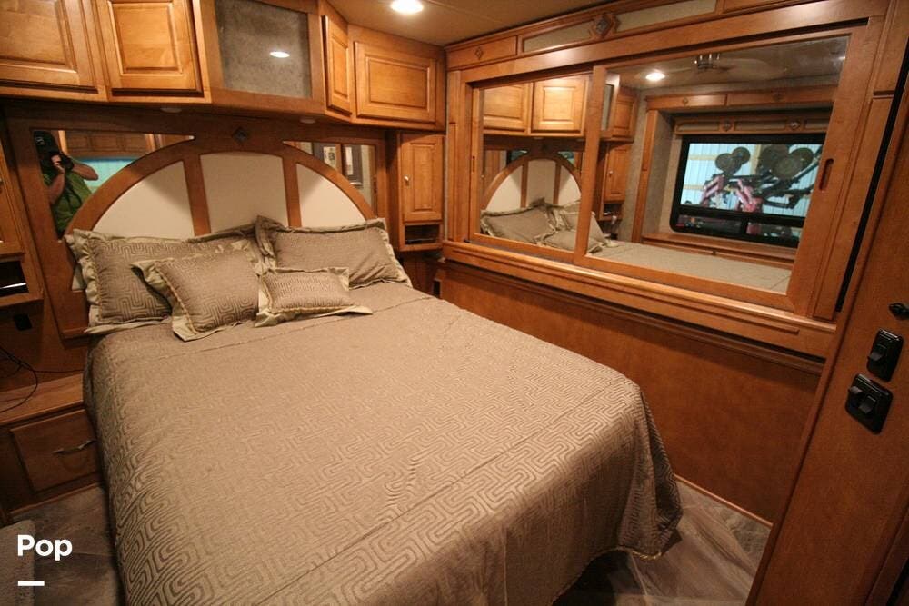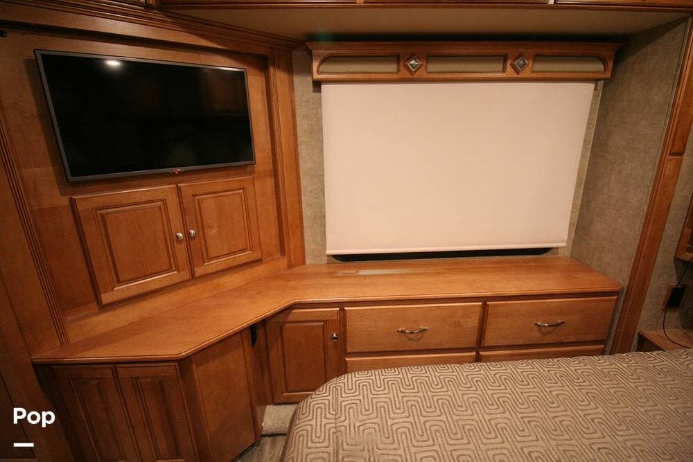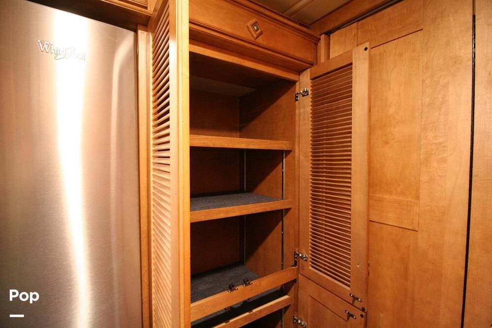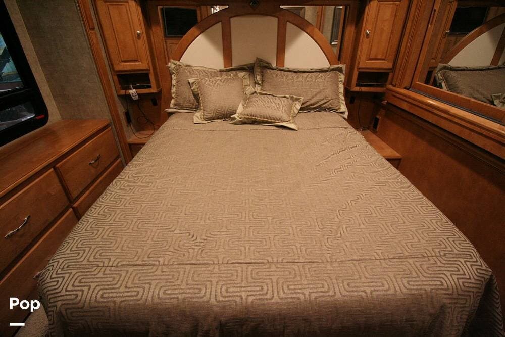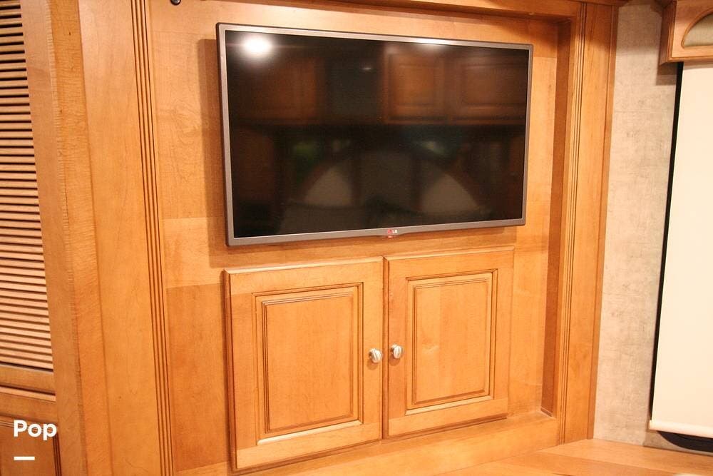 The kitchen and convertible dinette are mid-coach with the main bedroom and full bath at the rear of the coach. The bedroom features plenty of storage space with washer and dryer hook-ups in the closet. There is also a separate entertainment center and a TV in the space.