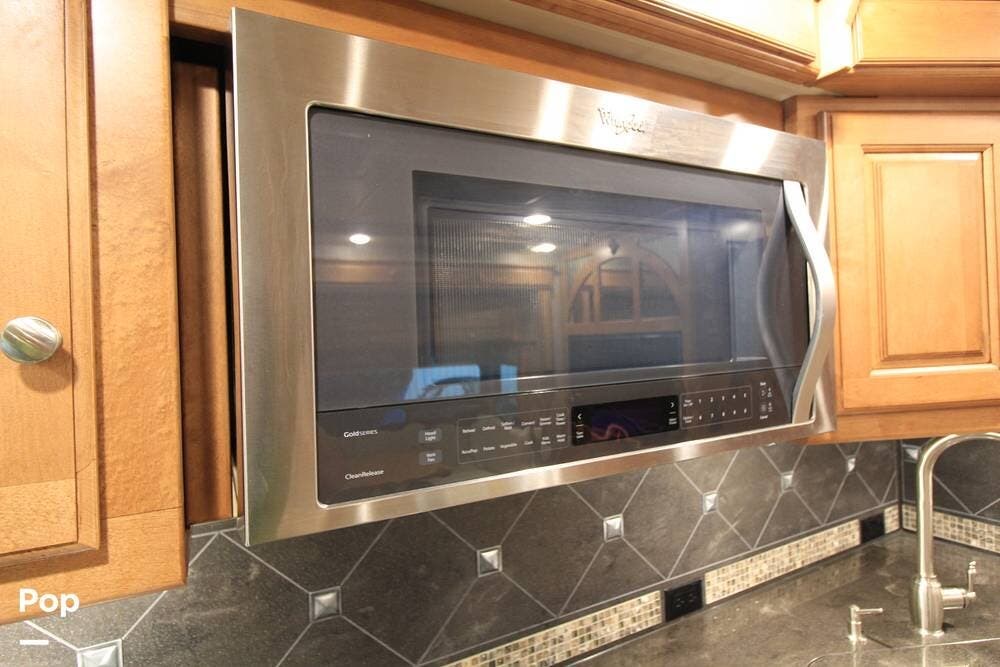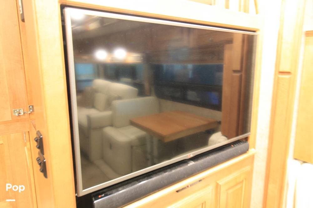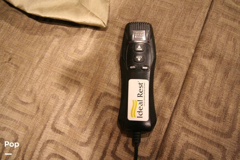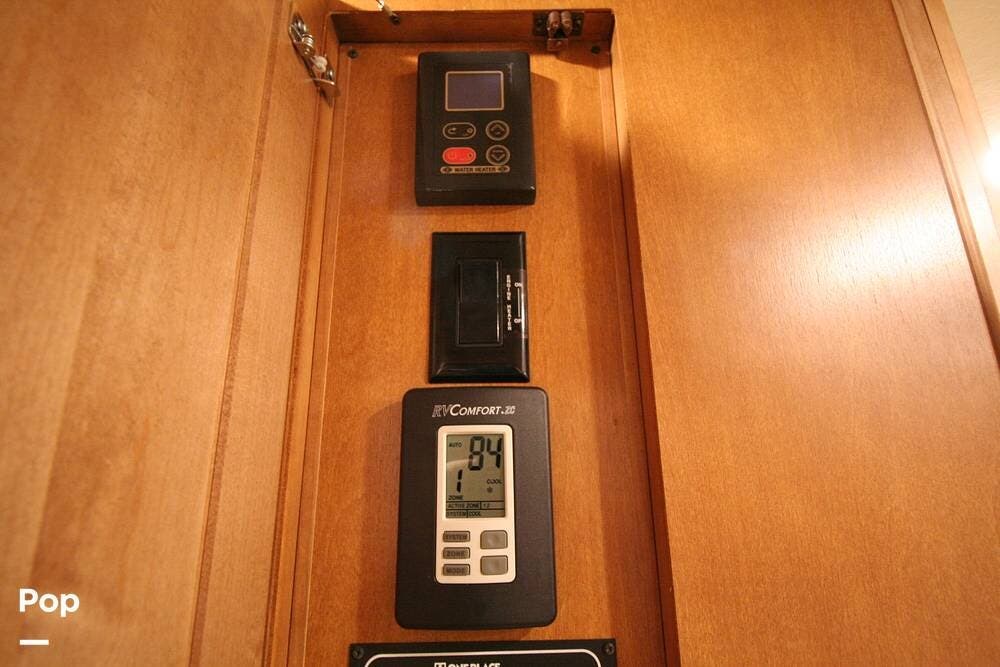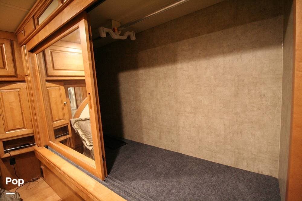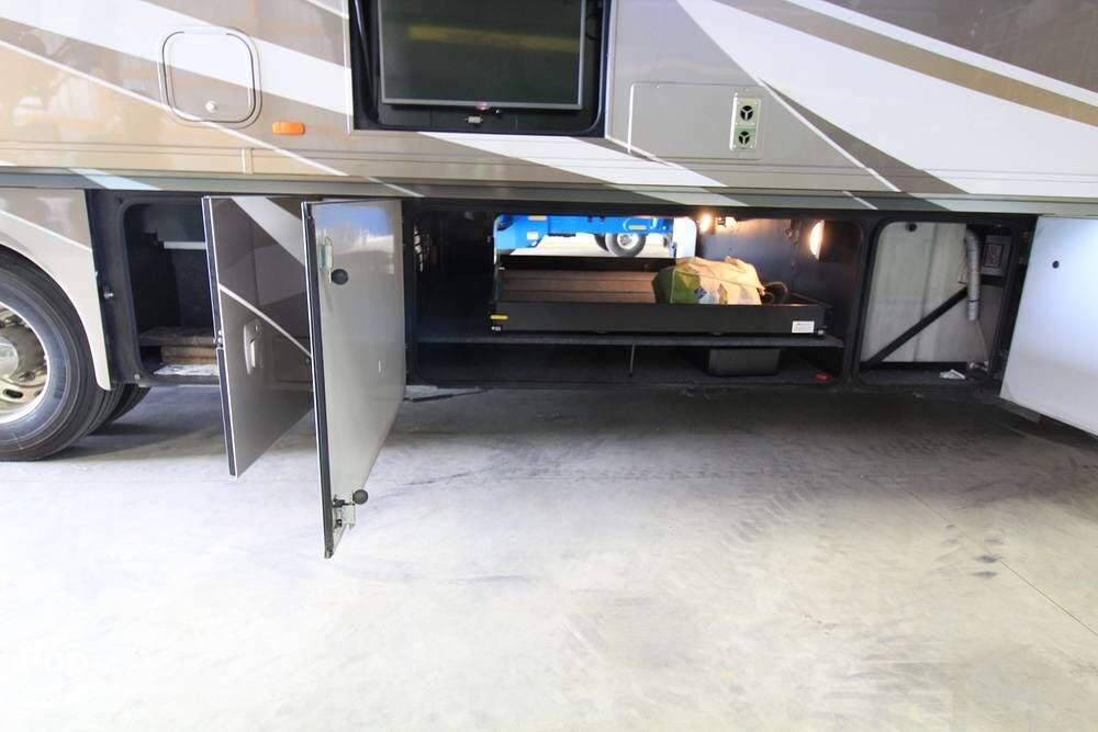The kitchen and convertible dinette are mid-coach with the main bedroom and full bath at the rear of the coach. The bedroom features plenty of storage space with washer and dryer hook-ups in the closet. There is also a separate entertainment center and a TV in the space.