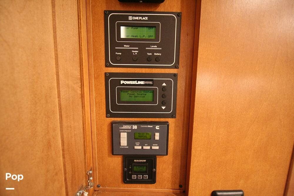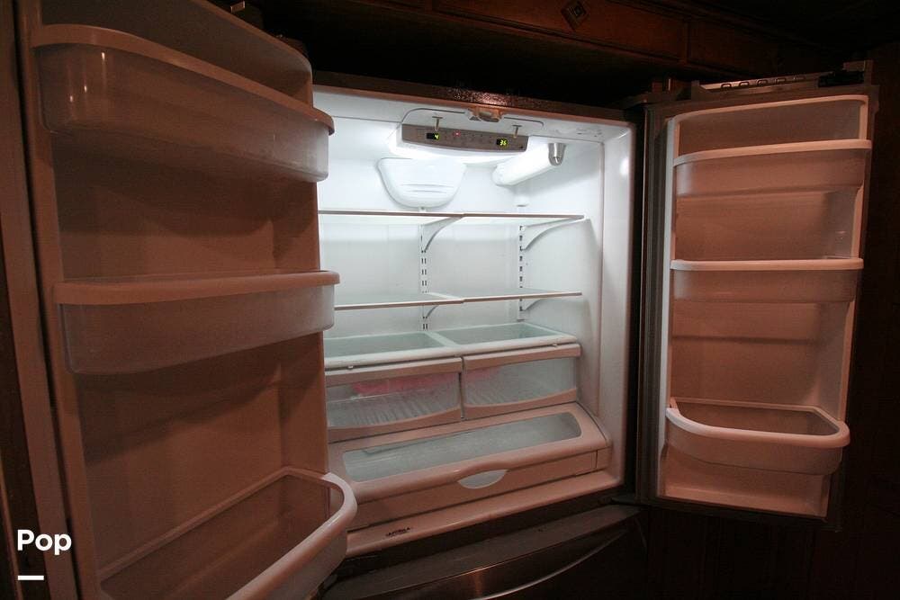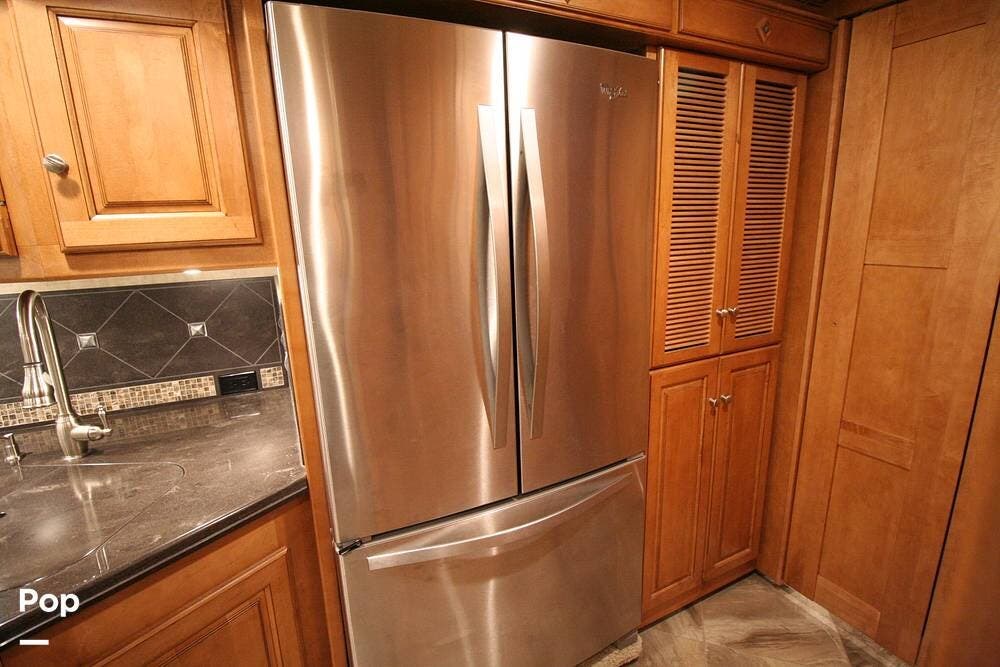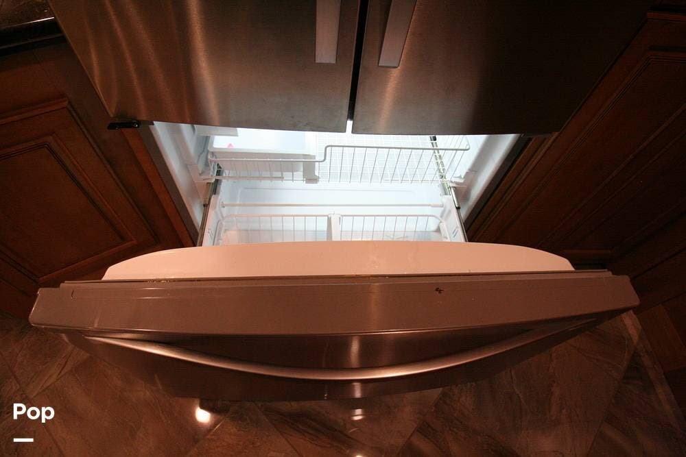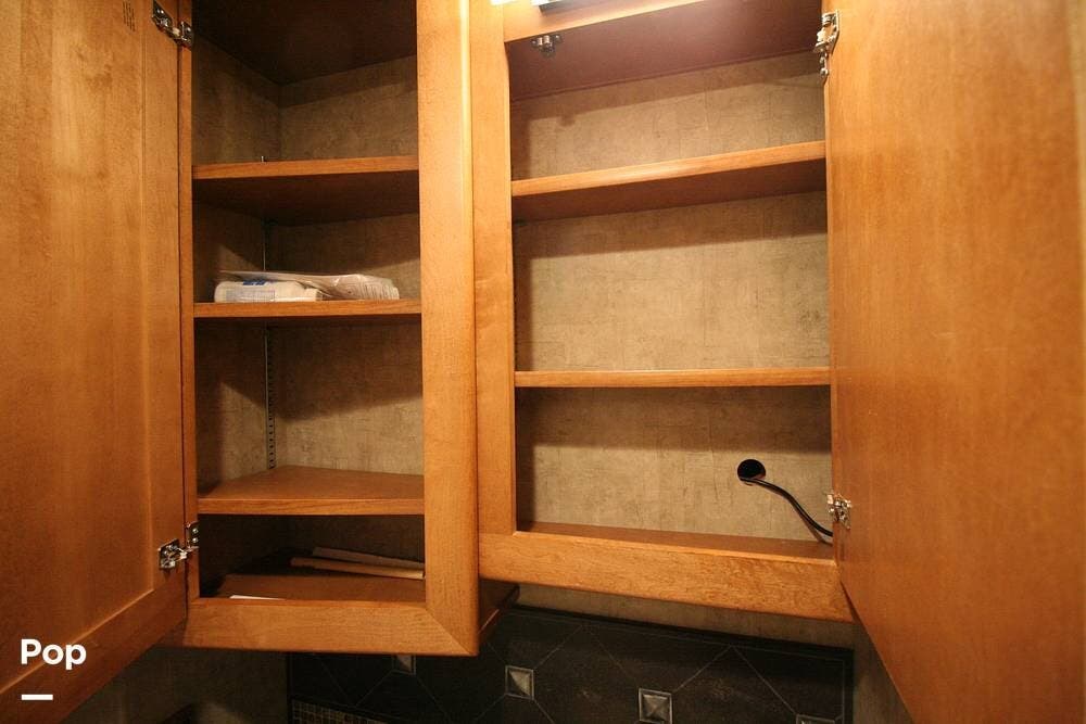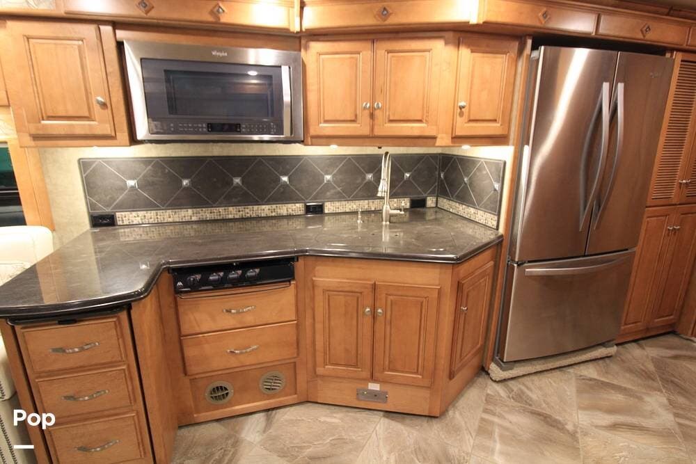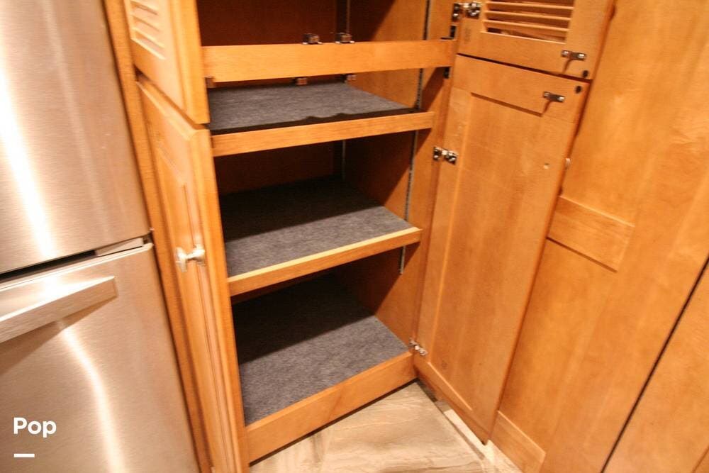 The kitchen and convertible dinette are mid-coach with the main bedroom and full bath at the rear of the coach. The bedroom features plenty of storage space with washer and dryer hook-ups in the closet. There is also a separate entertainment center and a TV in the space.
