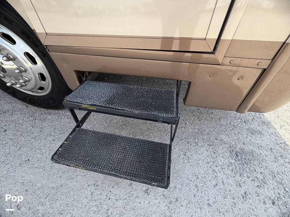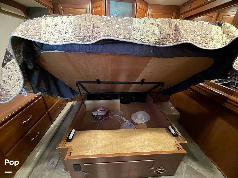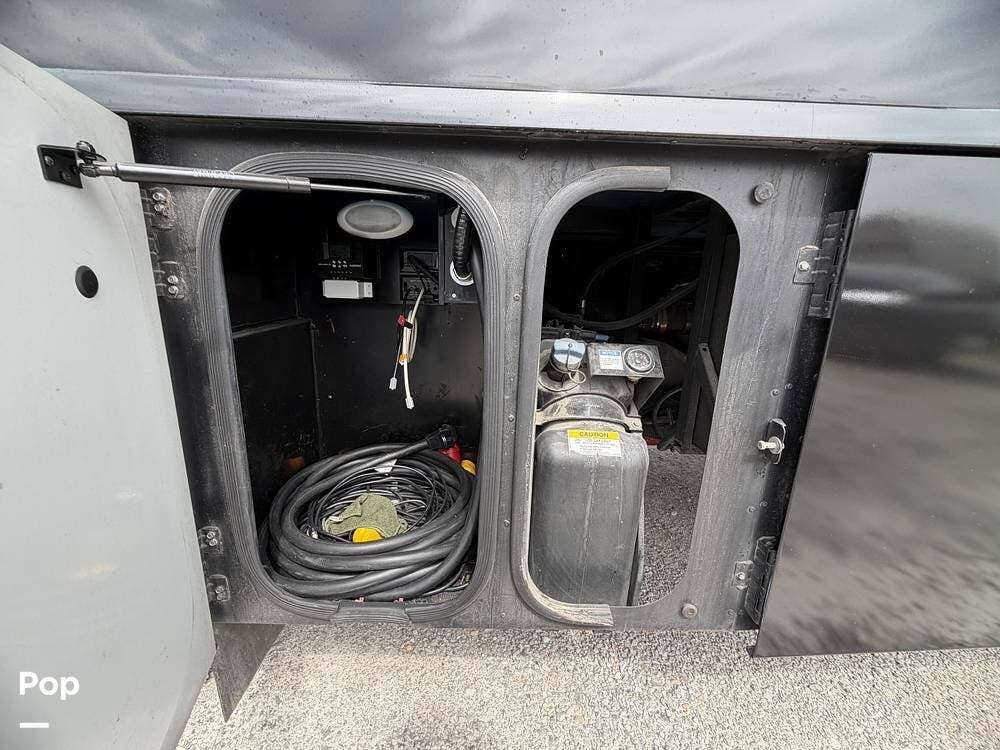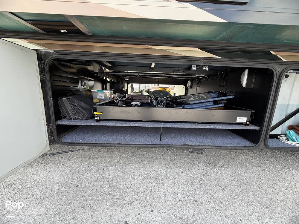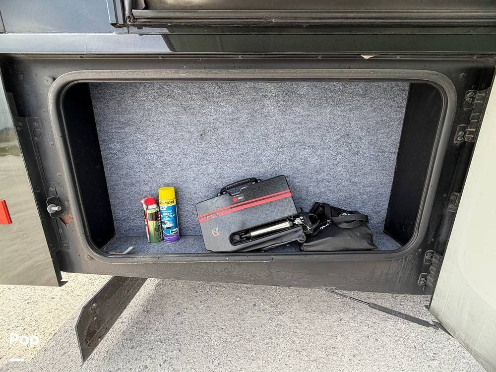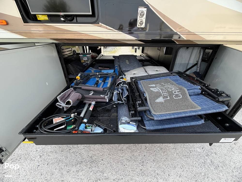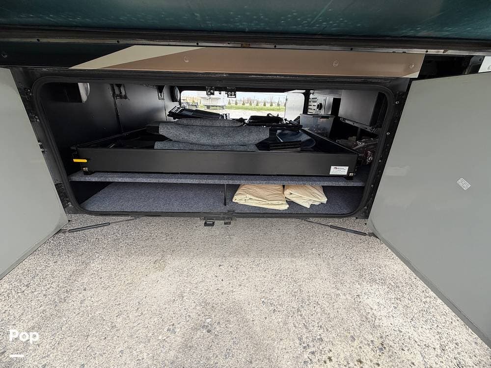 Dual A/C units, automatic leveling, slide toppers, and ample basement storage with pass-through compartments ensure comfort and convenience wherever the road takes you.