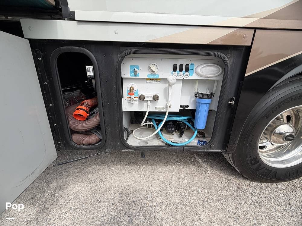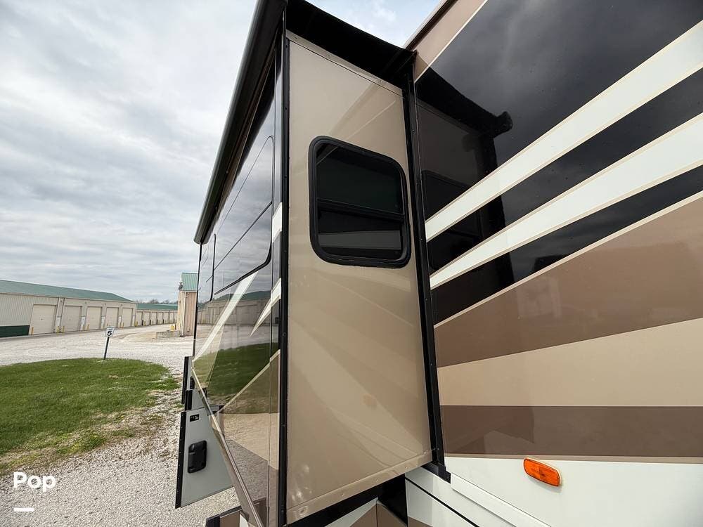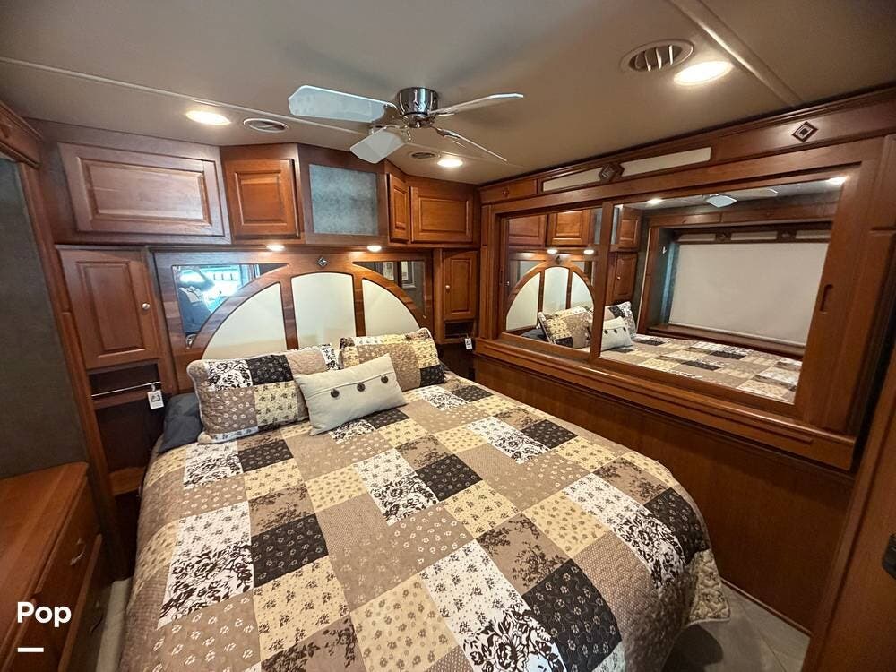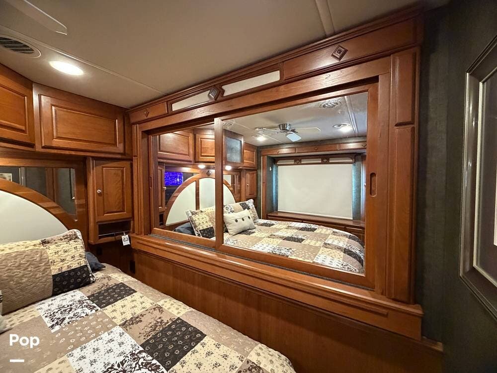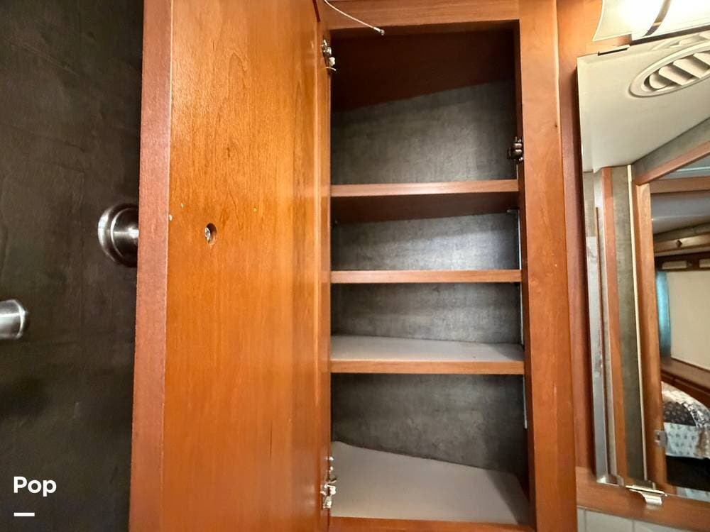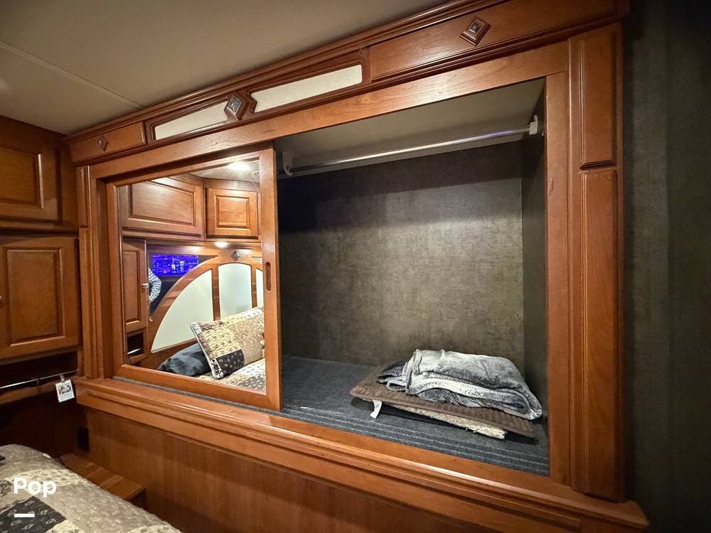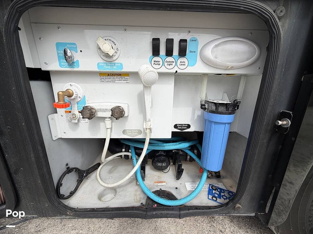 Dual A/C units, automatic leveling, slide toppers, and ample basement storage with pass-through compartments ensure comfort and convenience wherever the road takes you.