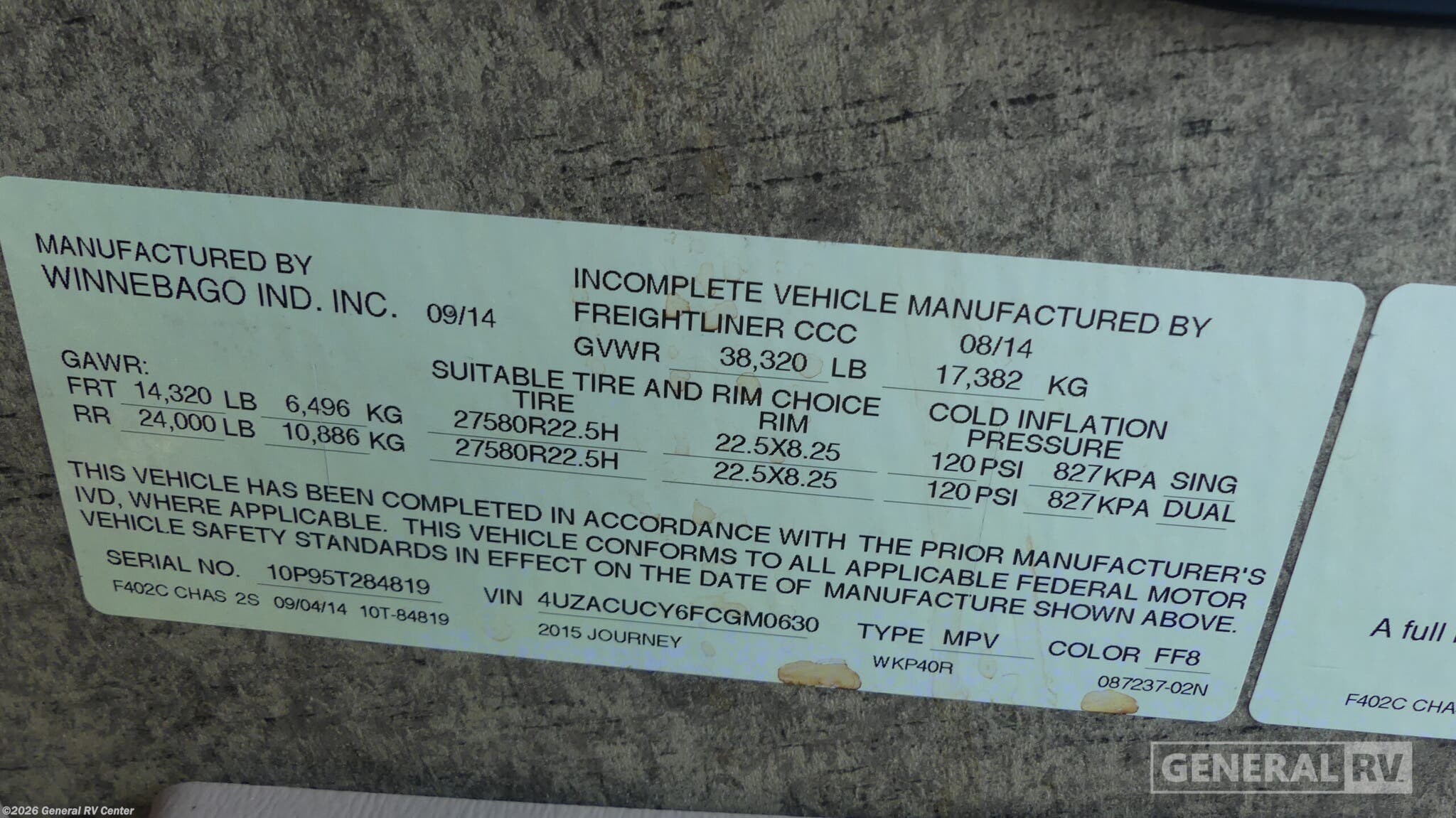 - VIN4UZACUCY6FCGM0630