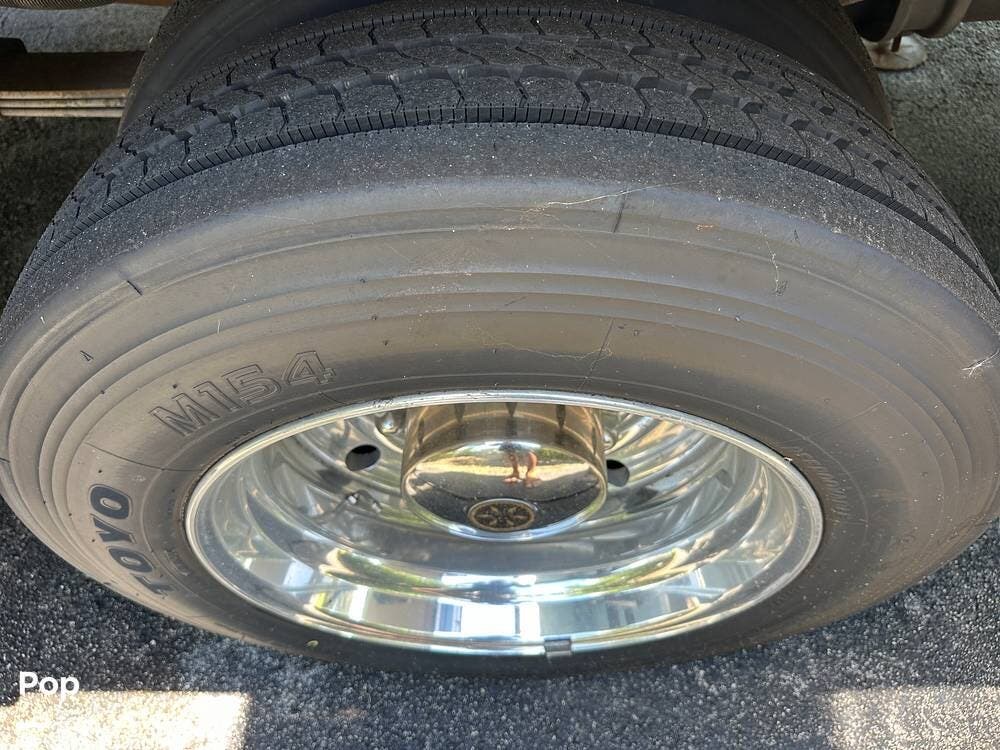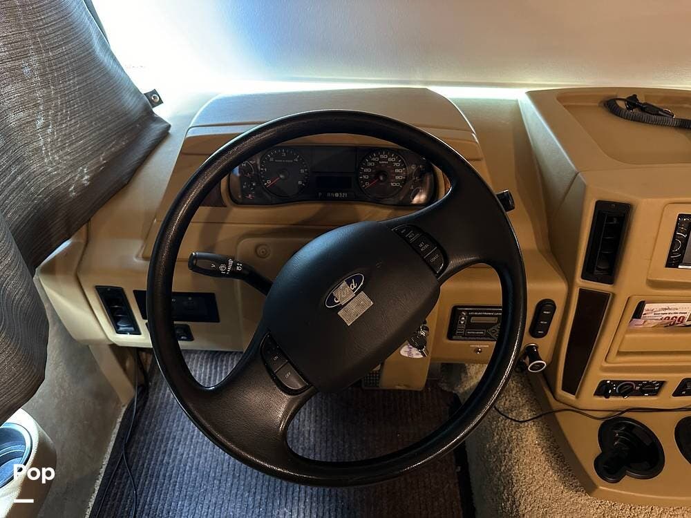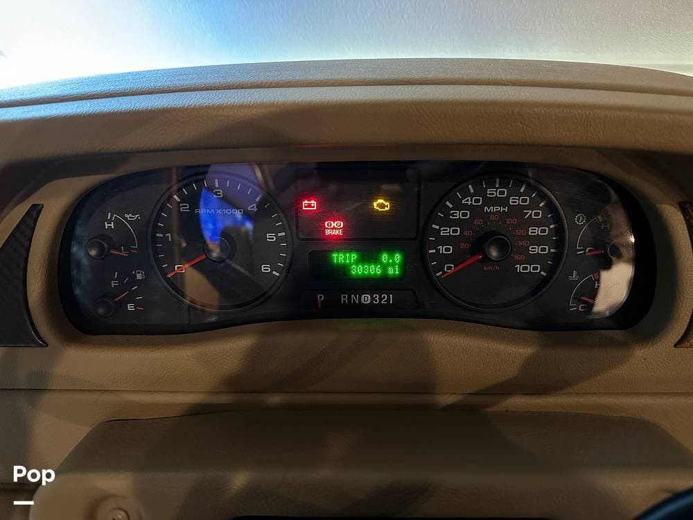 As you approach, you'll notice its sleek, modern exterior, which combines large windows and streamlined lines for a contemporary aesthetic. The body is built on a Ford chassis, offering a solid foundation, and powered by a Ford Triton V10 engine, providing ample power for long road trips.