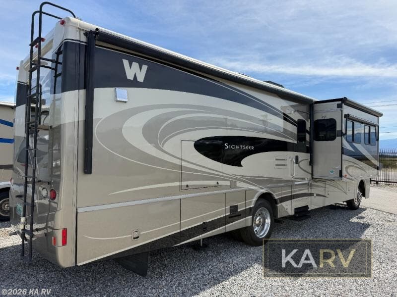You will enjoy plenty of sightseeing as you travel in this Winnebago Sightseer class A motor home 35G. This unit features triple slides, an optional king size bed, and all the amenities you need to enjoy spending time away from home.