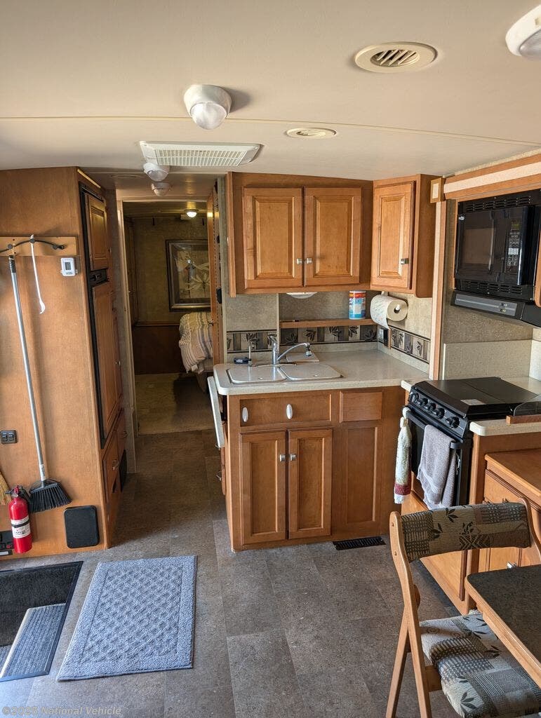 Inside, the Vista 30T features three power slide-outs that dramatically expand the living space?creating an open, inviting environment perfect for relaxing or entertaining. The interior is finished with premium touches like Corian? countertops, ultraleather? seating, MCD blackout roller shades and LED interior lighting.