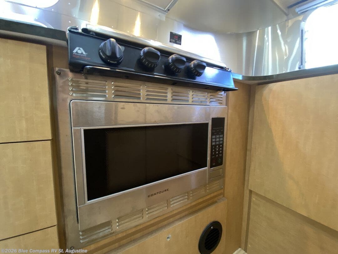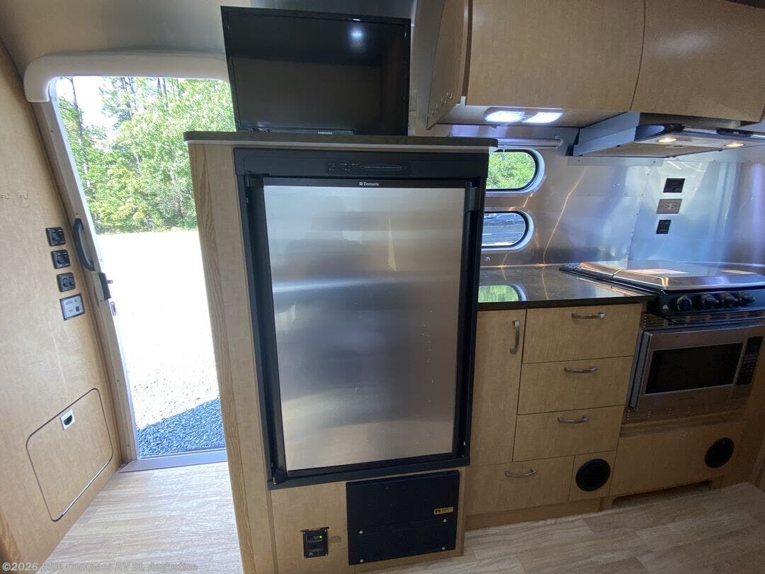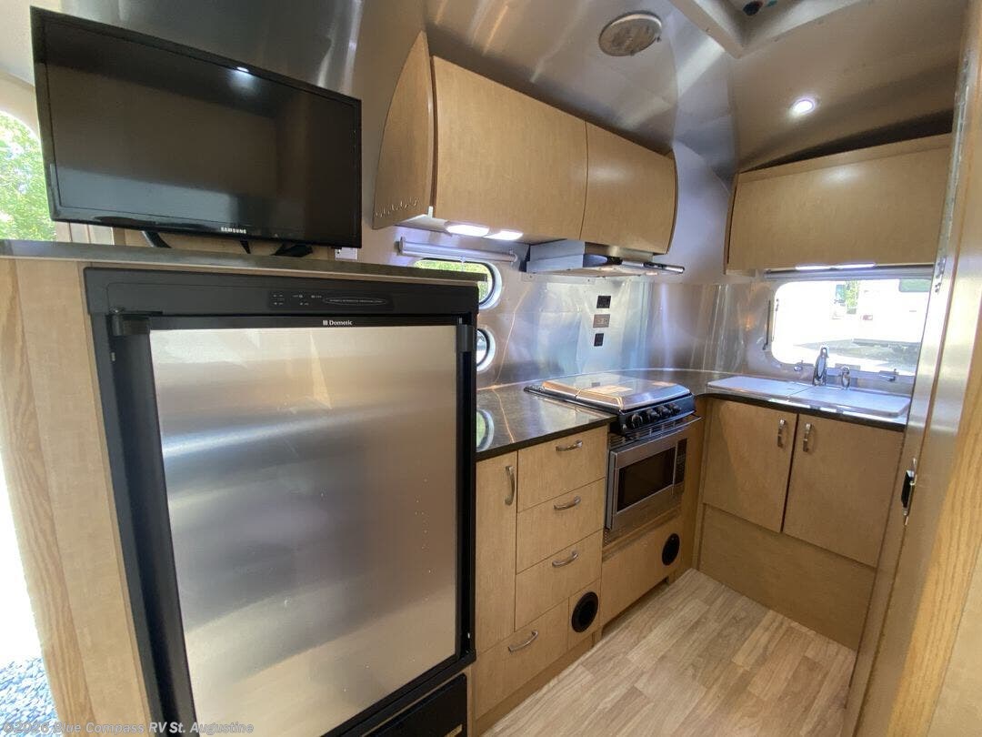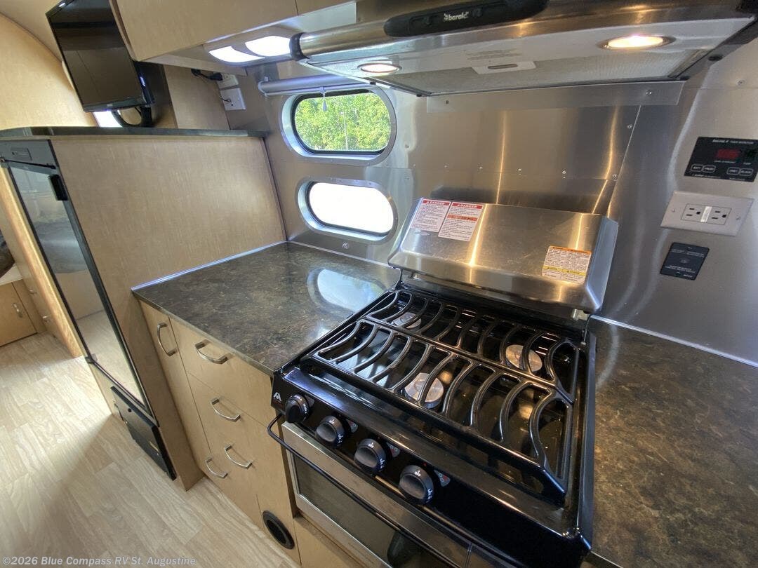 The Flying Cloud 20 travel trailer by Airstream offers a rear corner kitchen area.