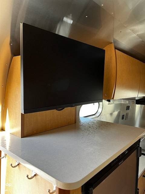 What really sets this trailer apart is its electrical setup. It comes equipped with two factory Airstream solar panel systems and two lithium batteries, giving you serious off-grid capability. A lithium-compatible power converter was professionally installed in 2023, so the entire electrical system is fully optimized and working together the way it should. Add in a 1,000-watt inverter and USB charging ports throughout, and you have a trailer that's ready to keep you powered up whether you're at a full-hookup campground or parked somewhere far off the beaten path.
