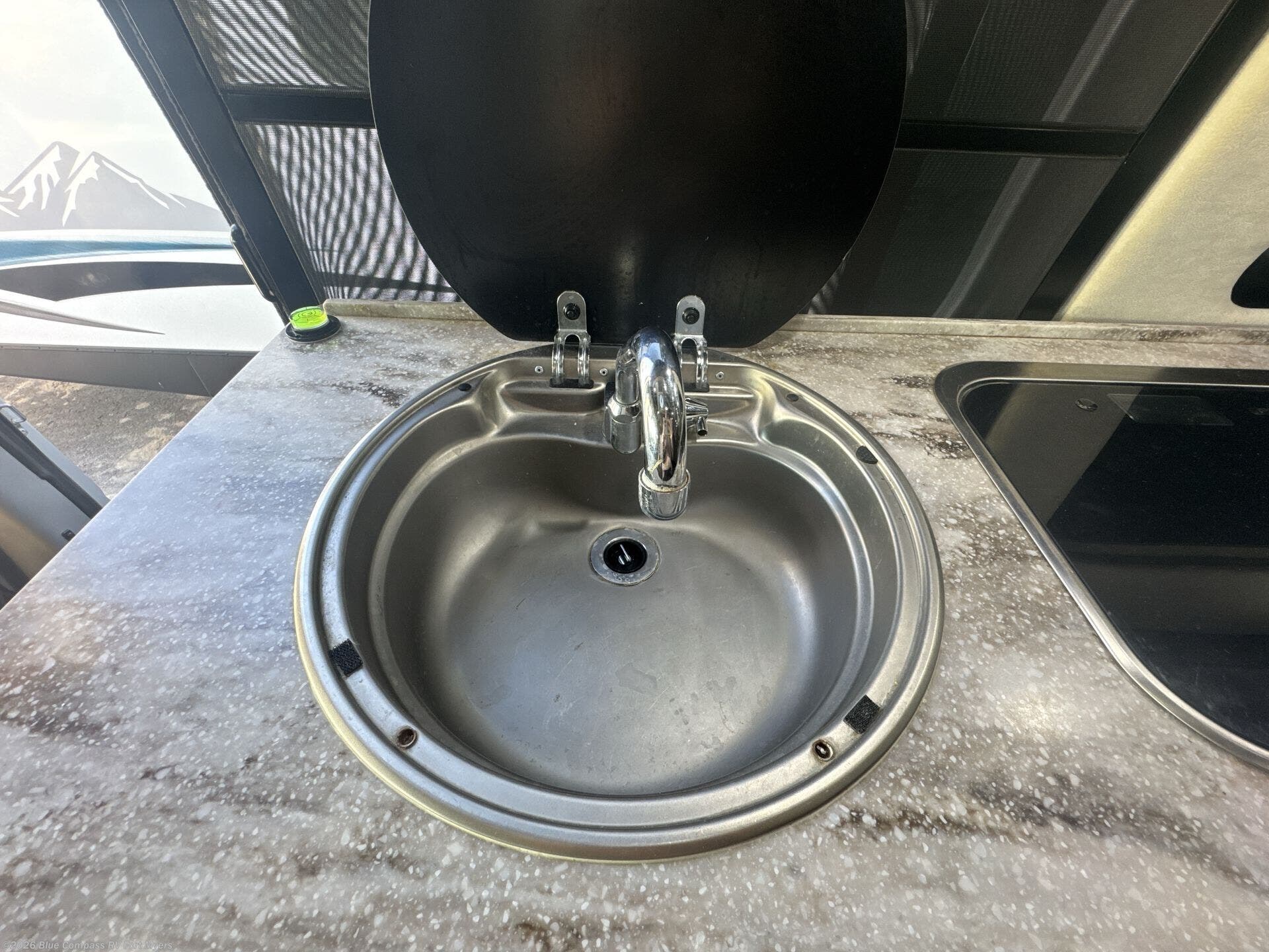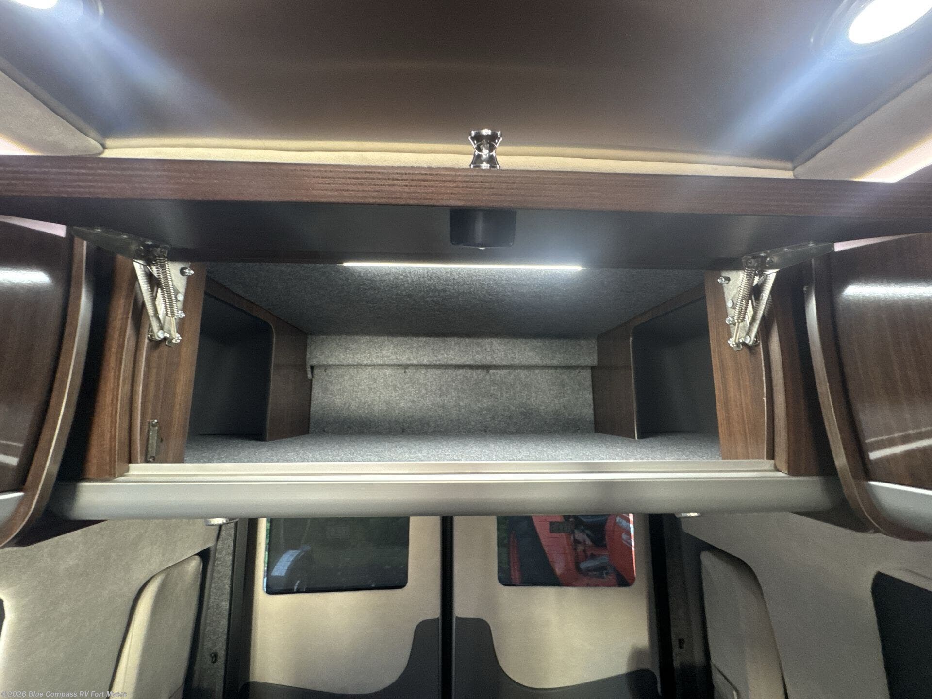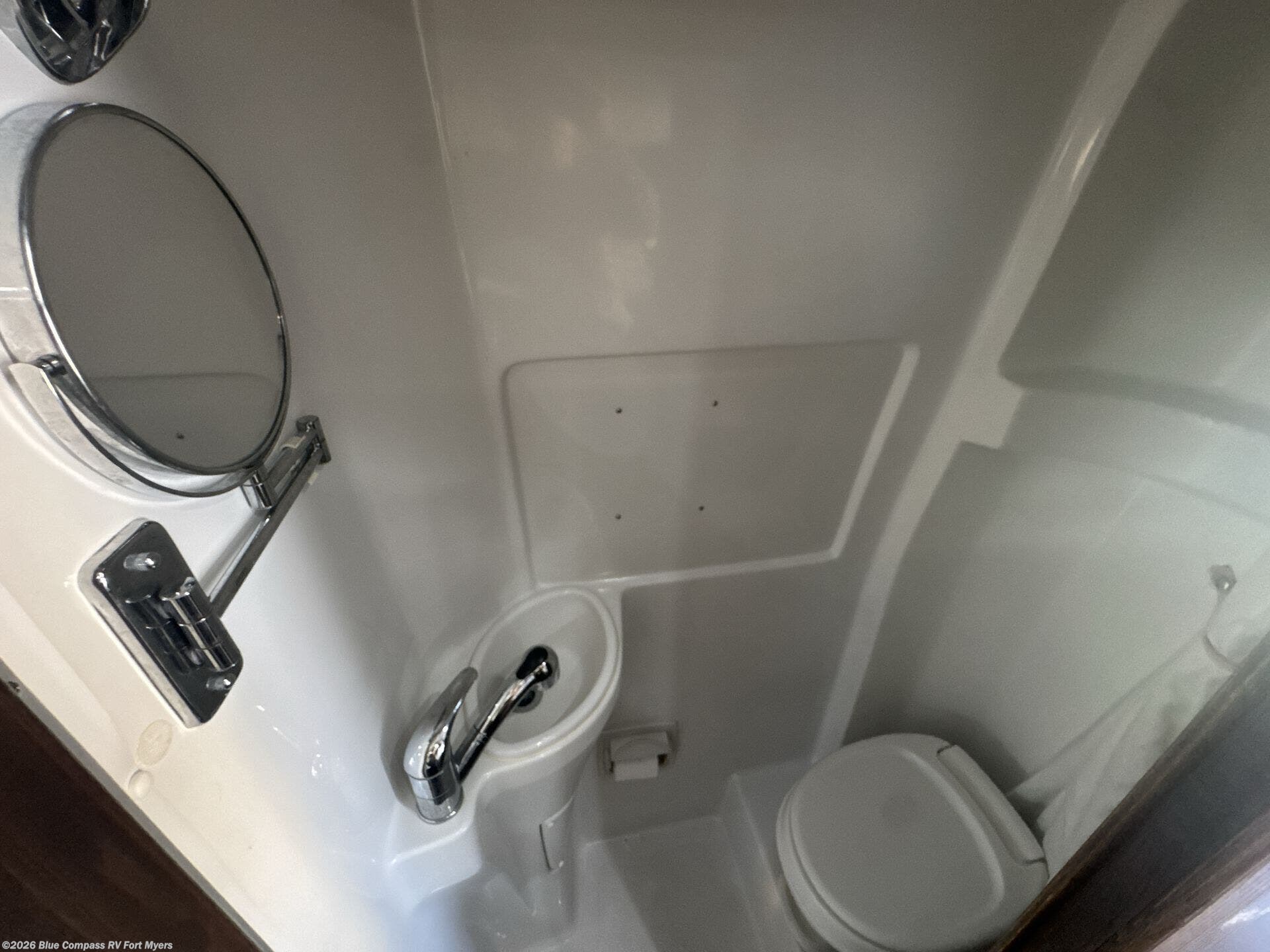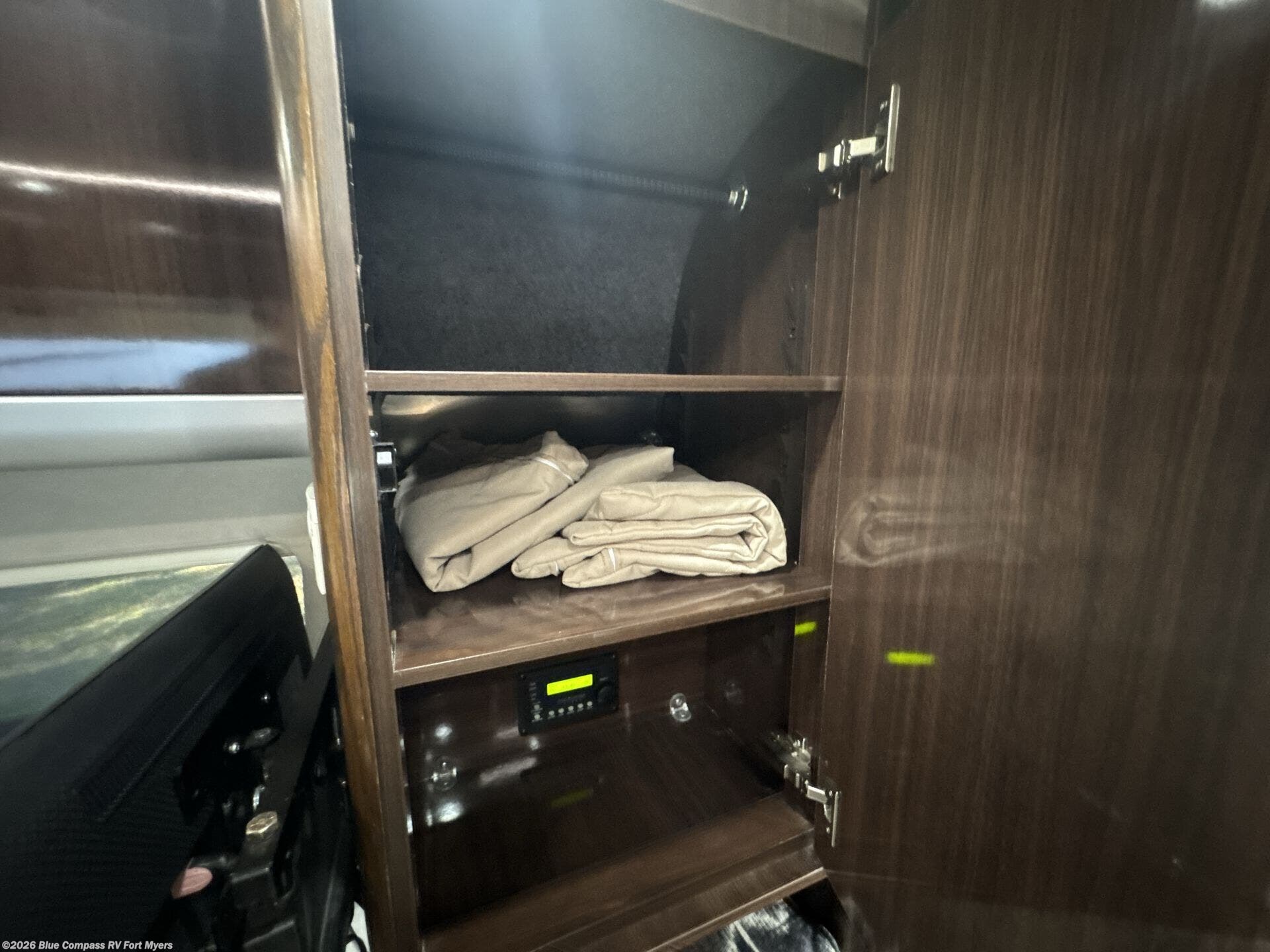 Get ready to drive and stay in comfort and luxury in this motorhome with everything you need and everything you didn't even know you wanted! The heated driver and passenger seats swivel to face the interior living space allowing you to utilize the Corian countertop with backsplash. Whip up a meal using the galley kitchen featuring a single-burner induction cooktop, and a sink and faucet, plus extra counter space for food prep. There is also a 1.2 cu. ft. drawer microwave, plus a pantry with built-in drawers and a refrigerator with a freezer across from the sink. The power sofa in the rear can be fully flat with a push of a button so two can sleep or rest. And there is storage throughout for your hanging clothes, towels, luggage, dishes and more.