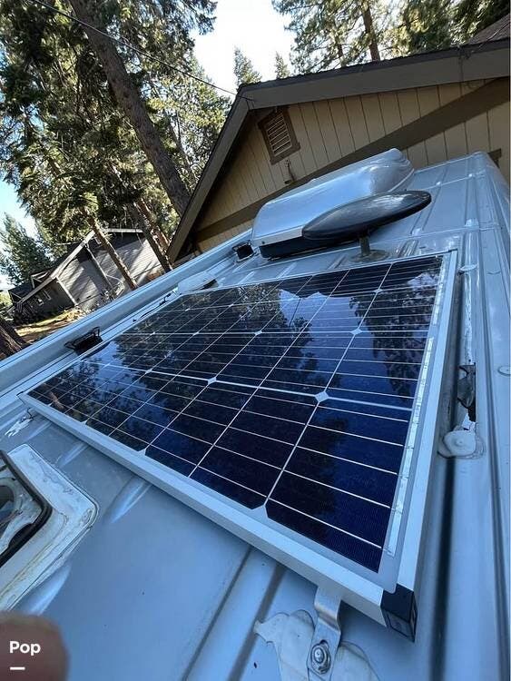 For off-grid capability, the RV comes with a 2.5kW Onan LP generator with remote start, dual AGM house batteries, a 100-watt solar panel, and a 30-amp shore power service.