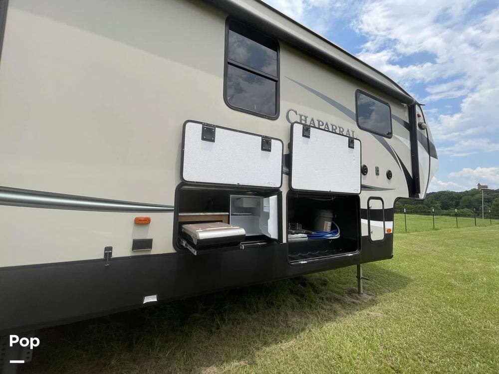 This 2016 Chaparral 390QSMB is a roomy fifth-wheel trailer with all the amenities.