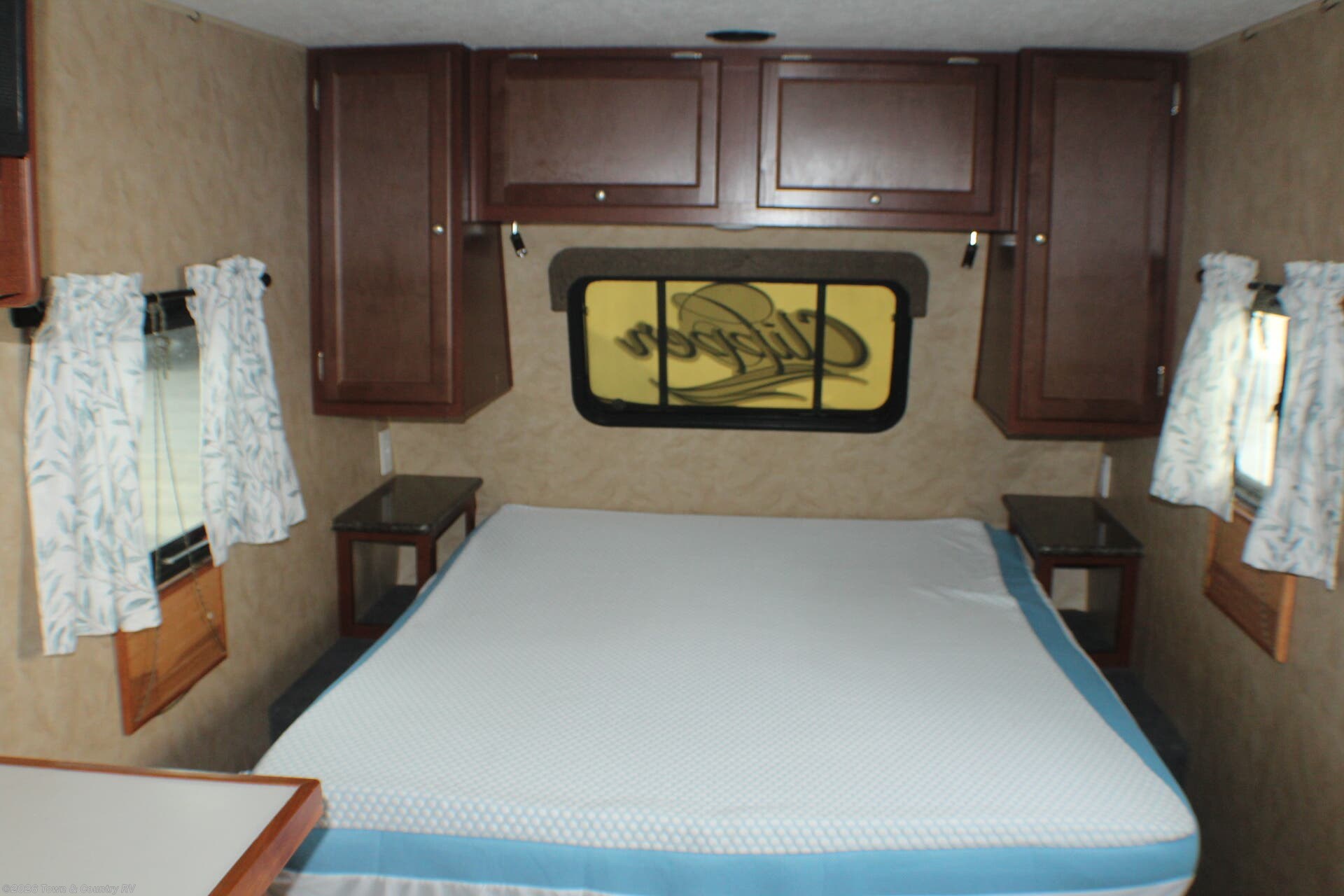 Front Bed - Back Bathroom: Air, Awning, Furnace, Refrigerator, Microwave, Sleeps 4, GVWR: 3,615#, Unloaded Weight: 2,845#.