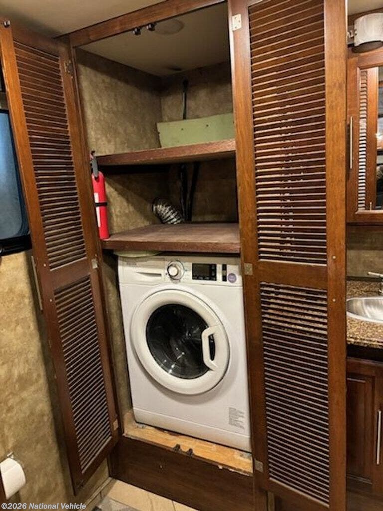 Additional highlights include dual air conditioners, washer/dryer, automatic leveling system, onboard generator, and an exterior entertainment center?making it fully equipped for both short getaways and long-term adventures.