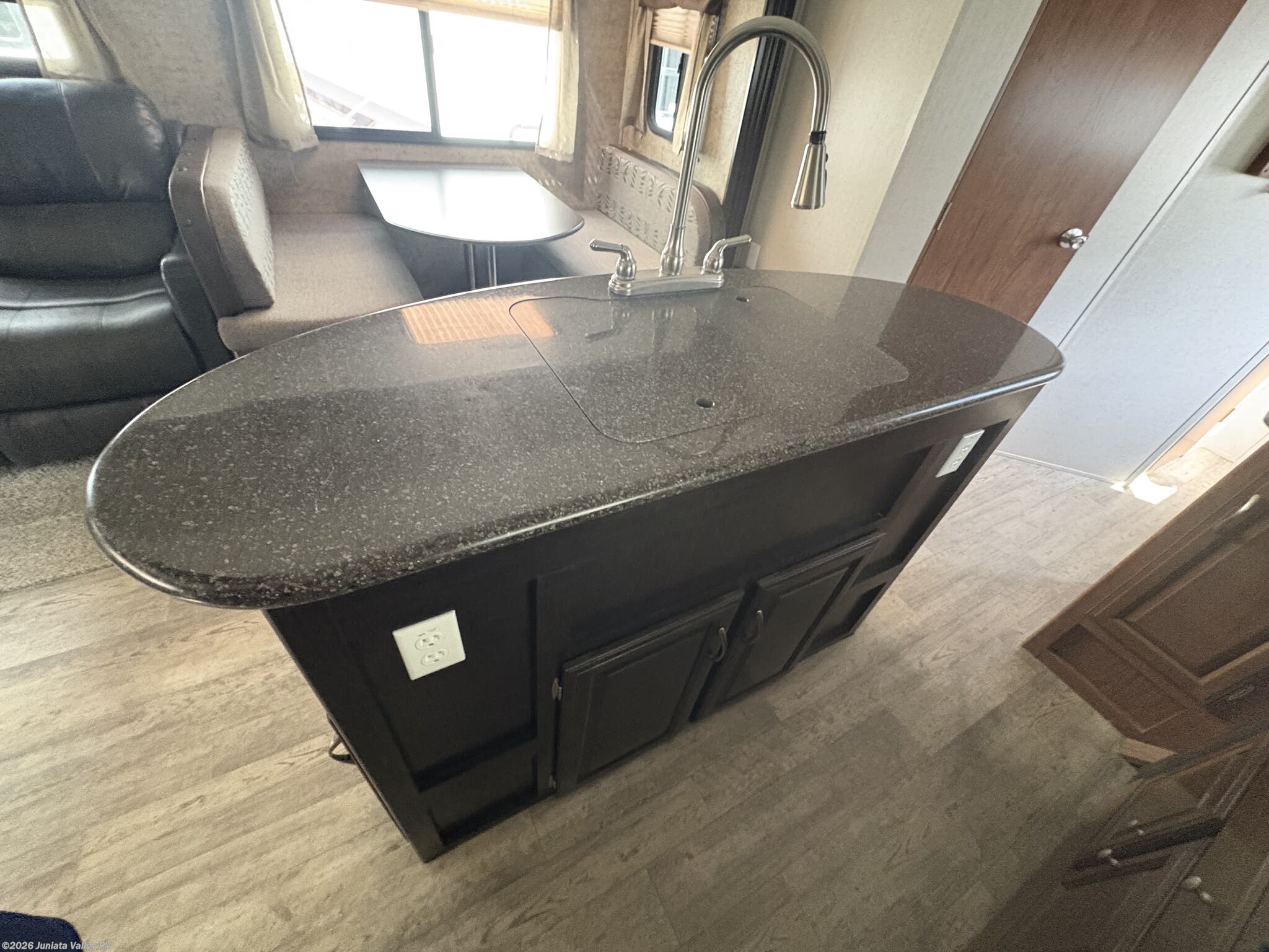 - Booth dinette that converts to a bed, plus a dedicated pantry and overhead cabinetry for storage