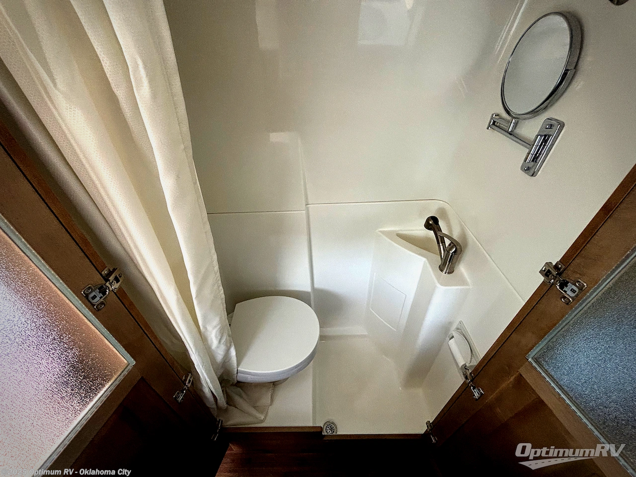Along the passenger side you will find a convenient wet bath including a shower, toilet, and sink. There is a wardrobe/pantry opposite that can hold your dry food items, and also your towels and toiletries.