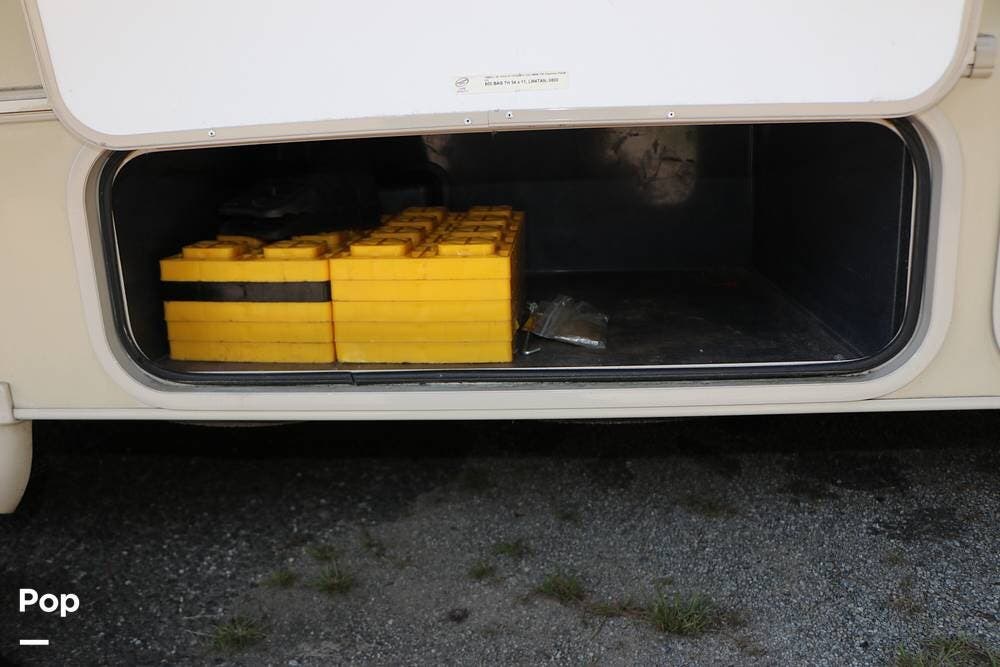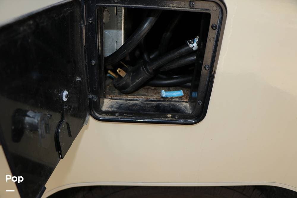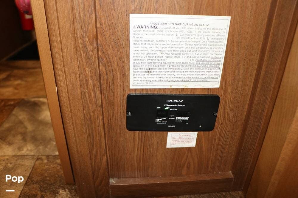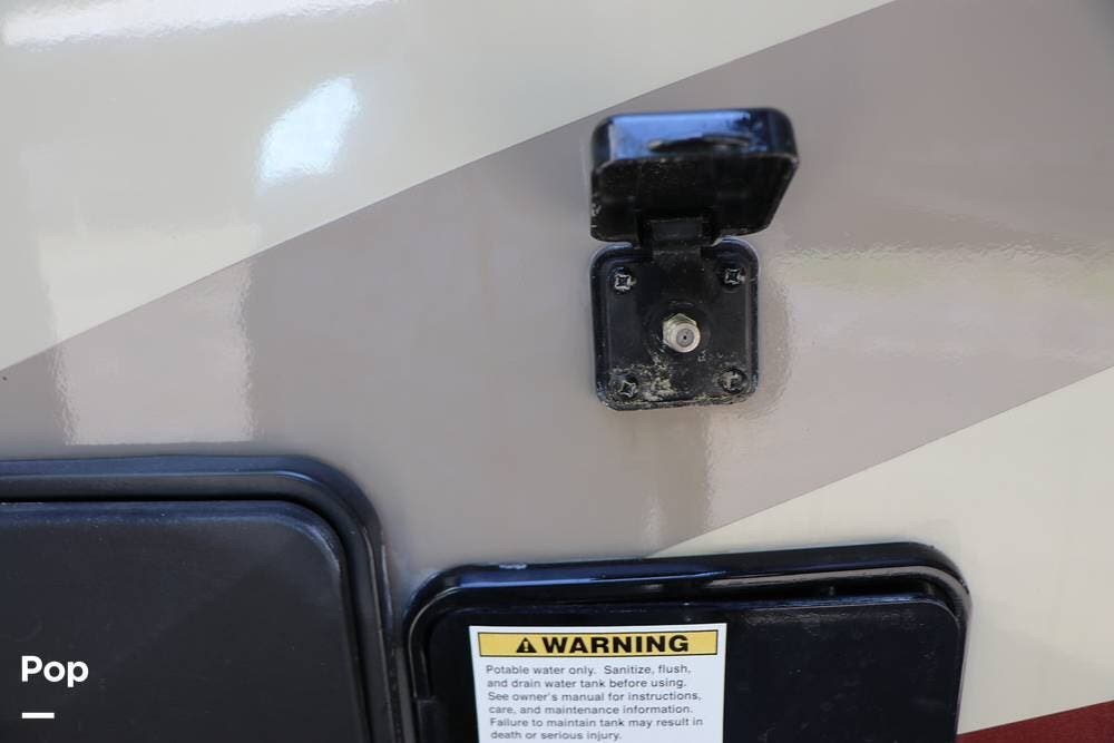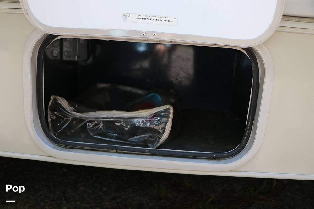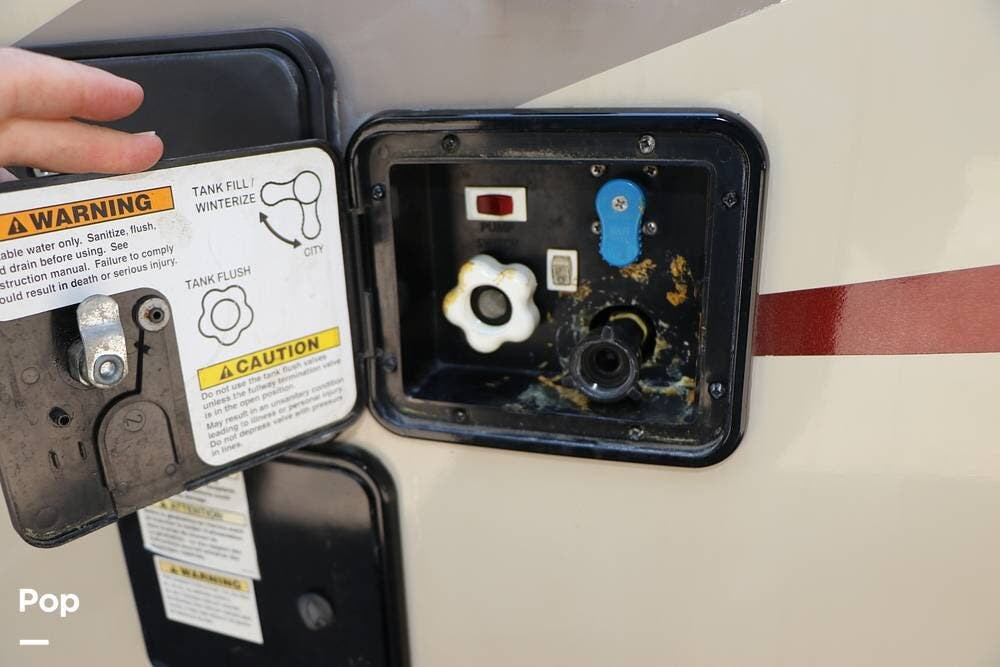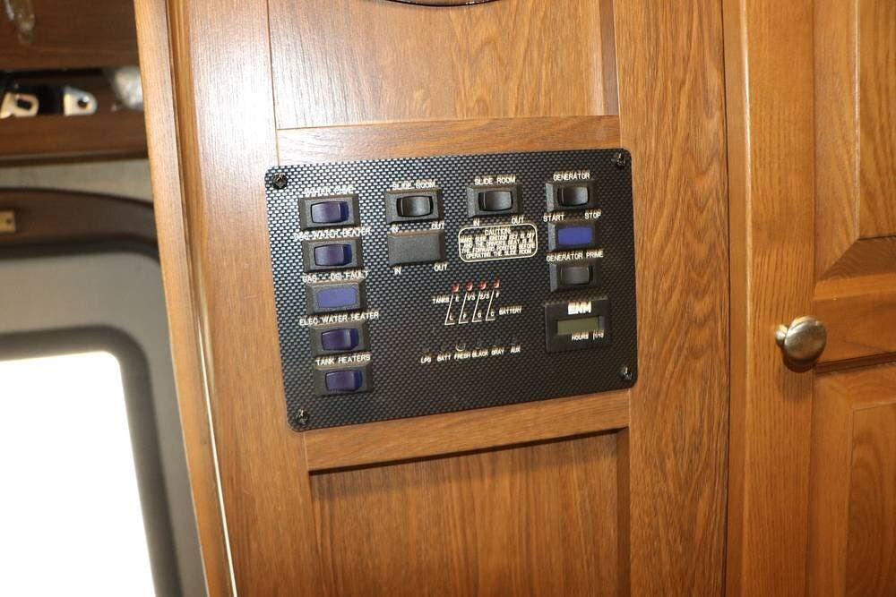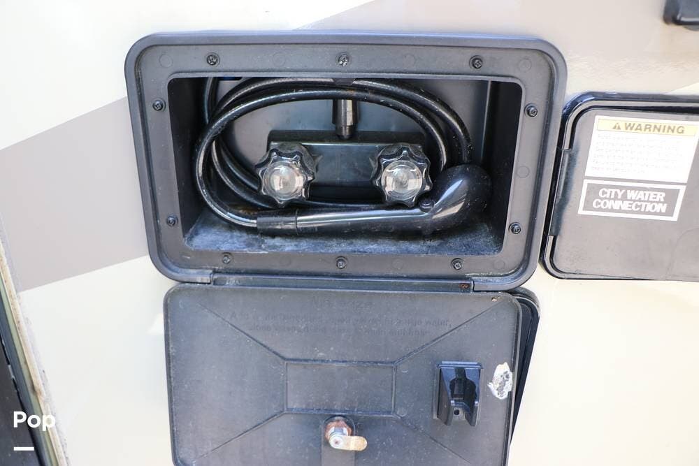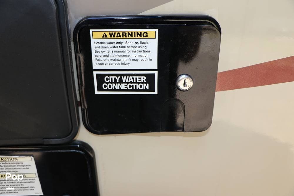 Outside the large awning provides the ability to extend the fun outdoors and makes this a great RV for tailgating at your favorite team's events. The exterior TV and table top are both optional items that make this a great way to entertain friends and family. There are several storage spaces around the exterior and easy access to all the RV systems, which are clearly marked.