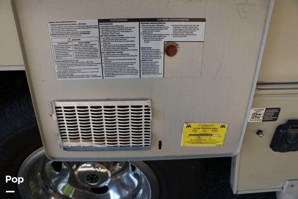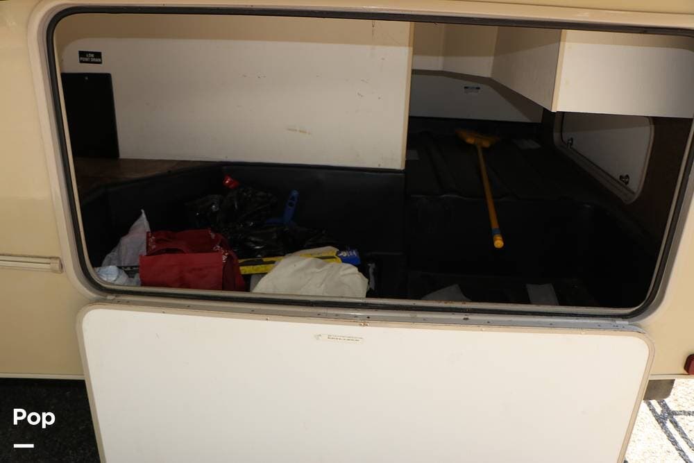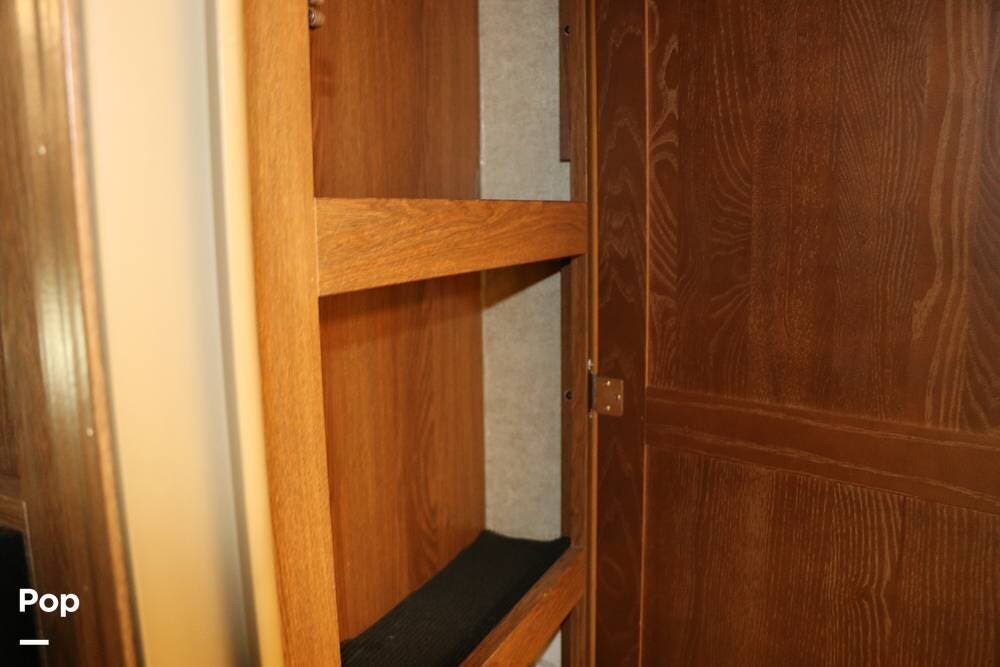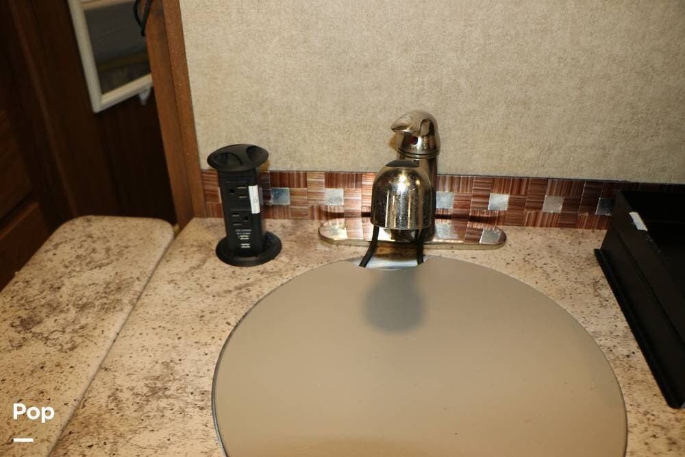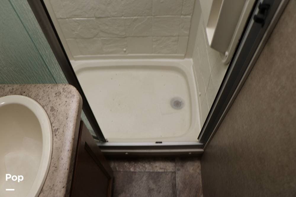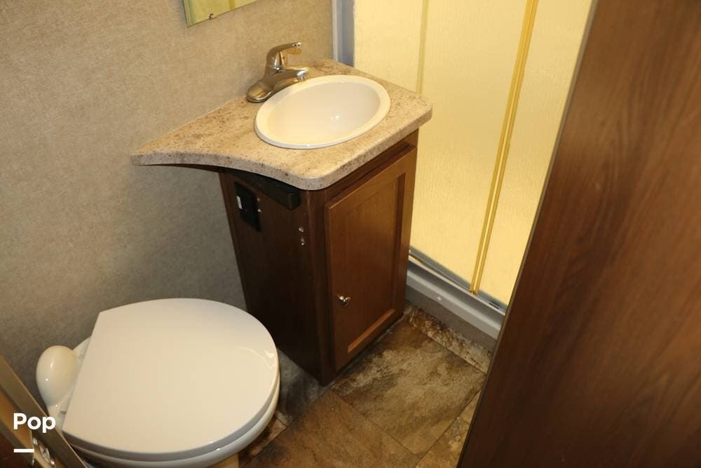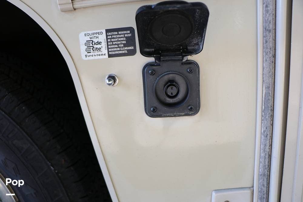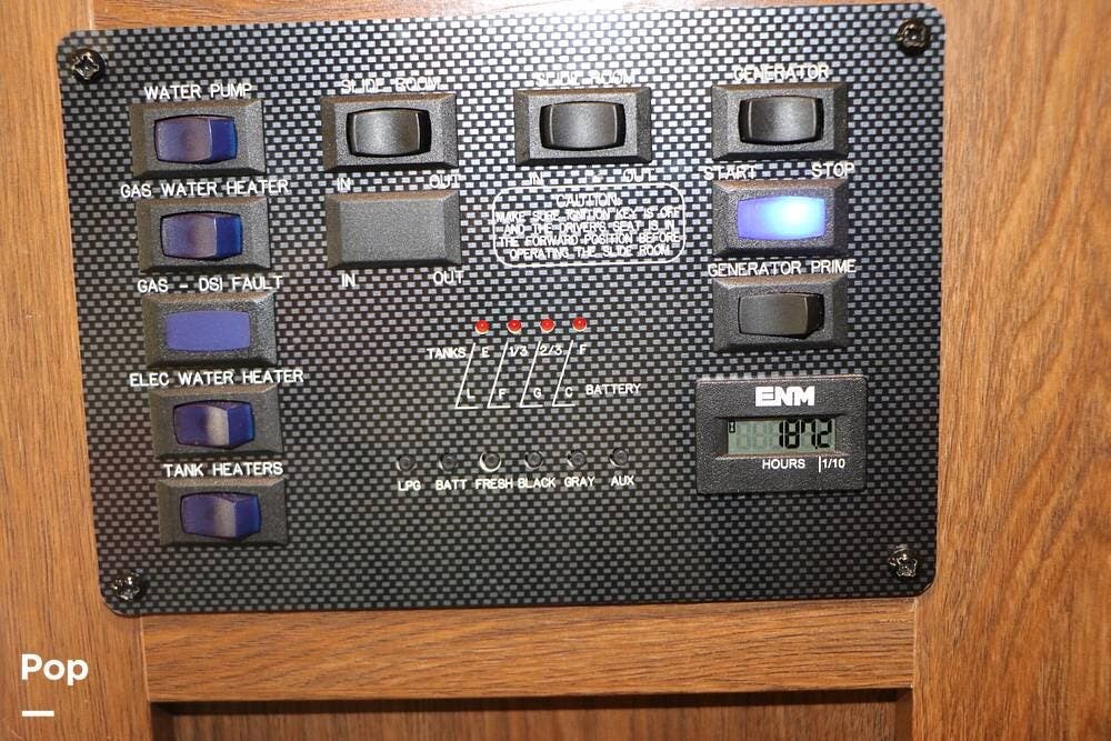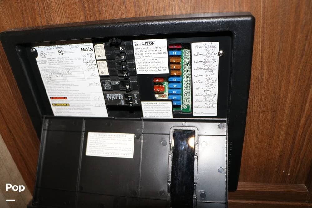 Outside the large awning provides the ability to extend the fun outdoors and makes this a great RV for tailgating at your favorite team's events. The exterior TV and table top are both optional items that make this a great way to entertain friends and family. There are several storage spaces around the exterior and easy access to all the RV systems, which are clearly marked.