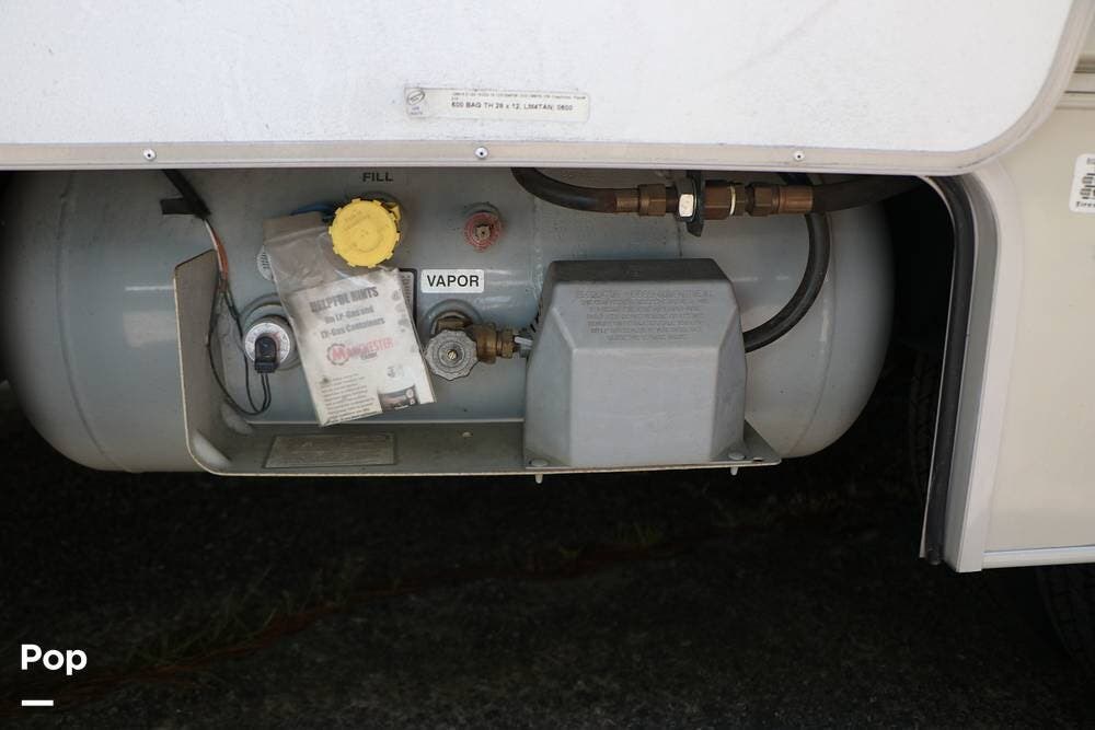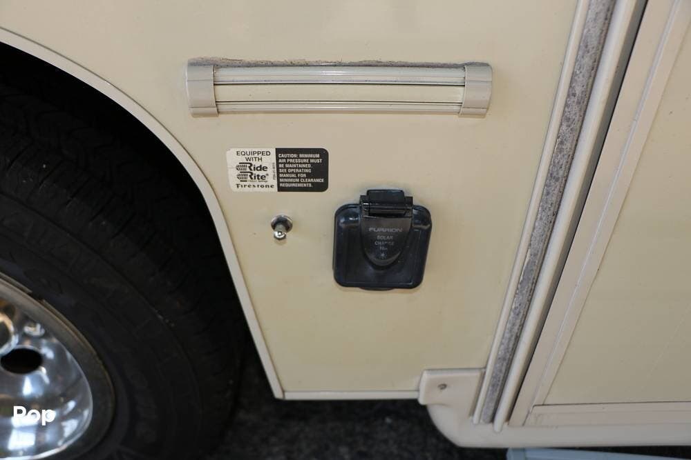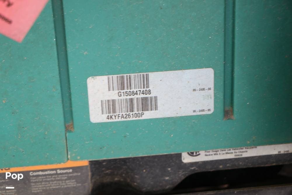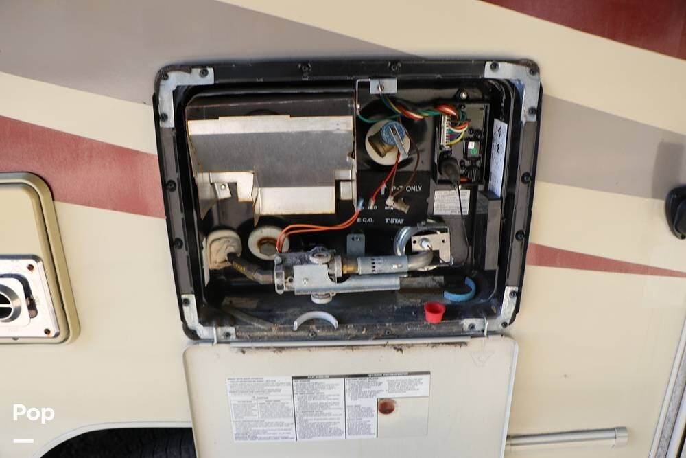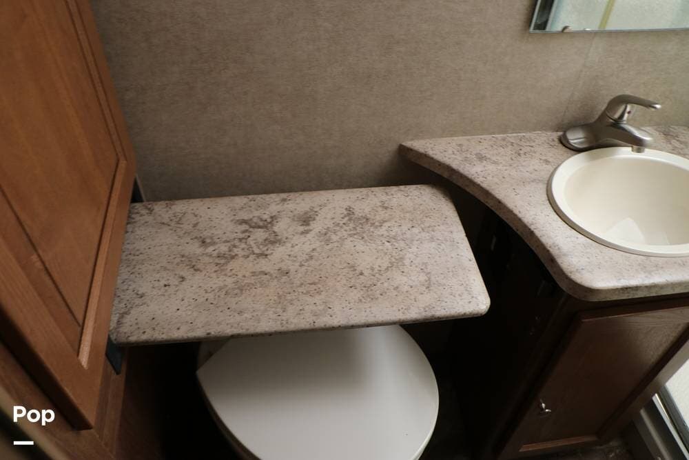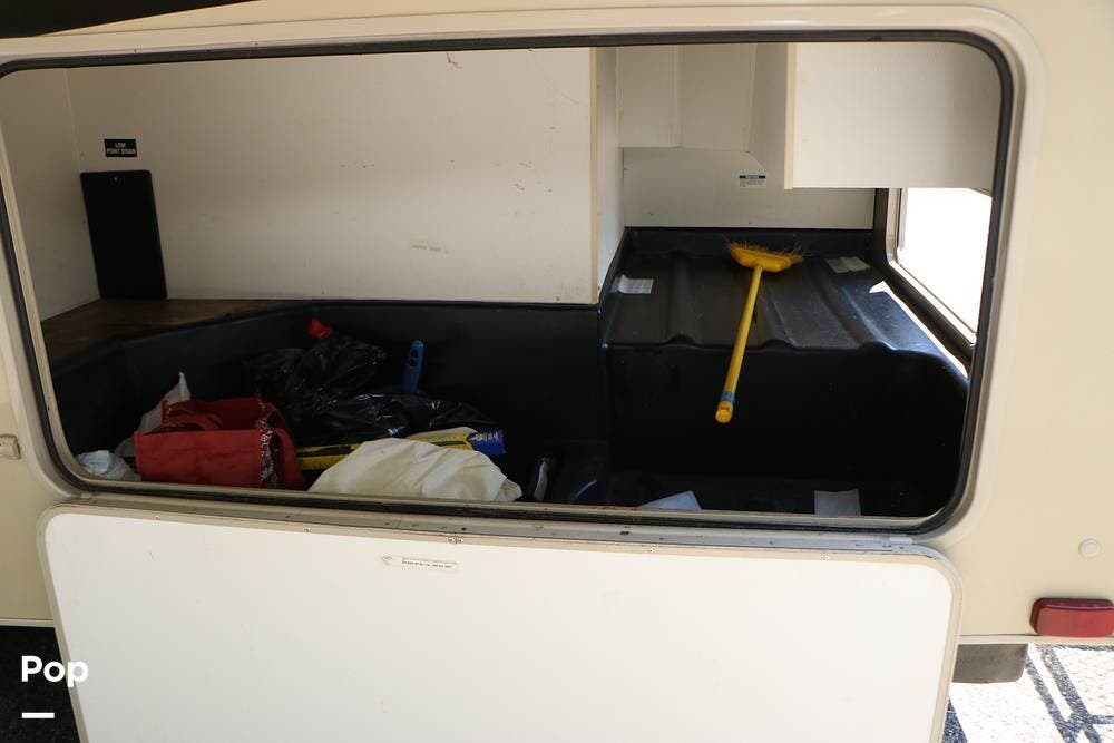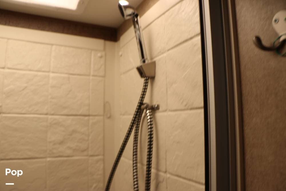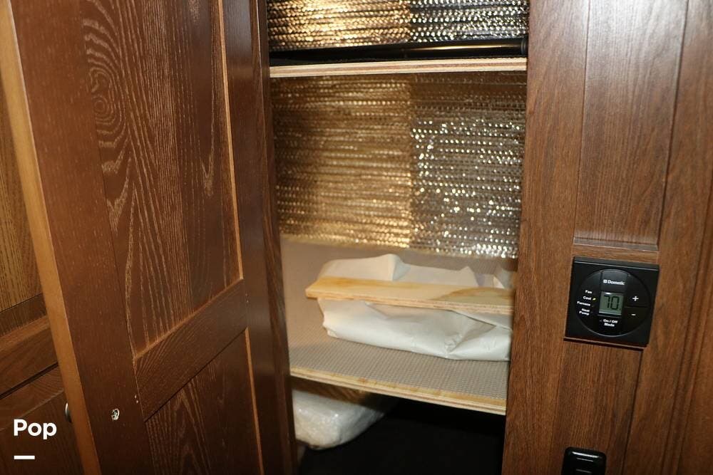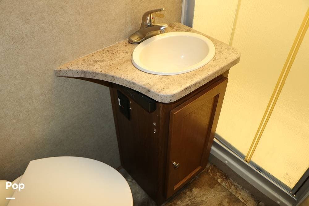 Outside the large awning provides the ability to extend the fun outdoors and makes this a great RV for tailgating at your favorite team's events. The exterior TV and table top are both optional items that make this a great way to entertain friends and family. There are several storage spaces around the exterior and easy access to all the RV systems, which are clearly marked.