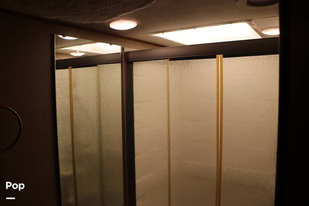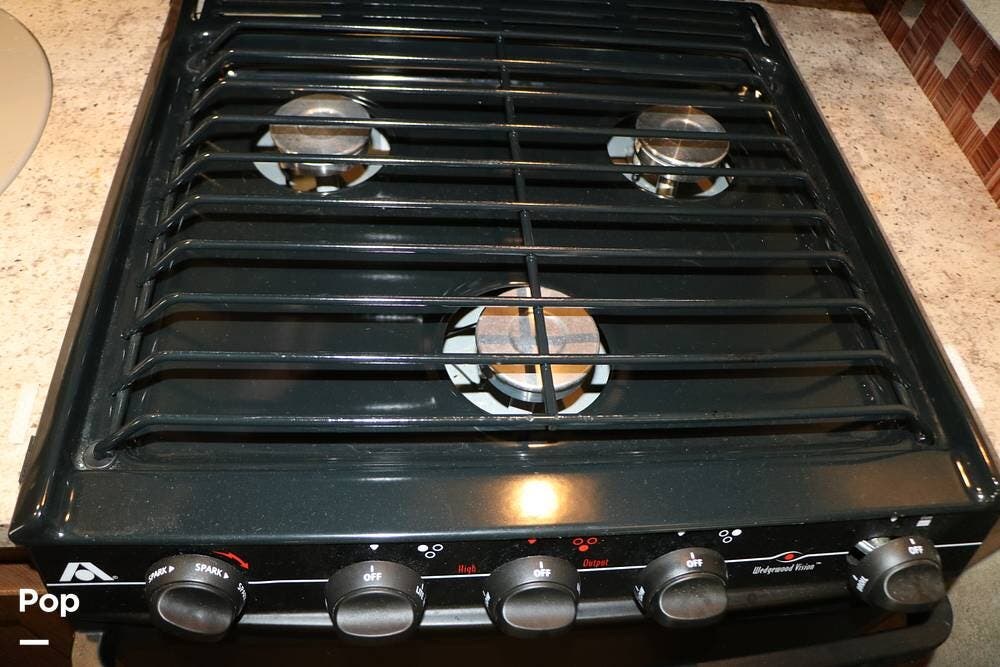 The galley is compact, but features everything you need - a four-door refrigerator/freezer, a microwave/convection oven is above the 3-burner stove top, a conventional gas oven, and a Farm-style kitchen sink with a counter-top extension for additional workspace. There is a pantry and more cabinet space above and below the laminate countertops.