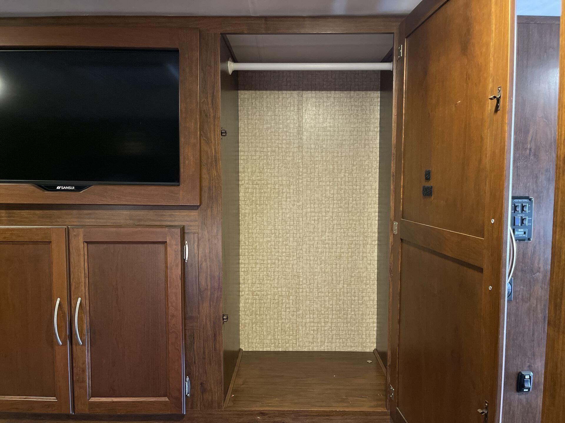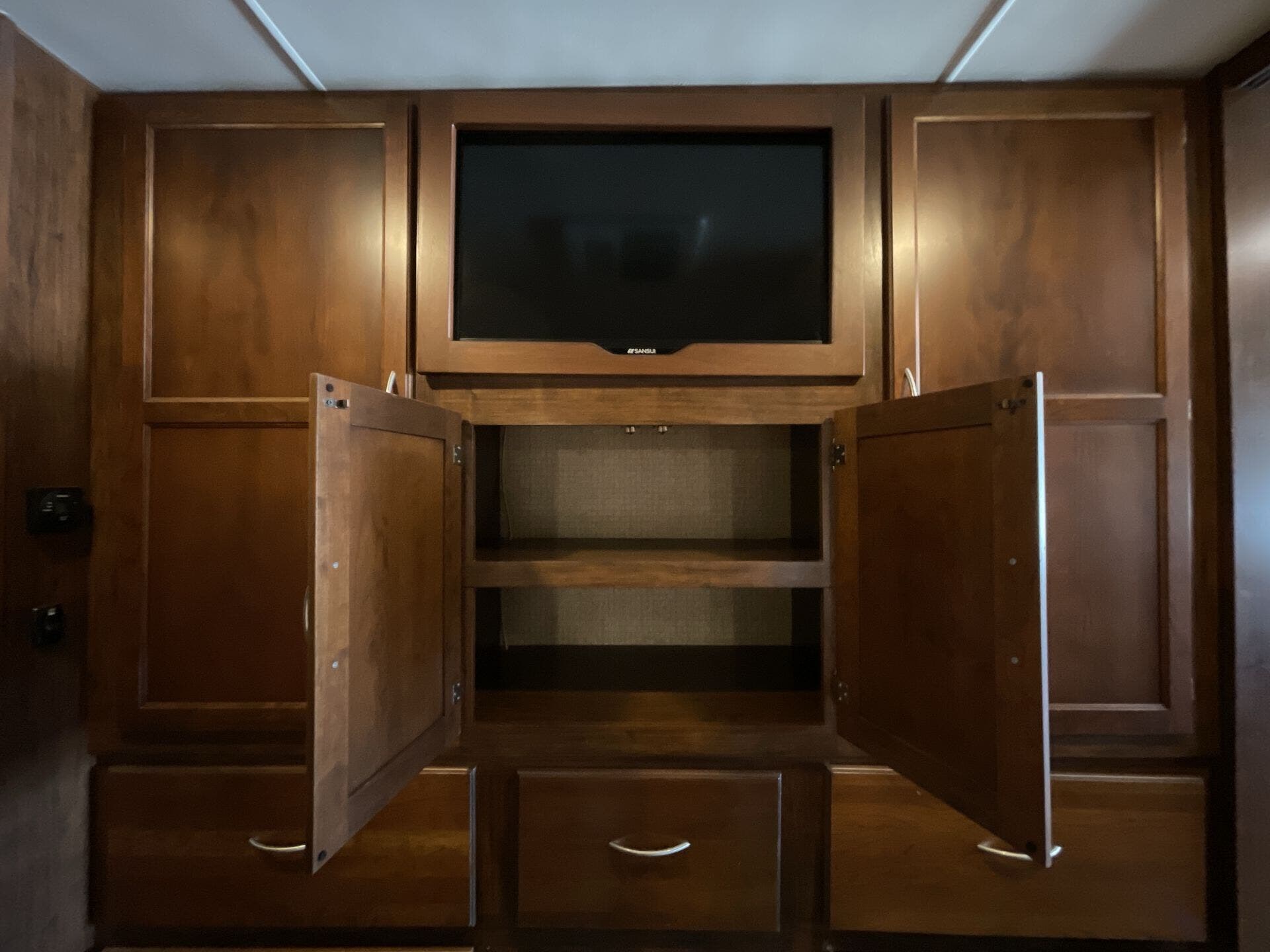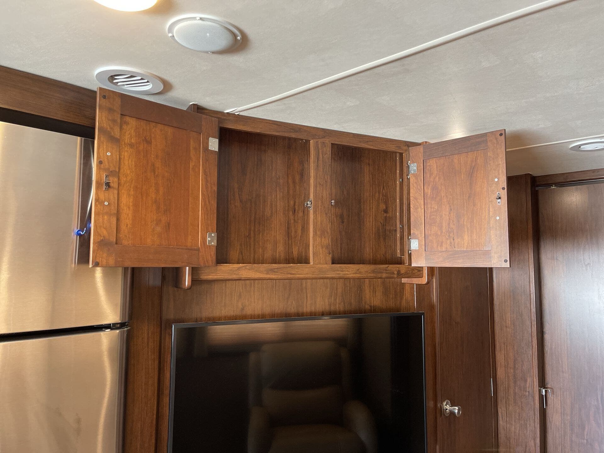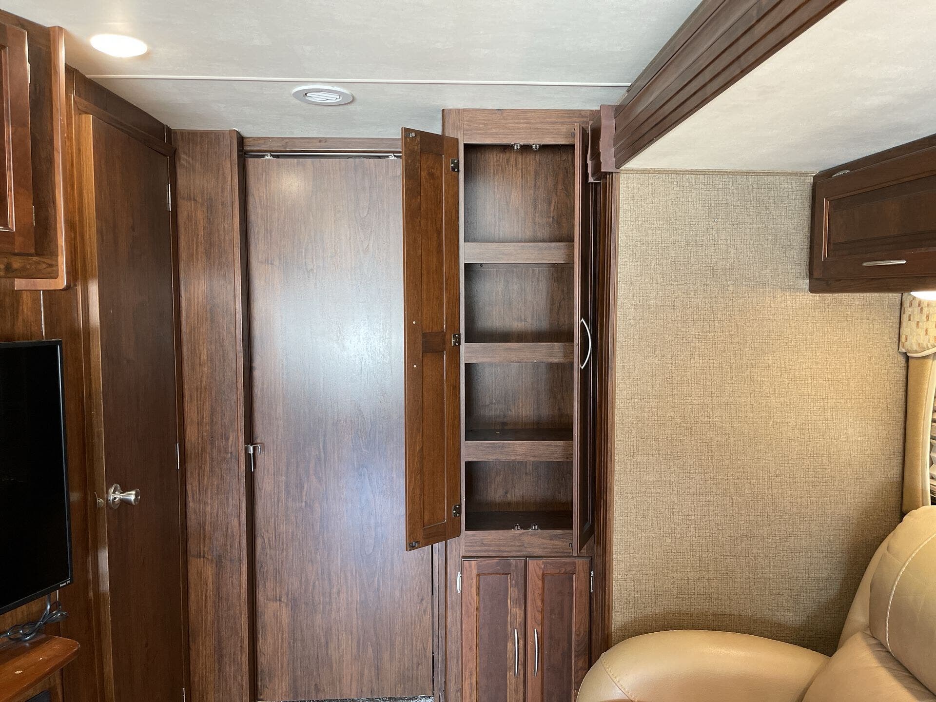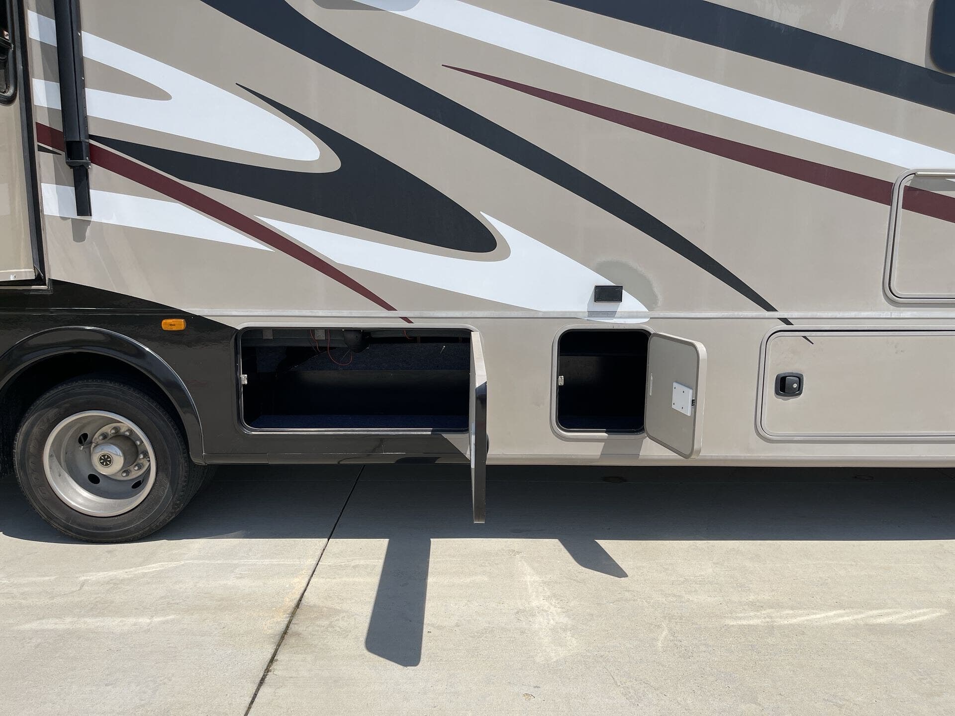 Step outside to enjoy the fresh air under the large awning, with an external shower and backup monitor to assist parking and navigation. Additional features such as a power entrance step, ladder, leveling jacks, and slide-out awnings enhance functionality and ease of setup. The exterior design is finished in a sleek style, complemented by an exterior color that suits any traveler’s taste.