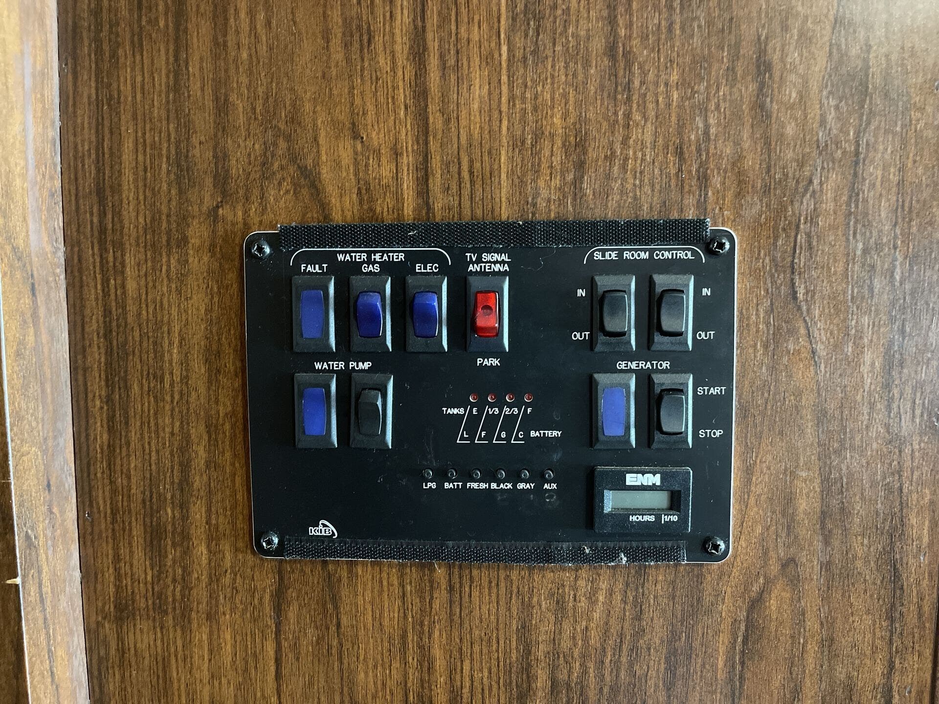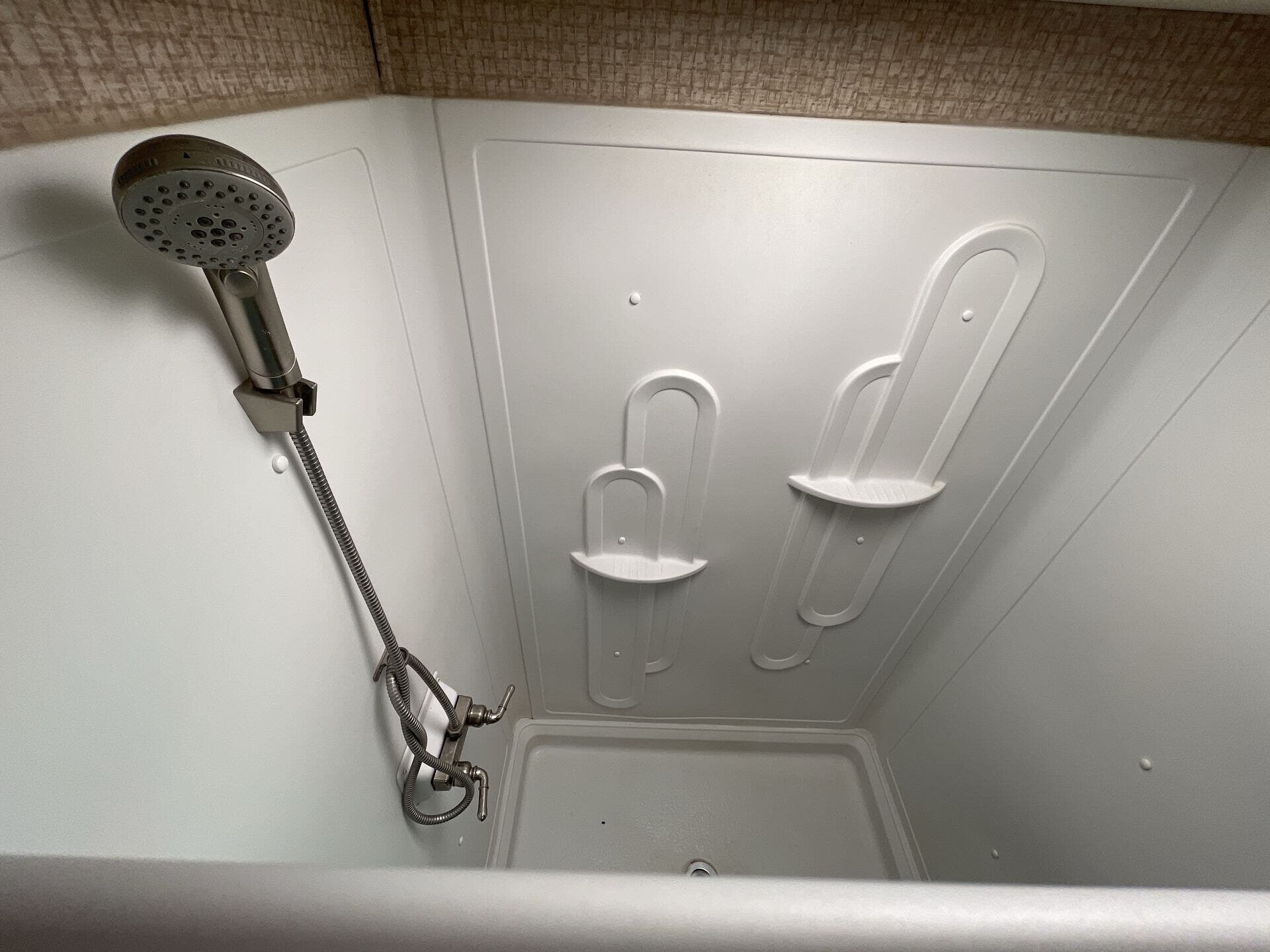 Awning, Backup Monitor, External Shower, Ladder, Leveling Jacks, Power Entrance Step, Skylight, Slideout, Slide-out Awning -