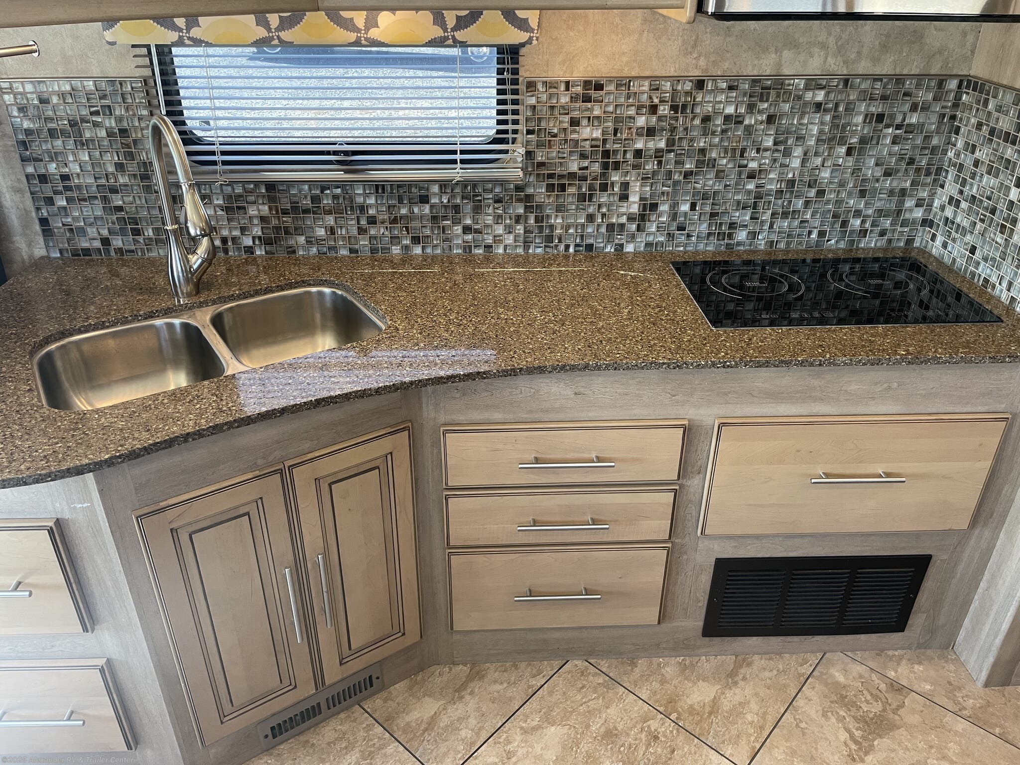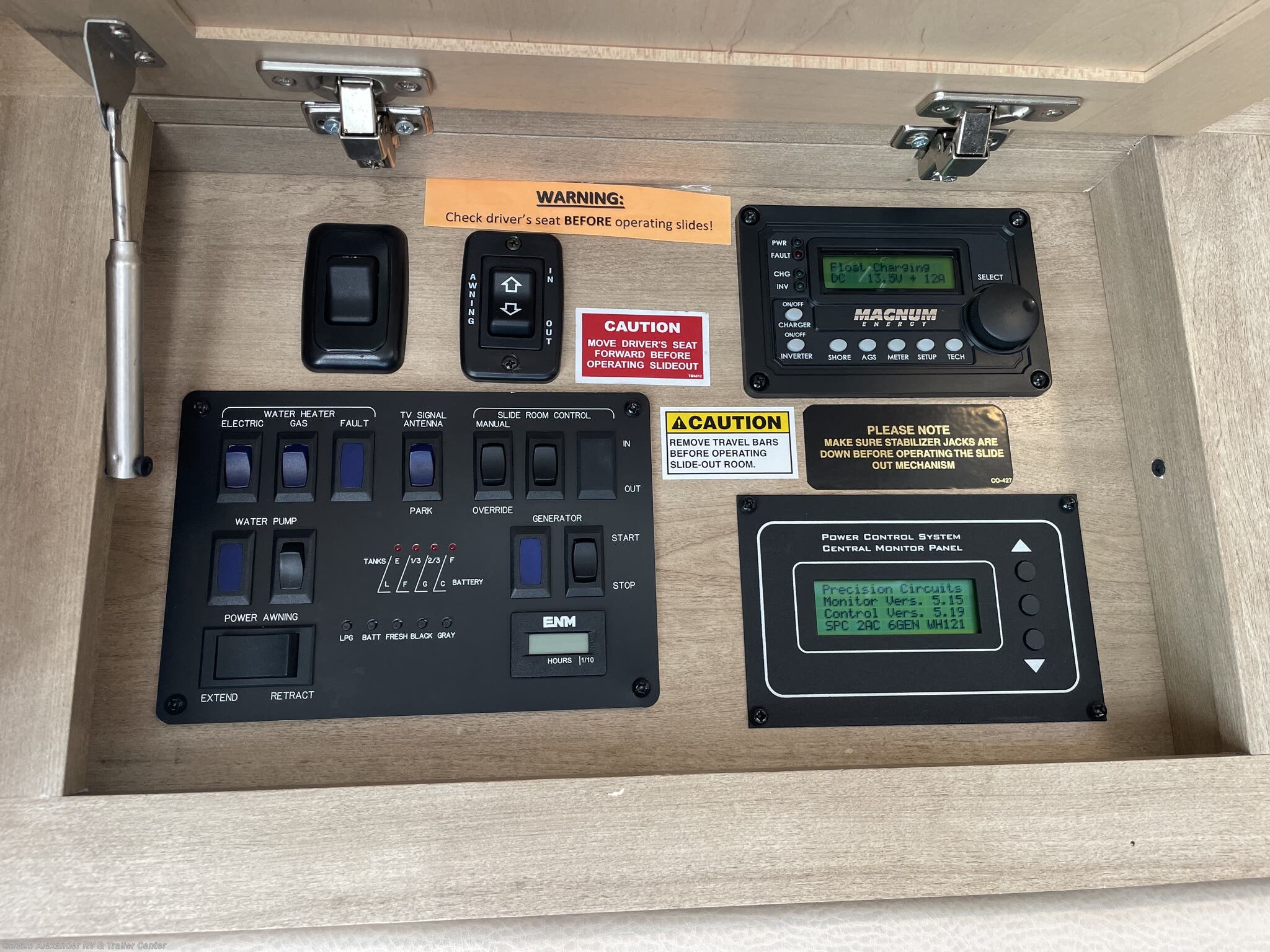 Air Assist Suspension, Automatic Leveling Jacks, Backup Monitor, Fiberglass Sidewalls, Full Body Paint, Hitch, Ladder, Outside Entertainment Center, Power Awning, Power Entrance Step, Power Roof Vent, Roof Vent, Screen Door, Second Roof A/C, Side View Cameras, Skylight, Slam Latch Baggage Doors, Slideout, Slide-out Awning -