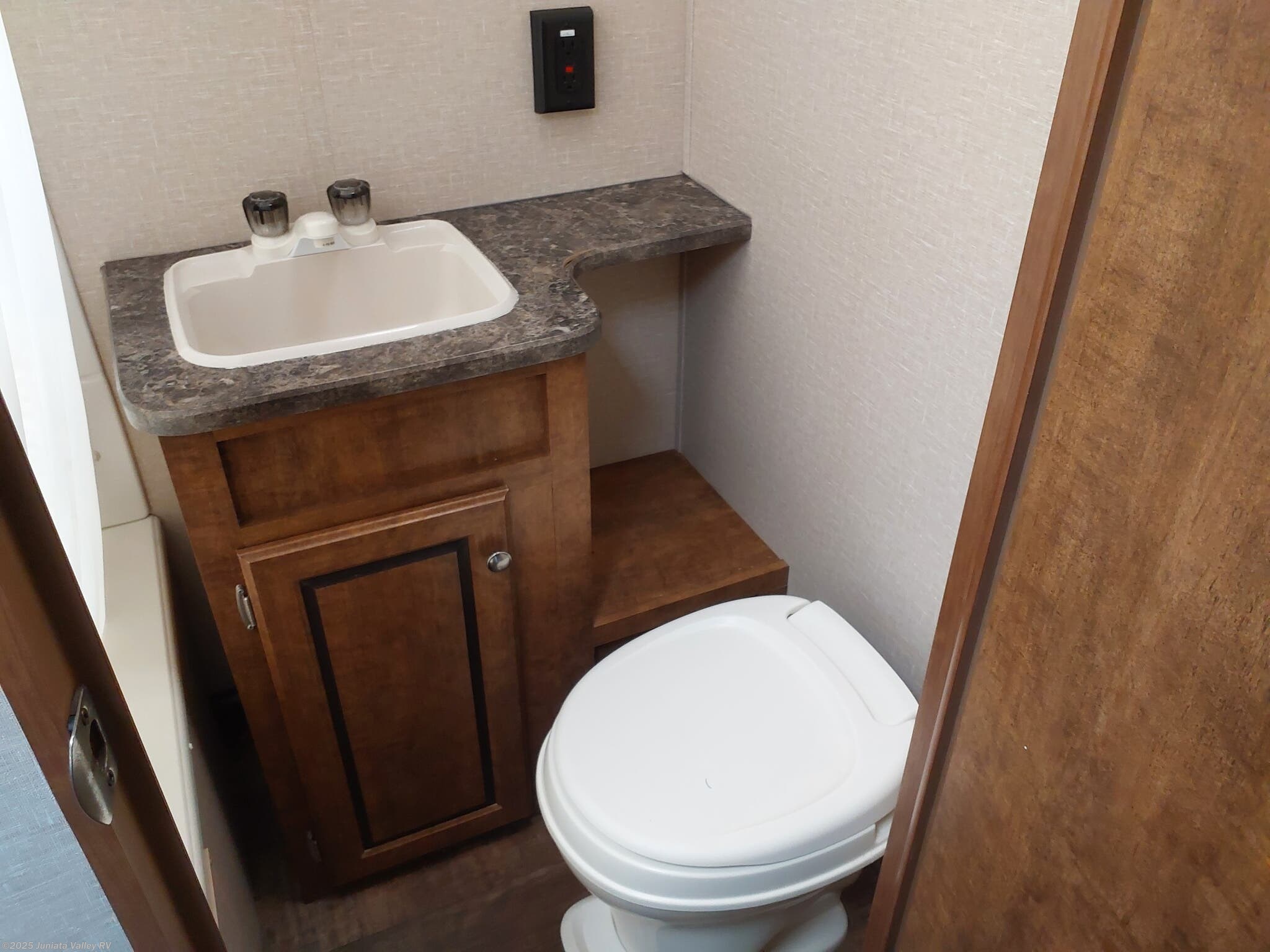 Booth Dinette, Kitchen Sink, Overhead Cabinetry, Queen Bed, Queen Mattress, Shower, Thermofoil Countertops, Toilet, Vanity