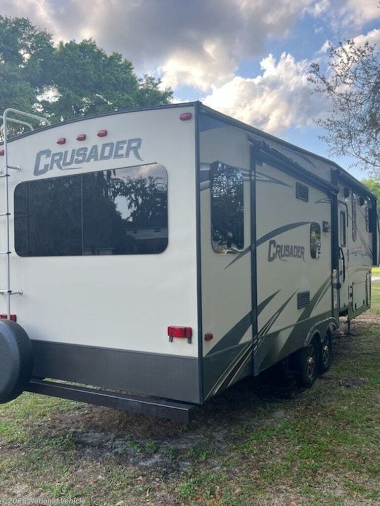The 2016 Cruiser RV Crusader 295RST is a beautifully designed rear living fifth wheel that delivers residential comfort, upscale features, and a spacious layout in an easy-to-tow 31? 11? package. Built for extended stays and weekend escapes alike, this model is an excellent choice for couples or small families looking for a premium camping experience without stepping into a larger coach. Inside, you?re welcomed by a warm and inviting rear living area with opposing slide-outs that create an open, residential feel, featuring plush theater seating, a tri-fold sofa, and a free-standing dinette-all centered around an entertainment center with a fireplace. Large panoramic windows provide plenty of natural light and great campsite views. The kitchen is both stylish and functional, highlighted by a solid-surface island, along with a 3-burner range with oven, microwave, mid-size refrigerator, pantry, and abundant cabinetry for all your cooking and storage needs. Upstairs, the private master suite offers a comfortable queen bed, wardrobe storage, and overhead cabinets, while the spacious bathroom includes a large glass-door shower, vanity, linen storage, and porcelain toilet for a true residential feel. Built with quality in mind, the Crusader features aluminum framing, laminated sidewalls, and a heated, enclosed underbelly for extended-season camping, along with generous holding tanks for longer stays. Outside, you?ll find pass-through storage, a power awning, and durable construction designed for life on the road. Whether you?re planning a weekend getaway or an extended stay, the 2016 Crusader 295RST offers the perfect balance of comfort, style, and functionality.