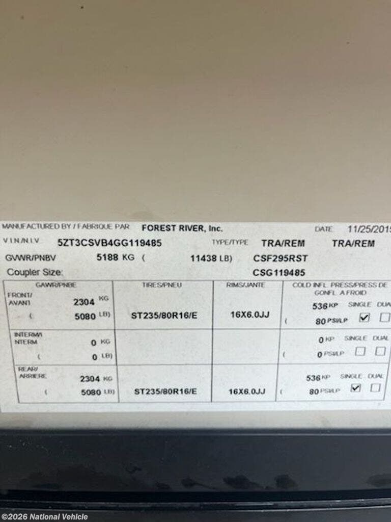 Request More Info on this 2016 Cruiser RV 5th Wheel 295RST Offered for sale by National Vehicle