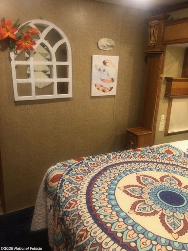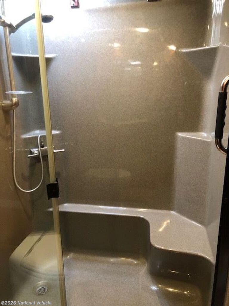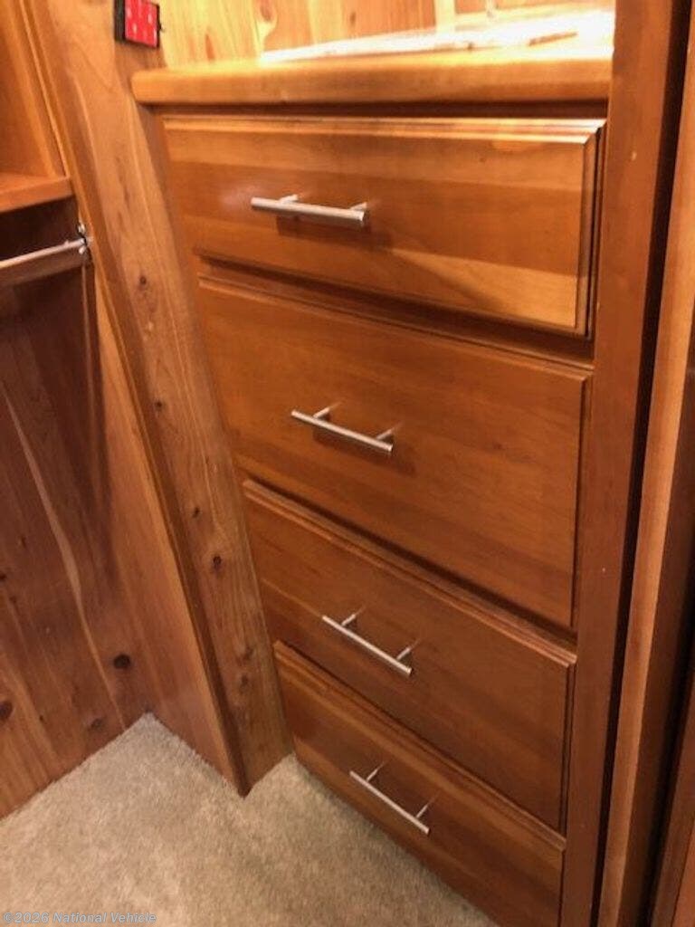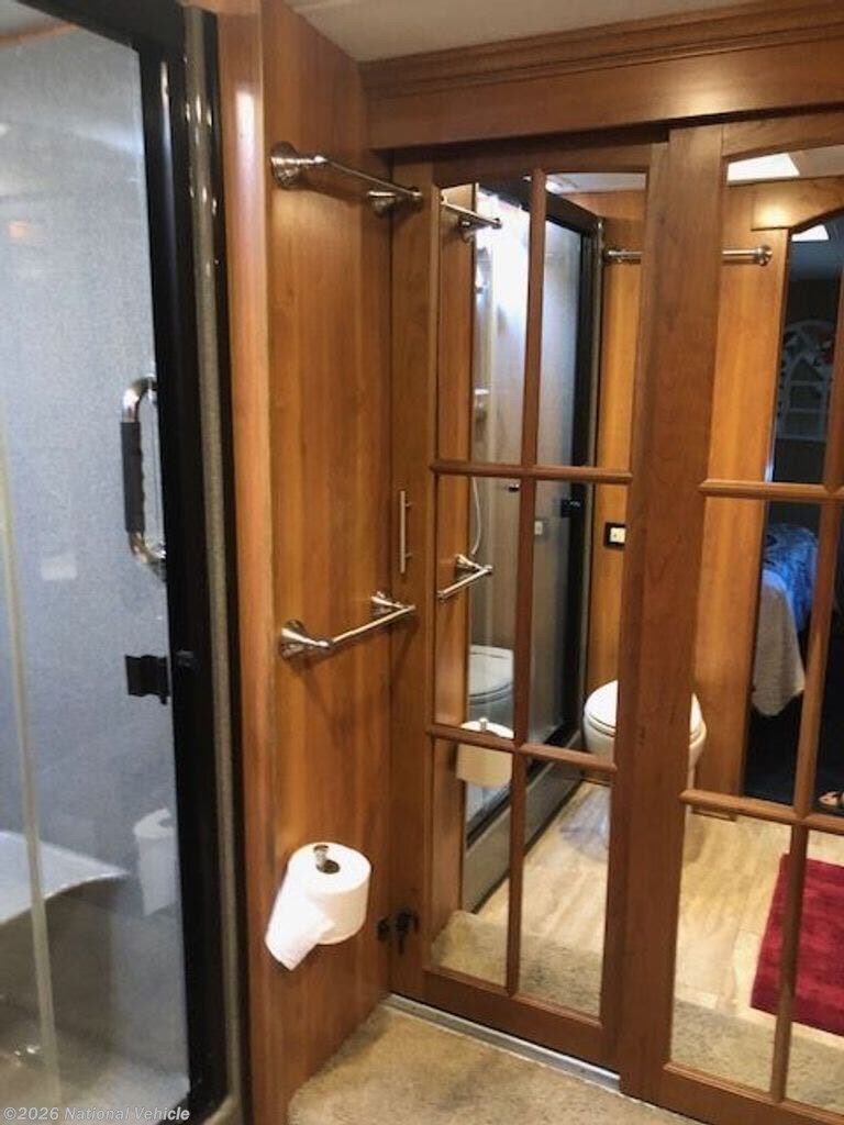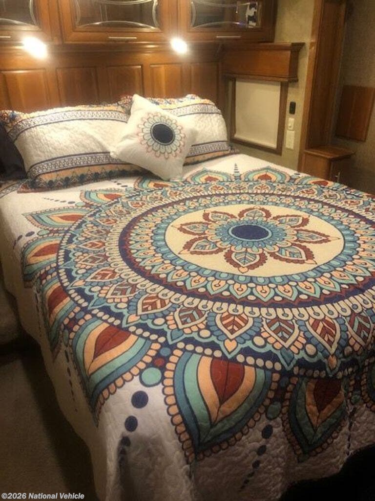 Designed with comfort in mind, the master suite offers a queen-size bed, abundant storage, and a spacious wardrobe, while the unique bath-and-a-half layout provides added convenience for guests. The full bathroom features a large residential-style shower and high-end finishes, giving you all the comforts of home on the road.