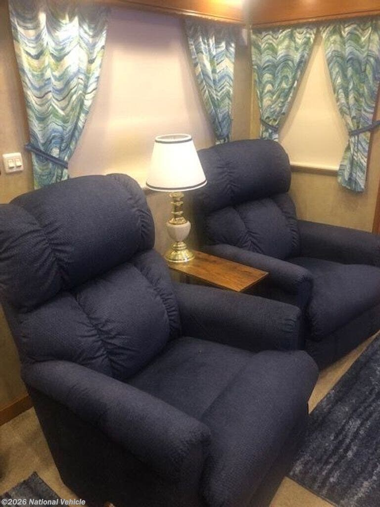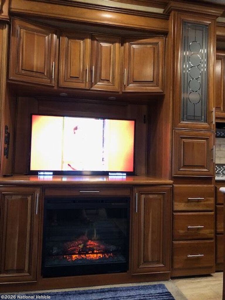 From the moment you enter, you?ll notice the expansive layout created by three slide-outs and a wide-body design, offering over 400 square feet of living space. The rear living area is thoughtfully arranged with plush residential seating, dual recliners, and a sofa positioned perfectly across from the entertainment center and fireplace-creating a warm, inviting space to relax or entertain.