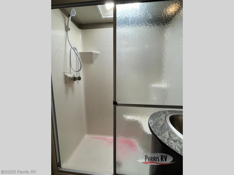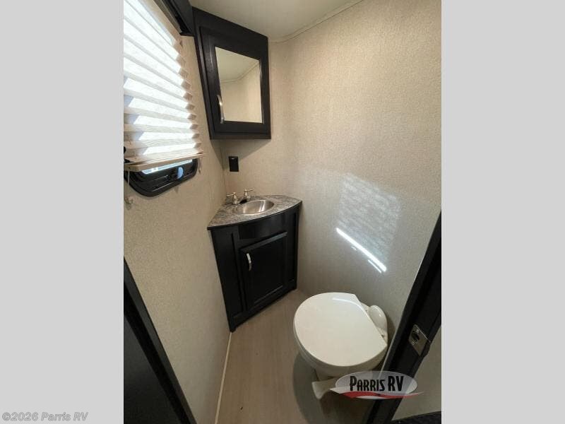 The rear 8' spring assist ramp door makes loading and unloading a snap and there is plenty of room for all of your toys. The cargo area features tie downs to secure things as you travel and once you've arrive provide added space to enjoy. Make this space your own by choosing an optional HappiJack power bunks, sofas with table, and/or an optional lounge chair. There is 40" X 86" twin loft, plus a half bath off the cargo area for added convenience which includes a toilet and sink with overhead cabinet.