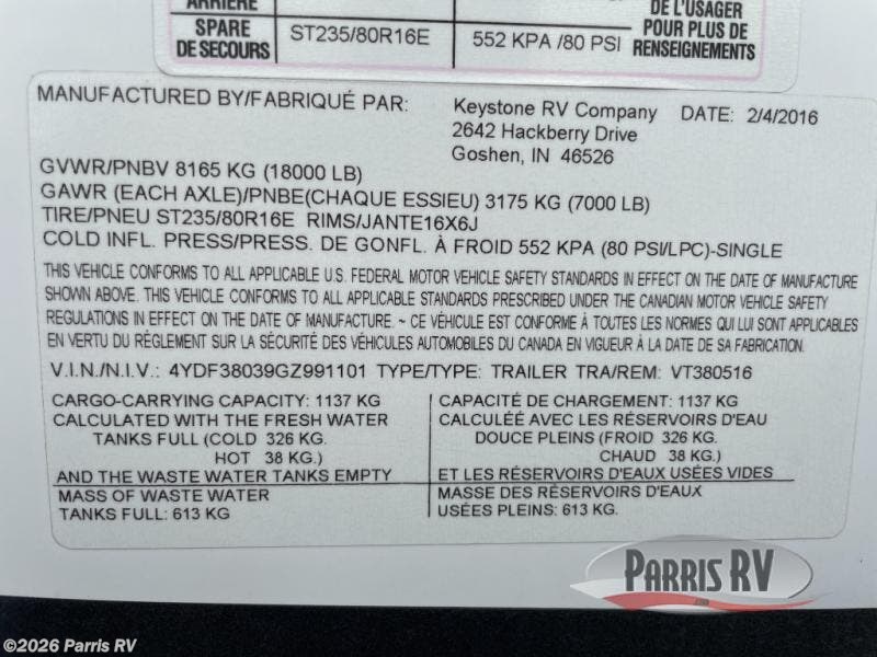 Request More Info on this 2016 Dutchmen Voltage V-Series V3805 Offered for sale by Parris RV