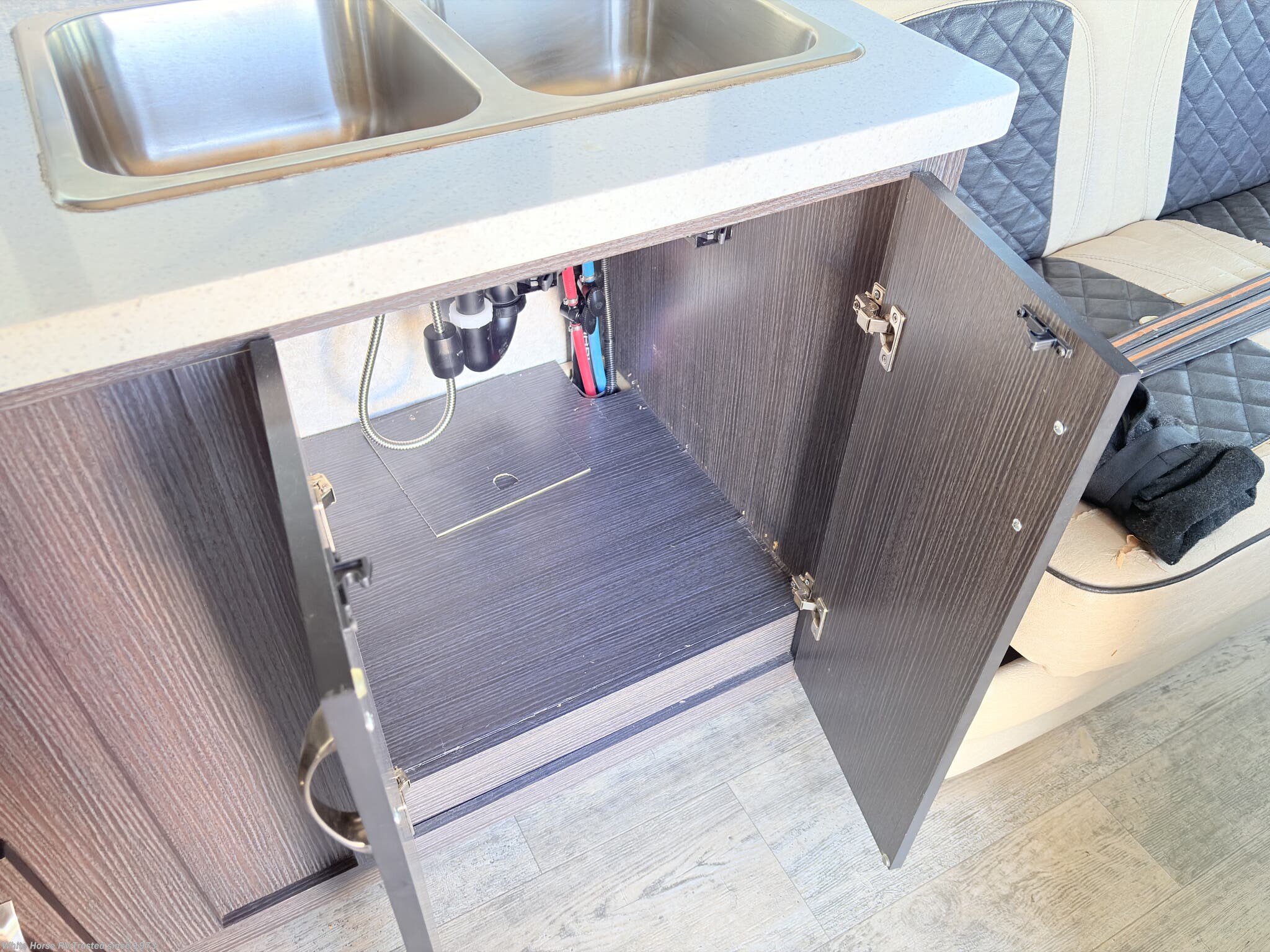 - Fresh water: 25 gallons; Grey water: 38 gallons; Black water: 35 gallons