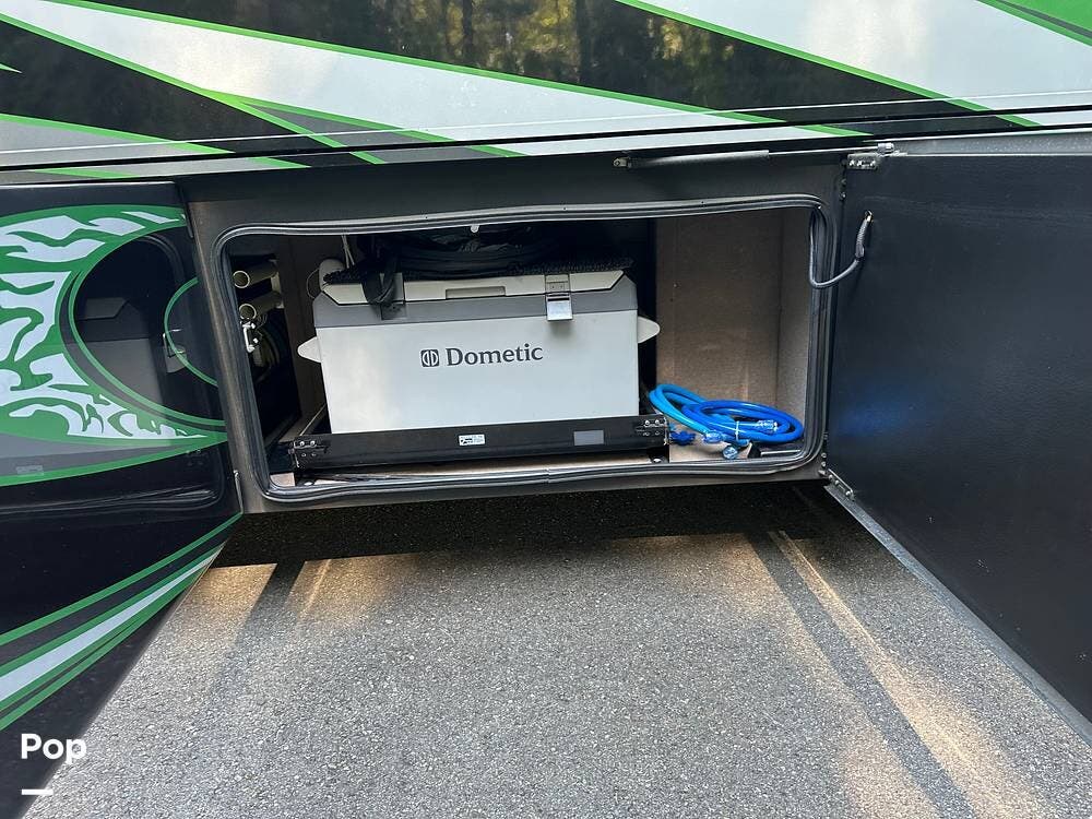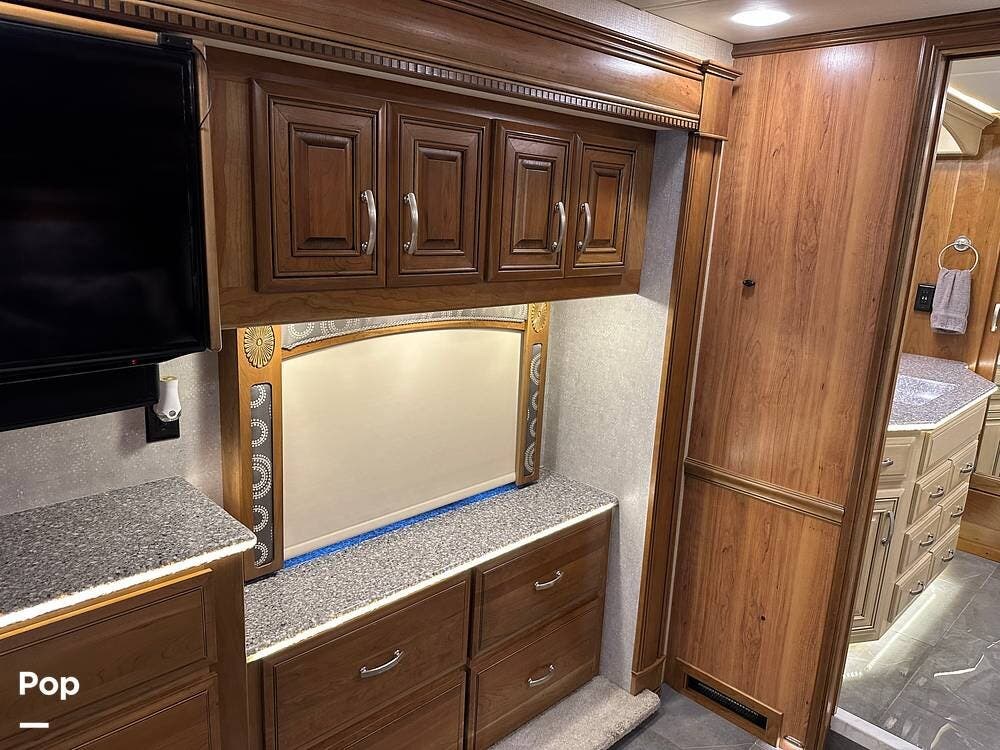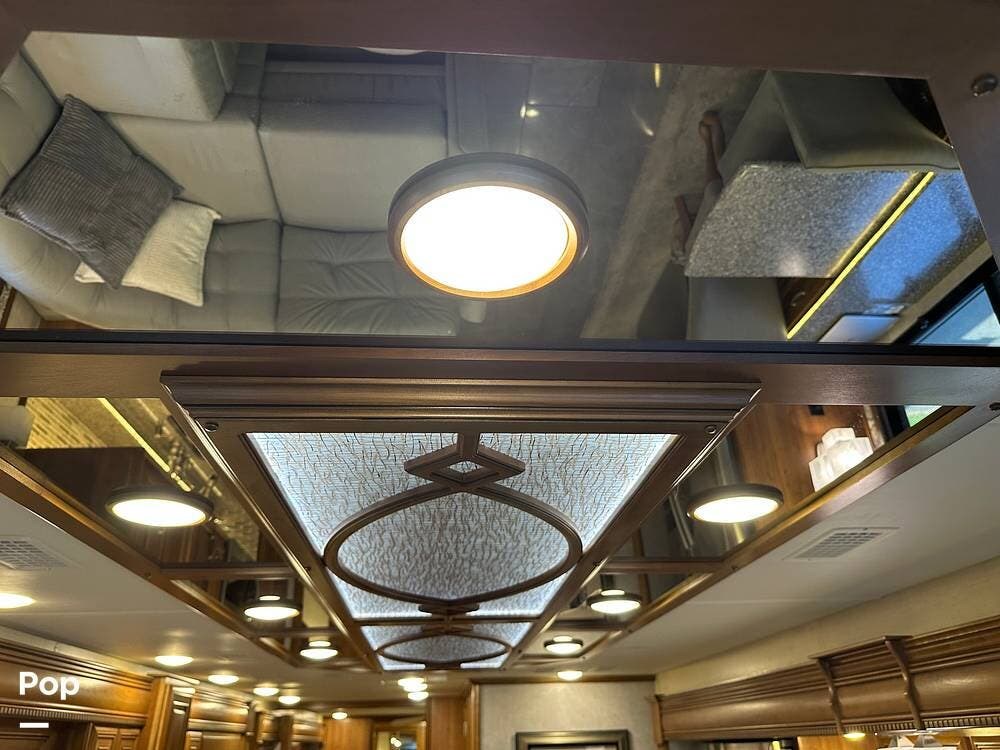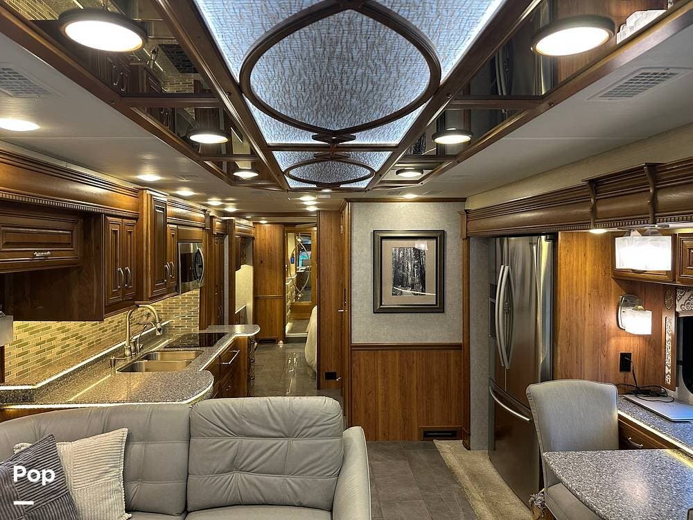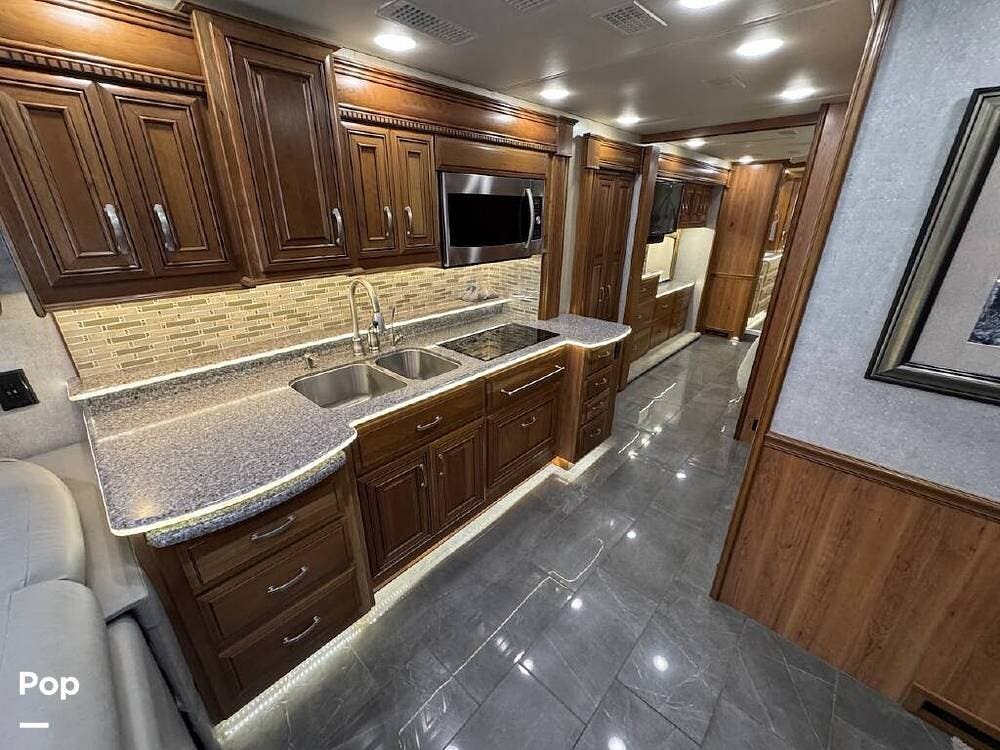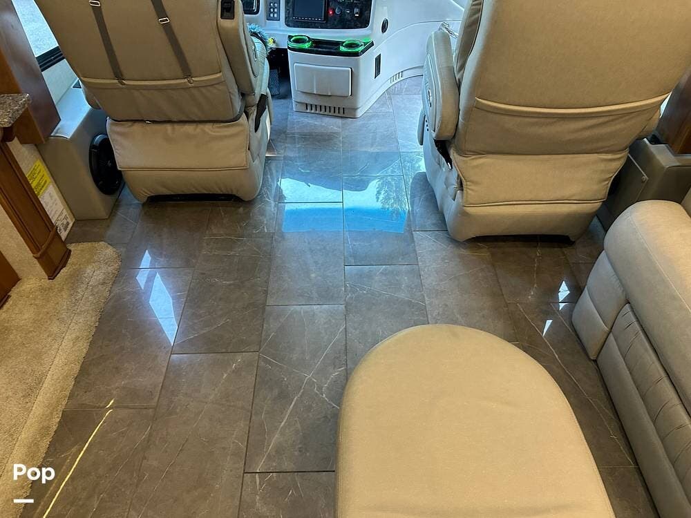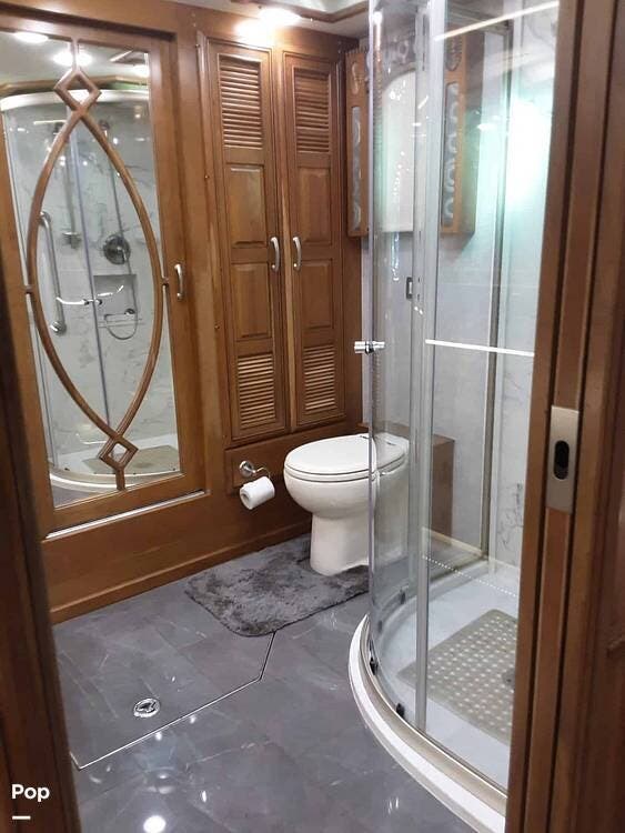 A luxurious living area with high-end furnishings and contemporary conveniences can be found within. The coach's open floor plan makes it simple to move around, and the wide windows let in an abundance of natural light. The kitchen features a dining area for eating meals on the go, ample storage space, and top-of-the-line appliances.